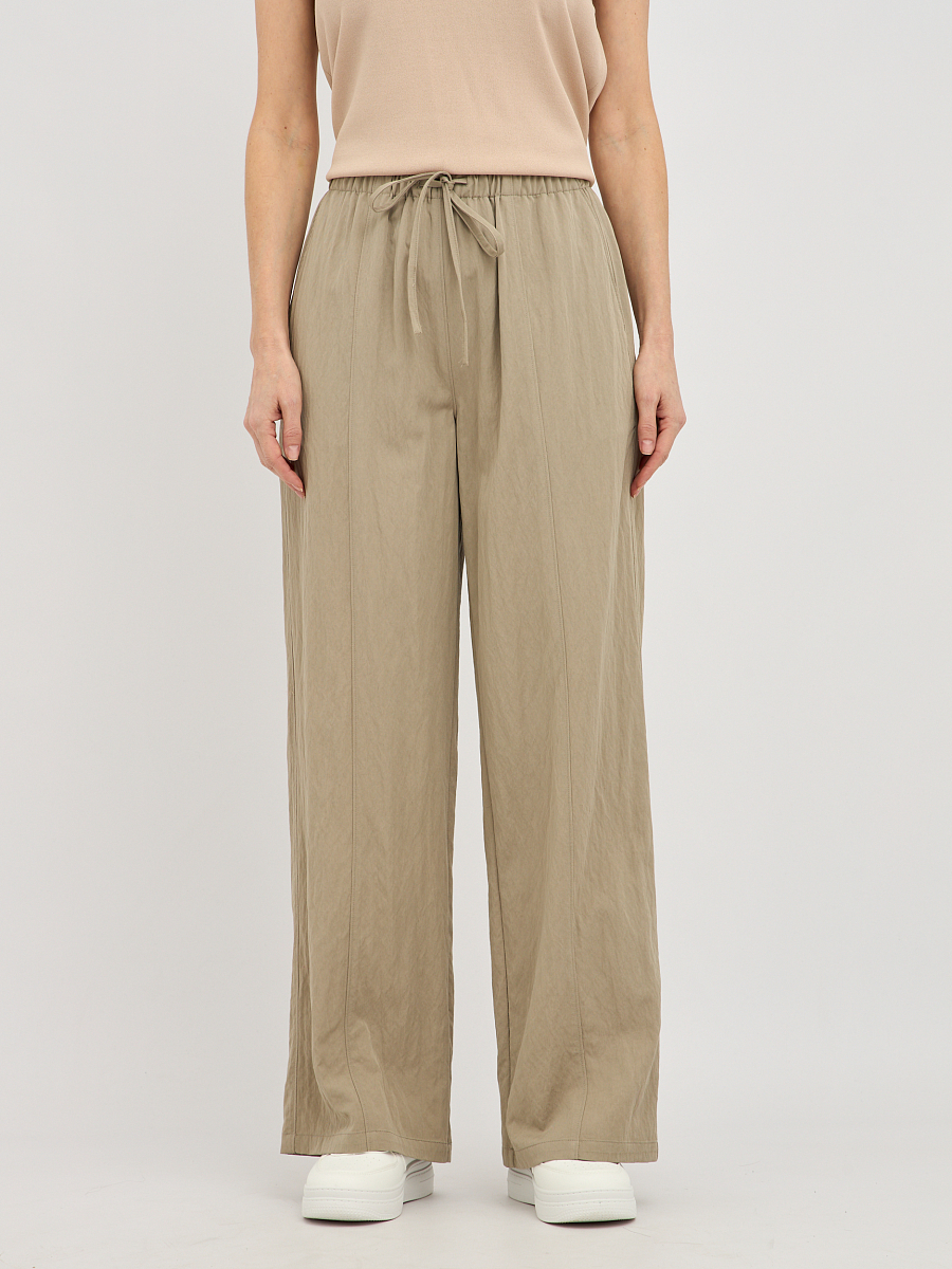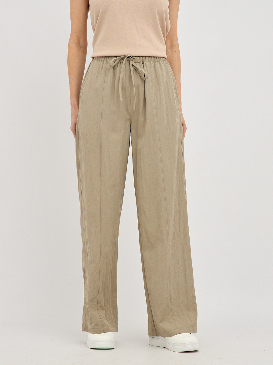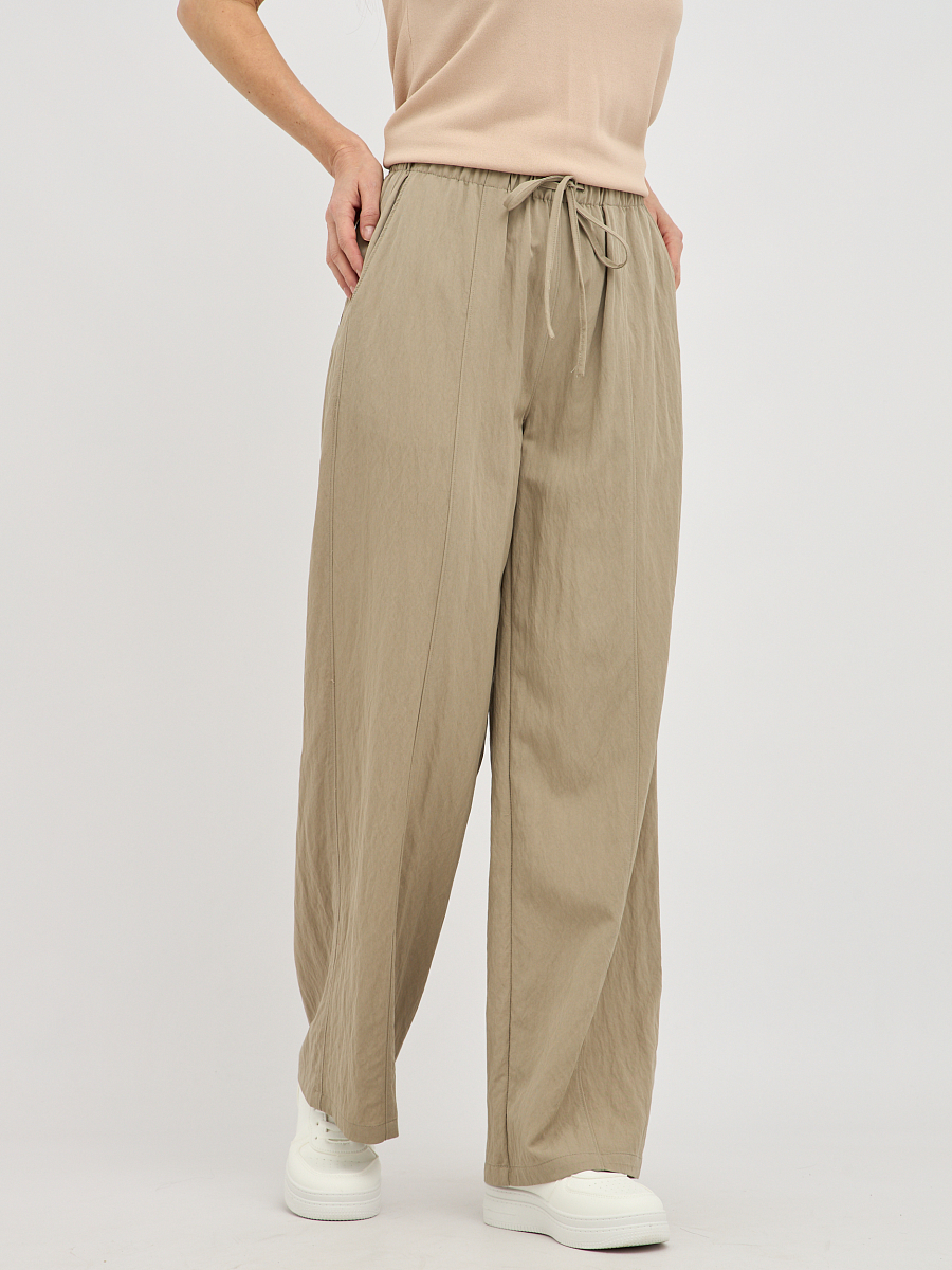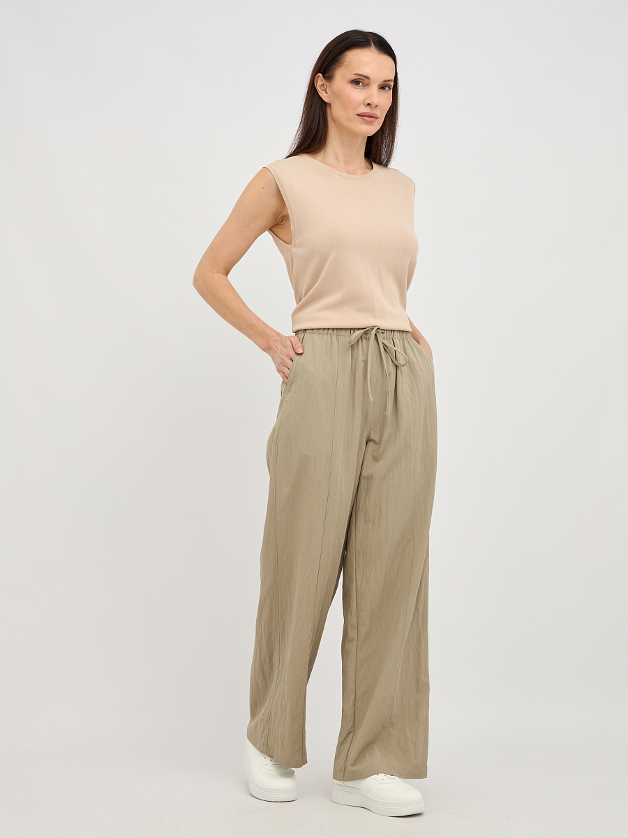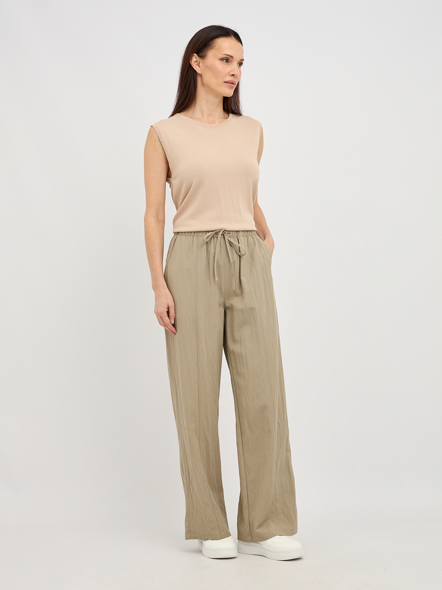 брюки женские свободного силуэта с поясом на резинке с кулиской