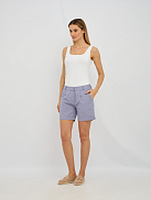 Хлопок обеспечивает отличную воздухопроницаемость и мягкость, а лен добавляет легкость и натуральность. Защипы придают шортам интересный и изысканный вид, подчеркивая линию талии и создавая эффектный силуэт.