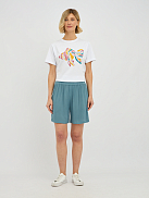 футболка женская в белом цвете с принтом рыбки и добавлением страз
