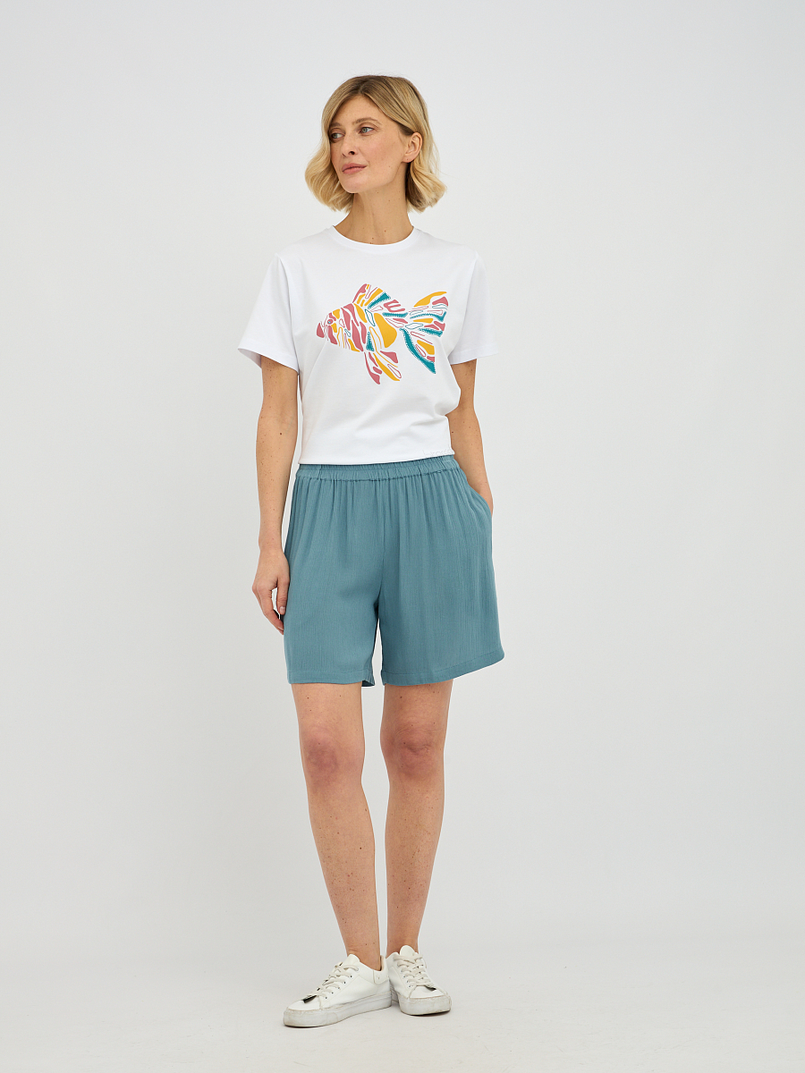футболка женская в белом цвете с принтом рыбки и добавлением страз