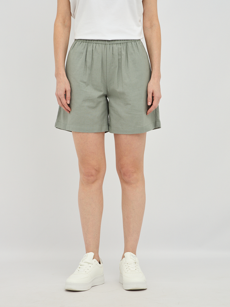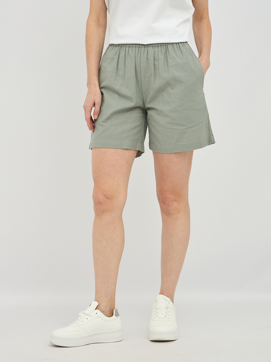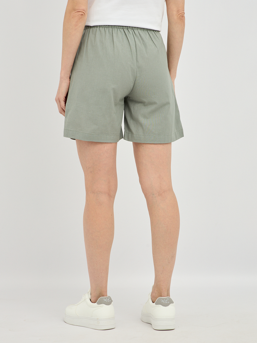 шорты женские из хлопка с добавлением льна с поясом на резинке