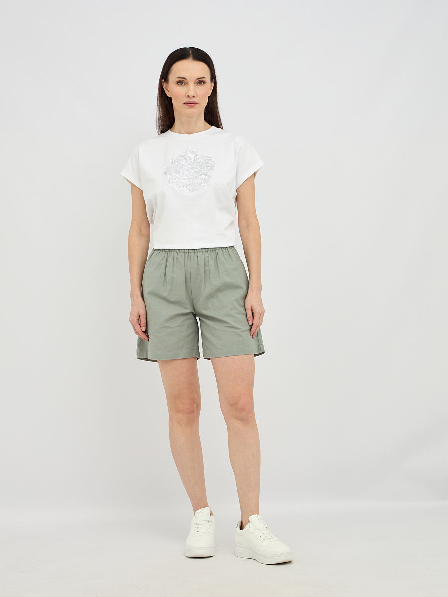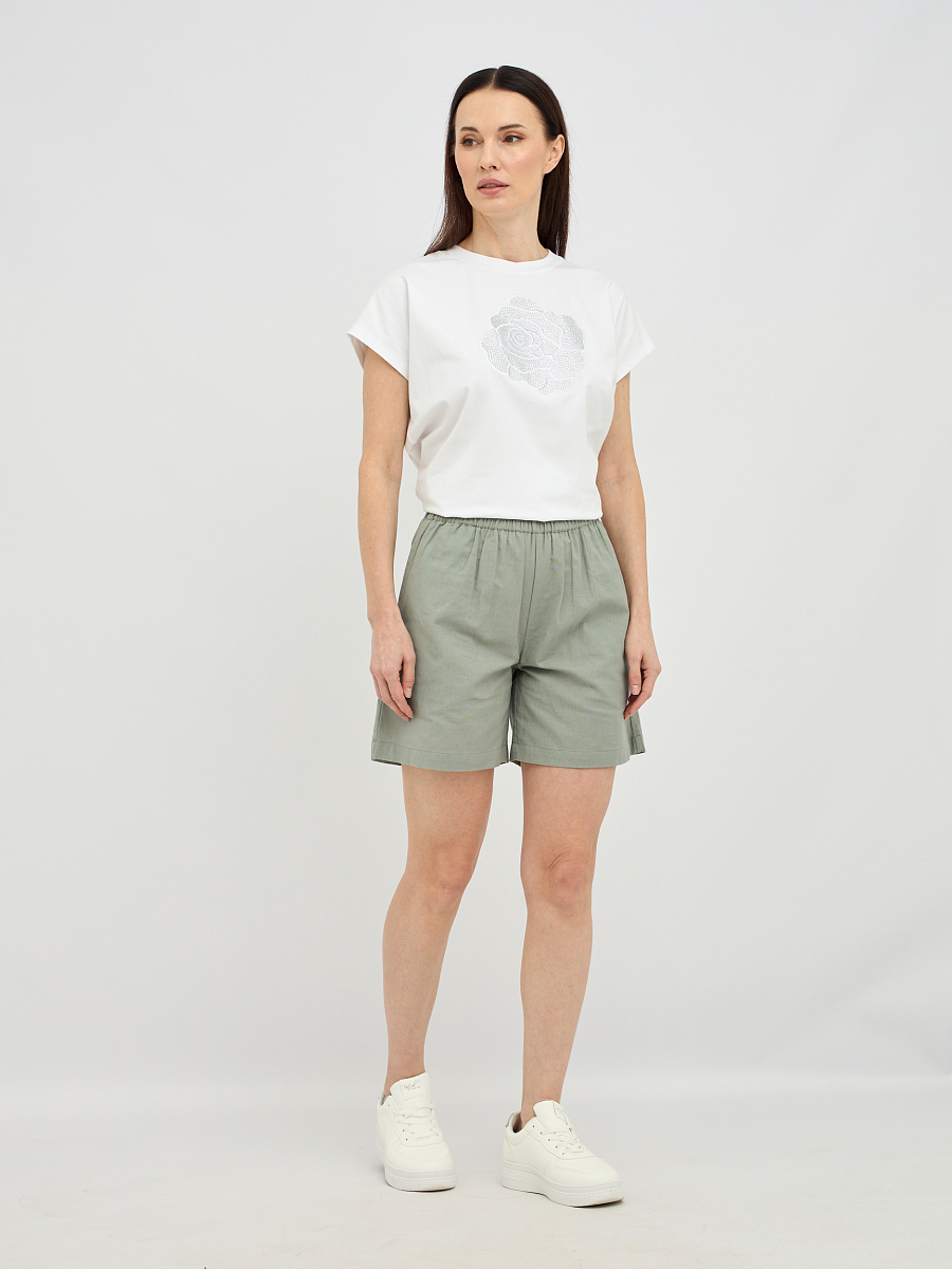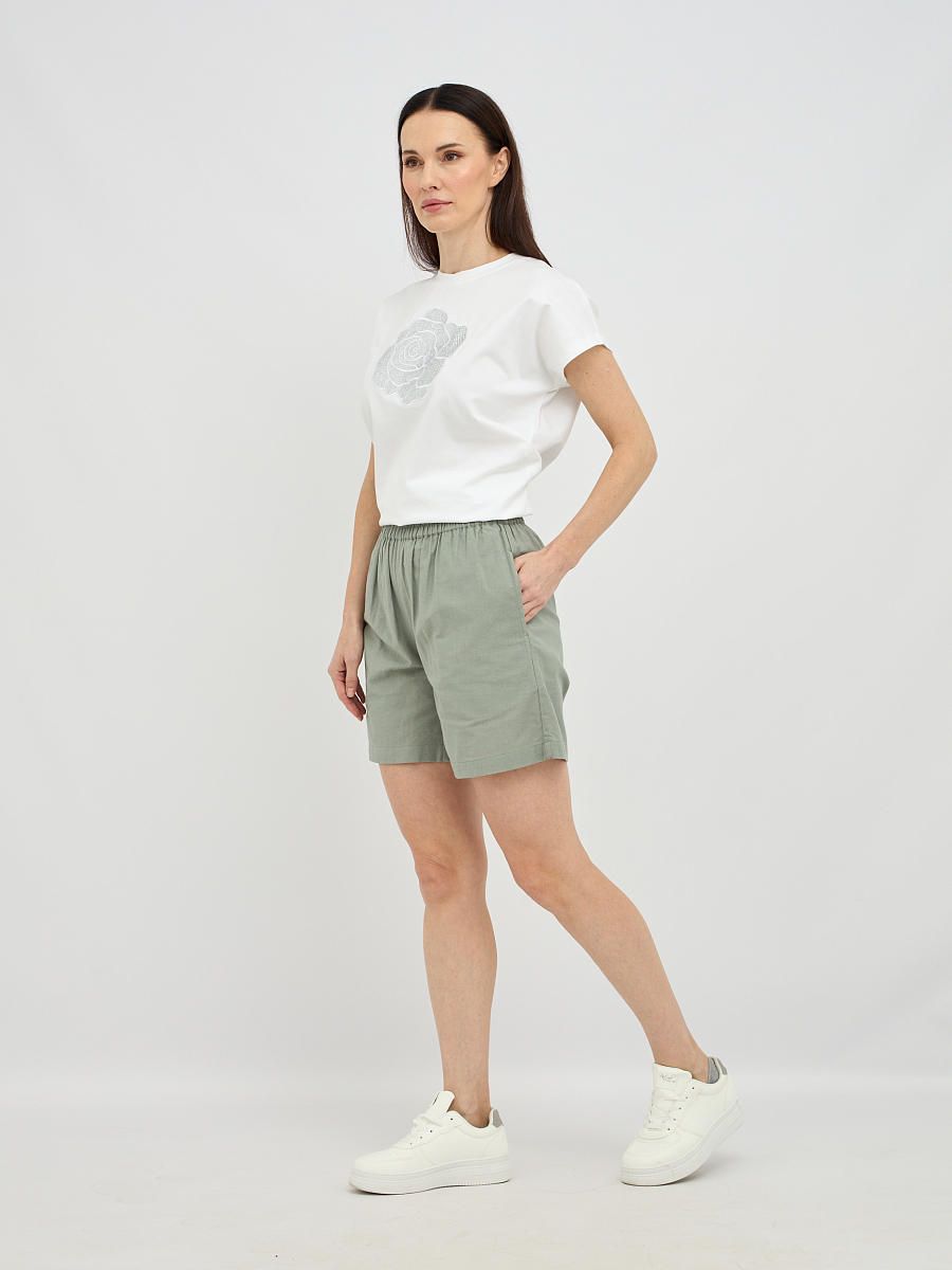 шорты женские из хлопка с добавлением льна с поясом на резинке