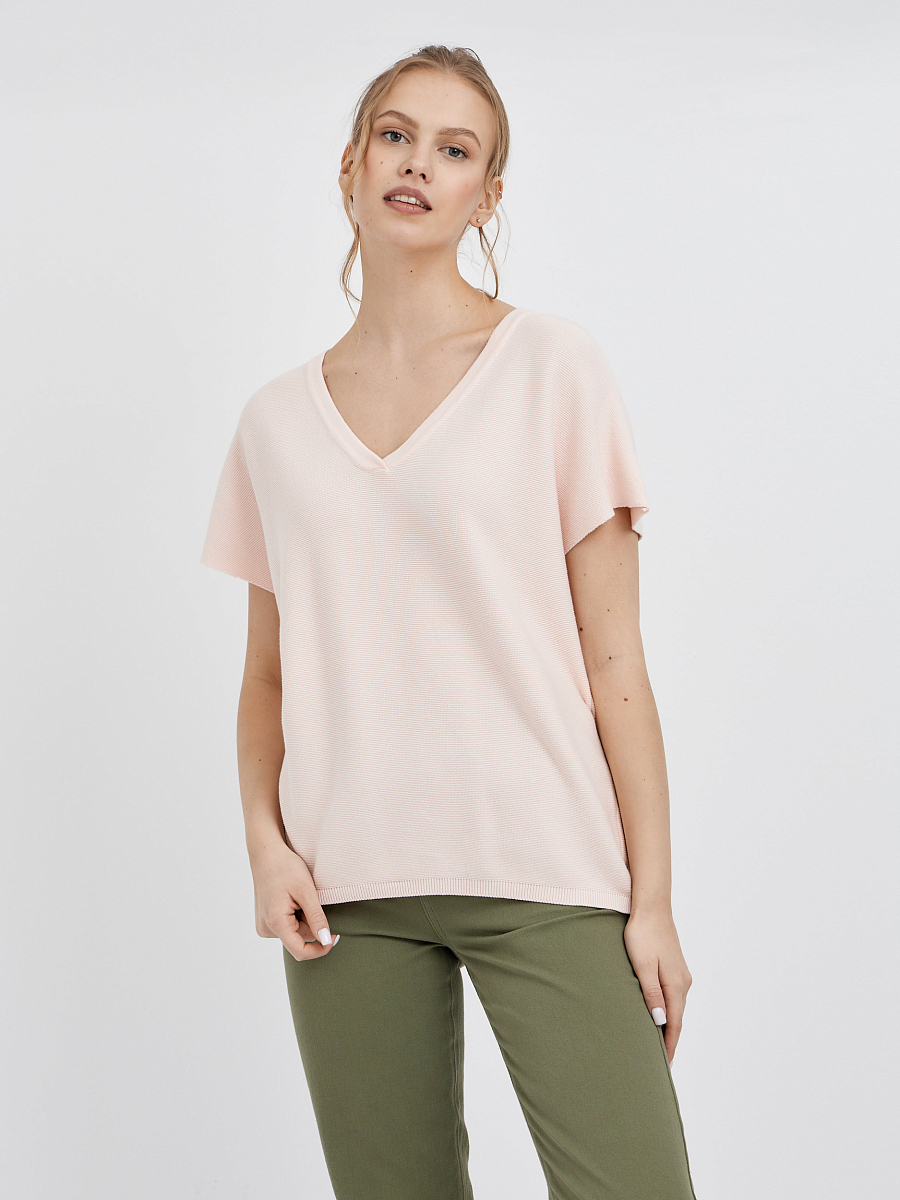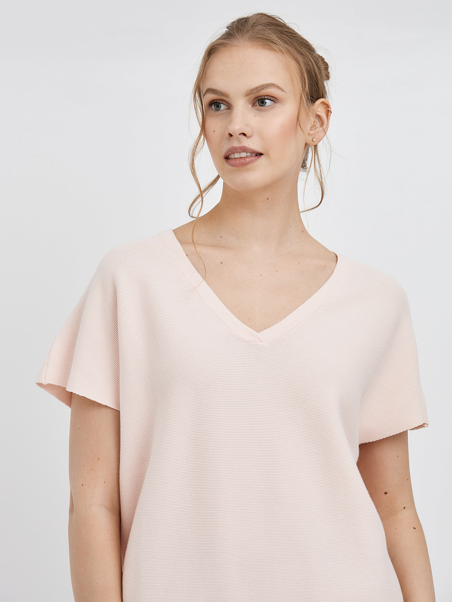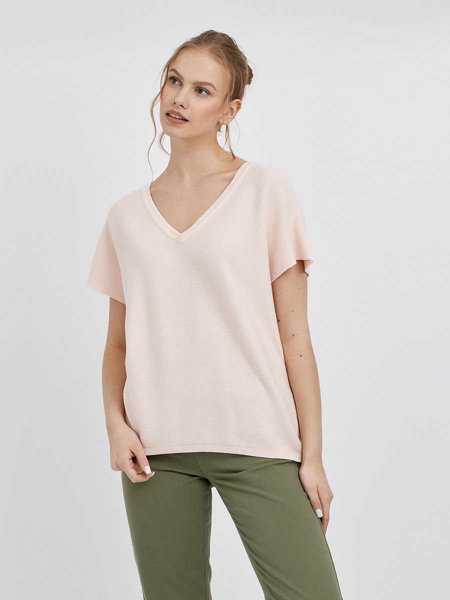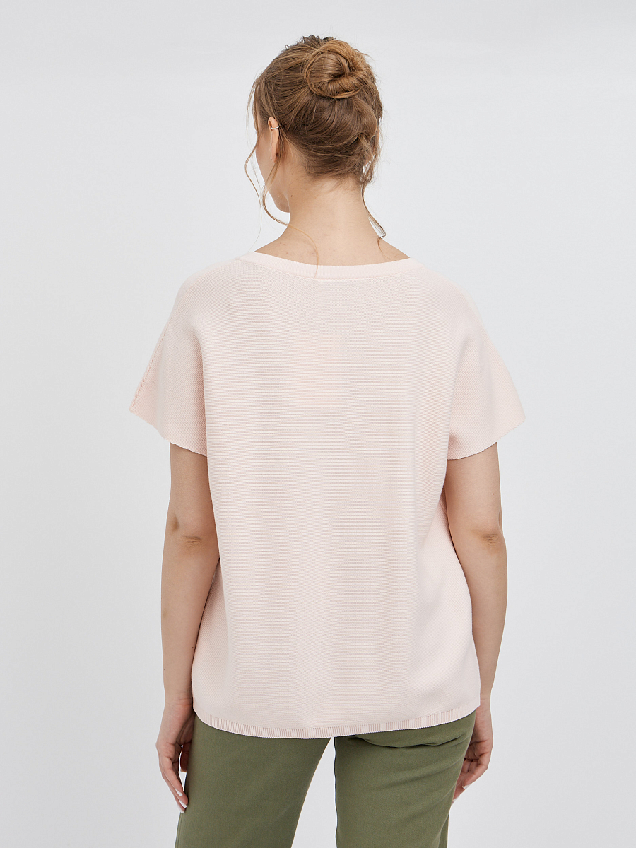 Дышащий джемпер свободного кроя из натурального хлопка с коротким рукавом - отличный вариант для прохладного летнего дня. Благодаря крою, джемпер отлично садится на любую фигуру и послужит идеальным дополнением для стильного образа в прохладную погоду. Джемпер хорошо сочетается со многими предметами гардероба. Джинсы, брюки, юбки различной длины, пальто свободного кроя и дутые куртки отлично подойдут в качестве дополнения.