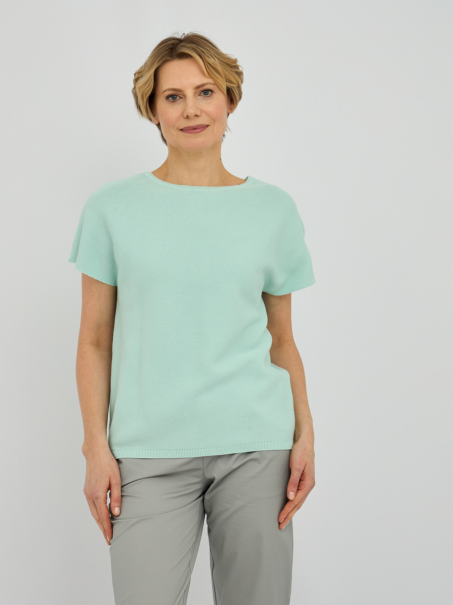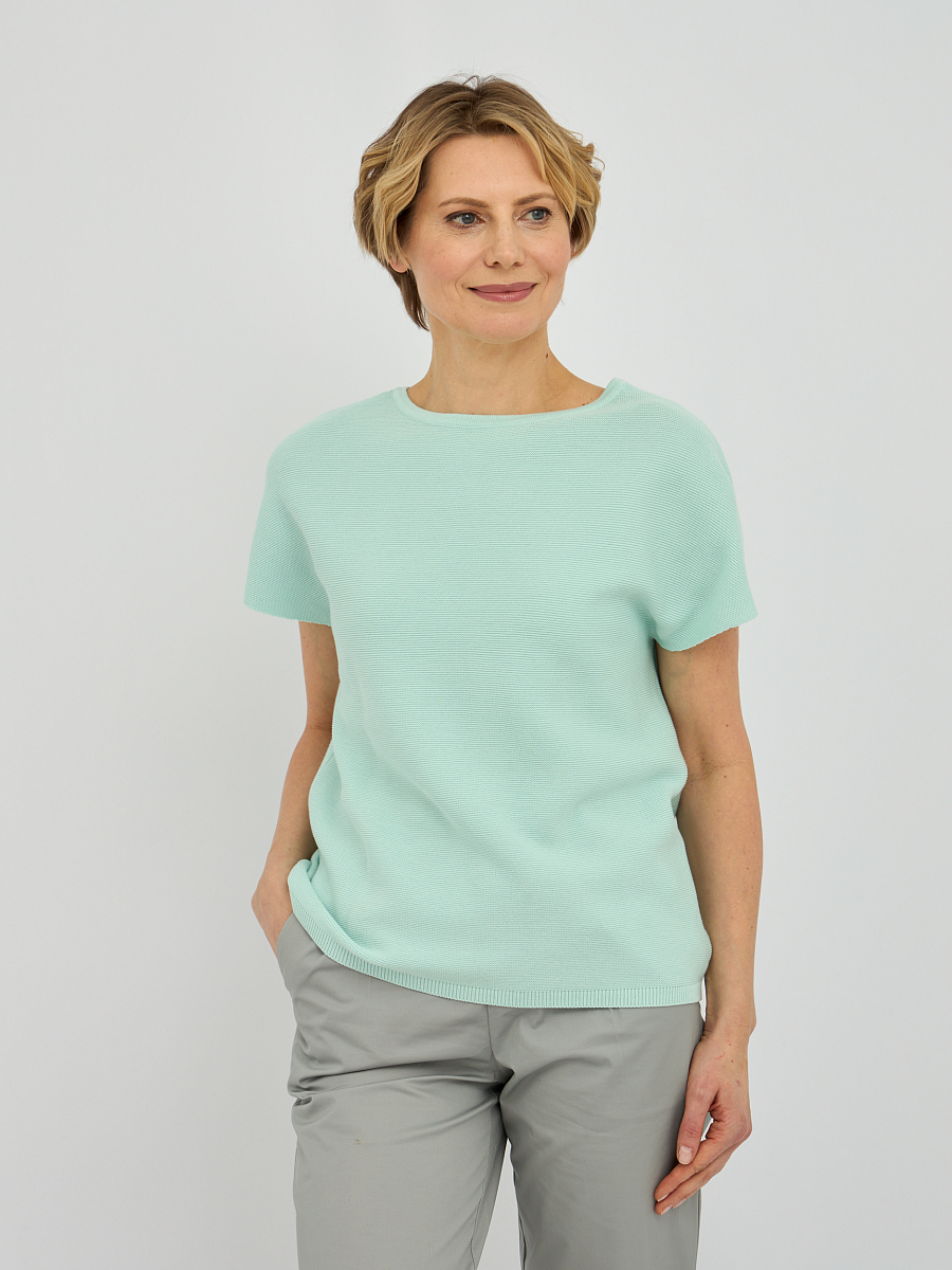 Этот стильный женский джемпер из натурального хлопка станет идеальным дополнением вашего гардероба. Джемпер прямого кроя отличается свободным силуэтом, что обеспечивает комфорт и свободу движений в течение всего дня. Укороченные рукава придают модели современный и легкий вид, делая ее подходящей как для повседневной носки, так и для более нарядных образов.