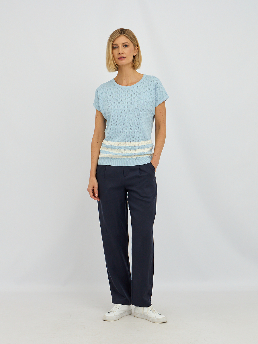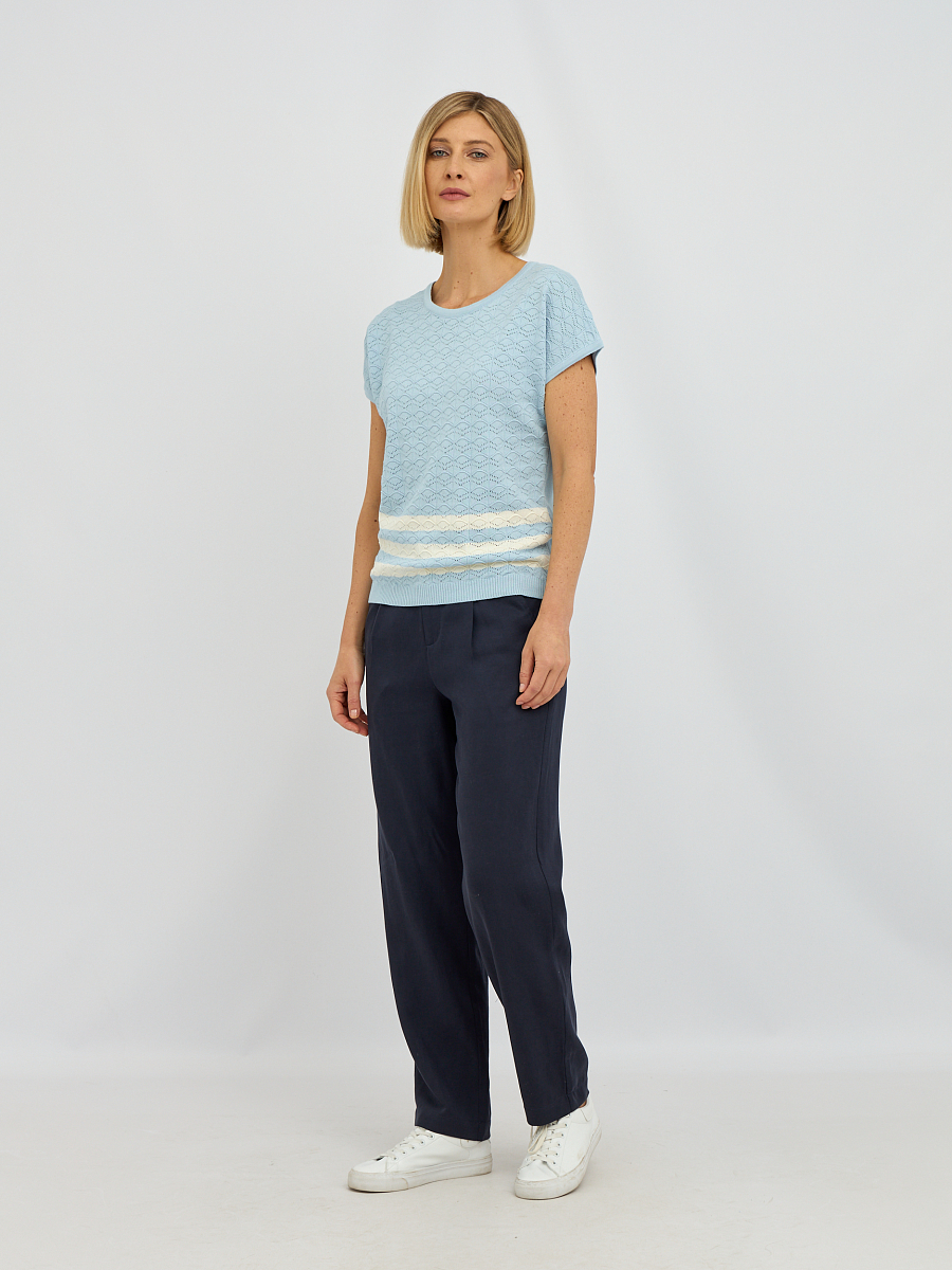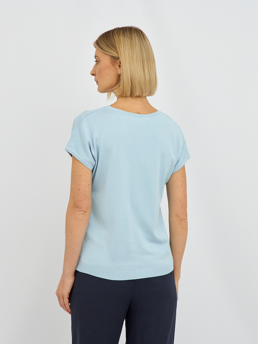 Этот джемпер выполнен из высококачественной смеси вискозы и эластана, что обеспечивает не только комфорт, но и отличную посадку по фигуре. Вискоза обладает натуральными свойствами, которые помогают поддерживать оптимальную температуру тела. Эластан же гарантирует долговечность и сохранение формы изделия даже после многократных стирок.
