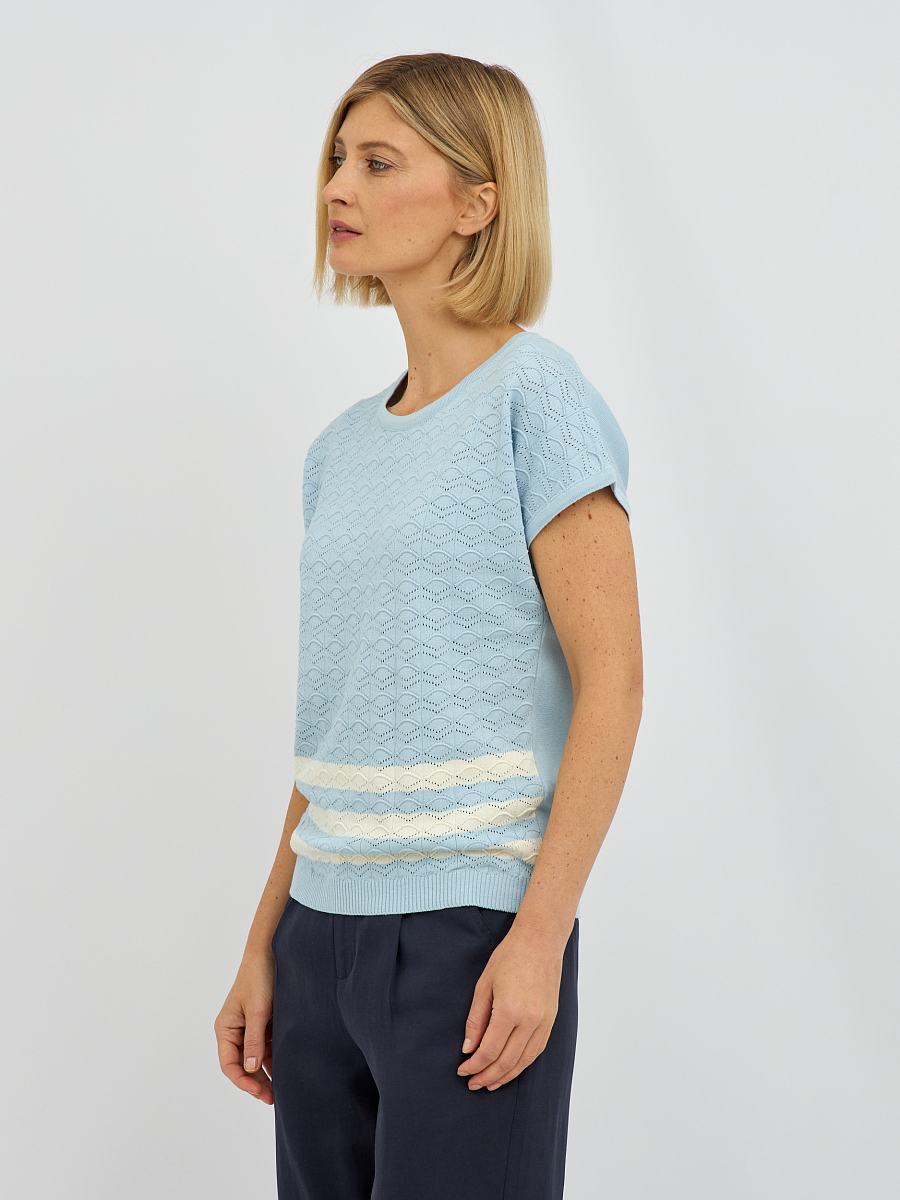 Перфорация и полоски придают модели оригинальный и современный вид, делая ее универсальной для различных случаев — от повседневных прогулок до более нарядных мероприятий.