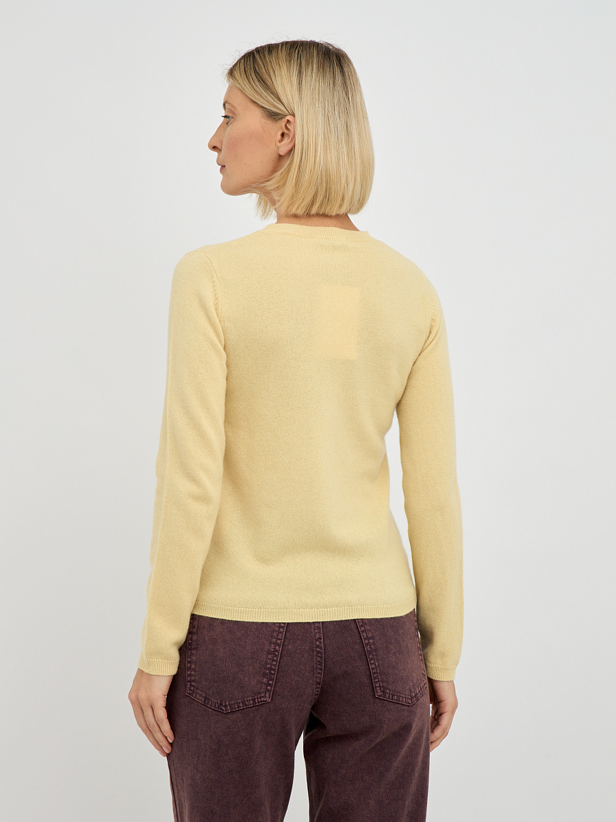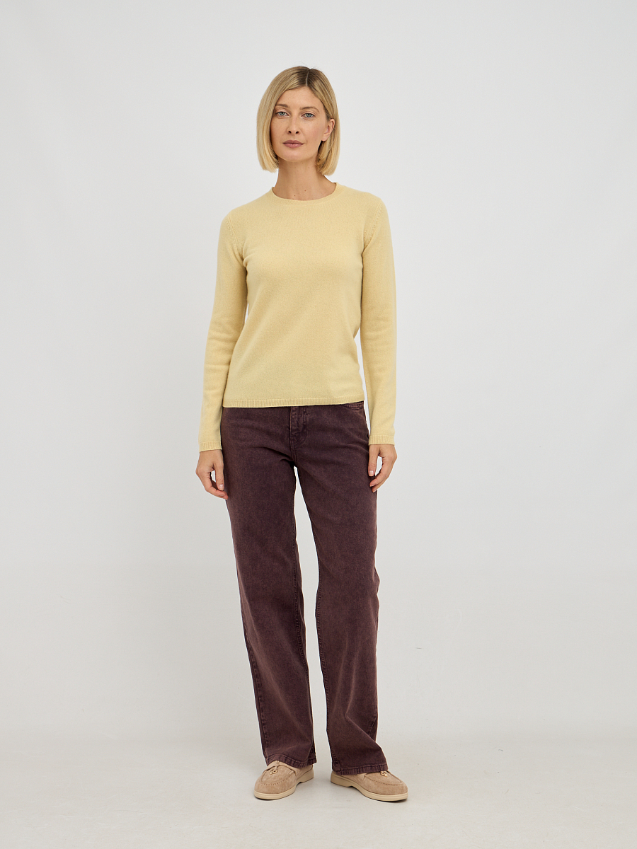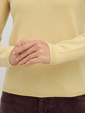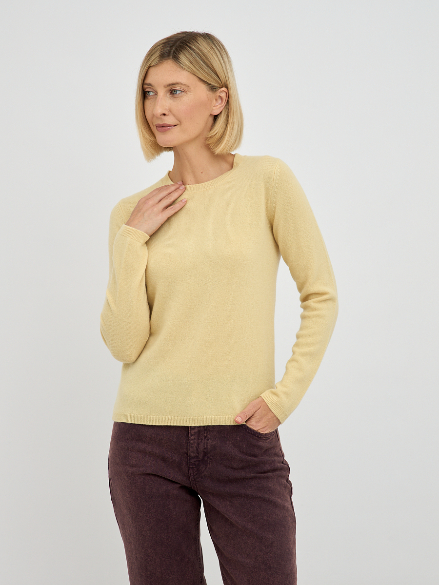 Полуприталенный силуэт джемпера подчеркивает женственность и элегантность, создавая гармоничный образ.