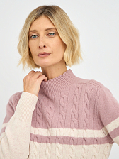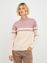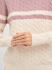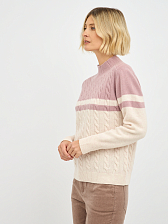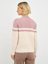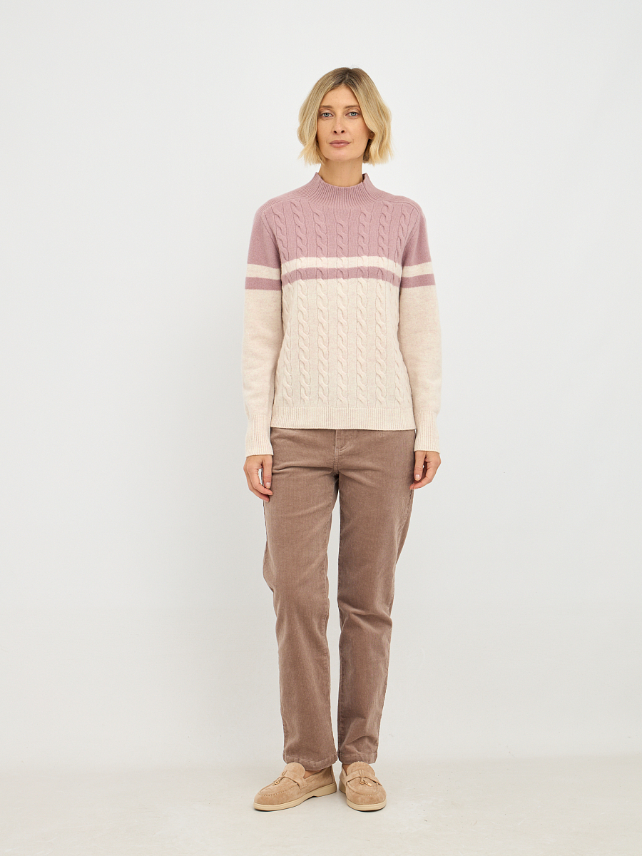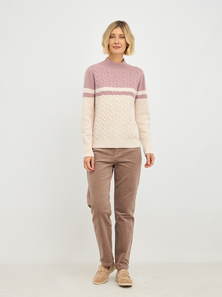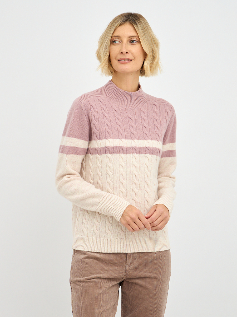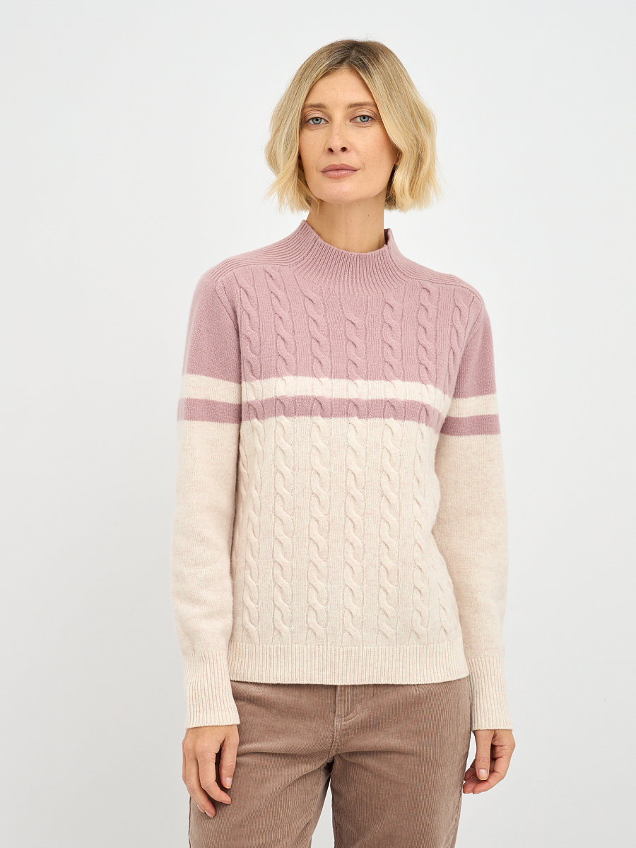 Эта женская водолазка выполнена из высококачественной шерсти, что обеспечивает не только комфорт, но и долговечность. Двухцветный дизайн с косами придает изделию элегантность и стиль, делая его универсальным для различных случаев.