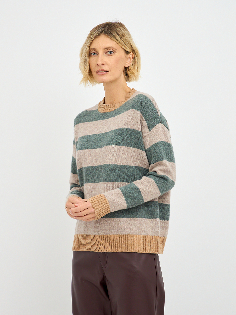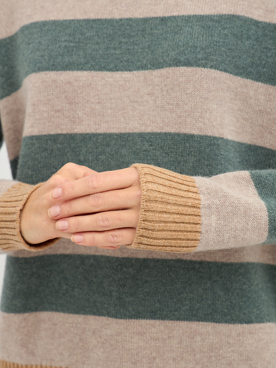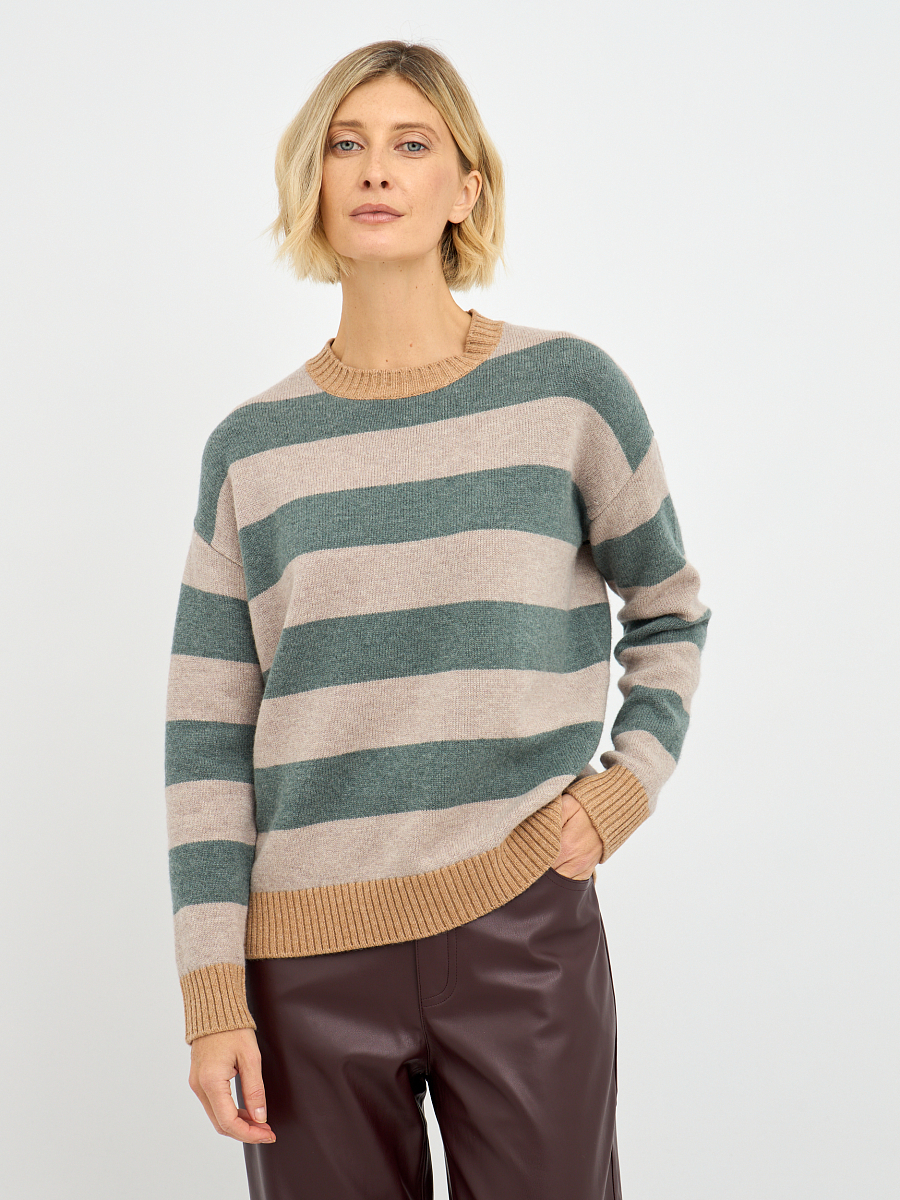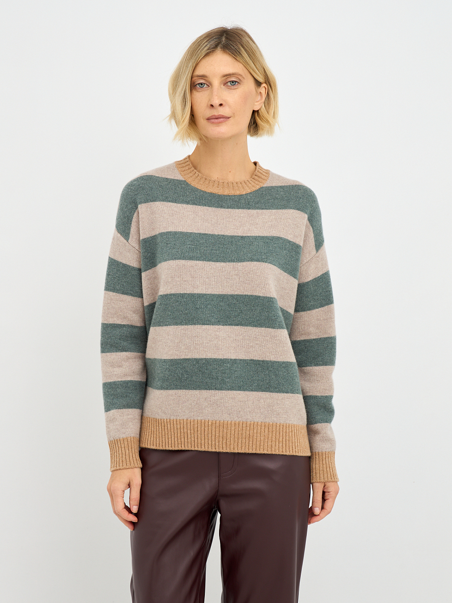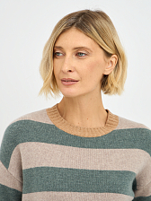 Свободный крой обеспечивает максимальный комфорт и свободу движений. Классический полосатый дизайн добавляет образу свежести и непринужденности. Цветовая гамма в нейтральных тонах легко сочетается с любым гардеробом. Его можно носить с джинсами, брюками или юбками, создавая разные стили.