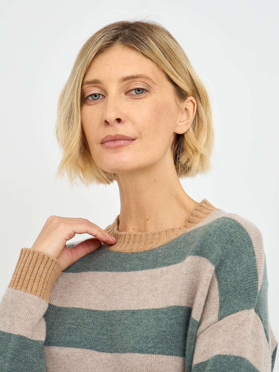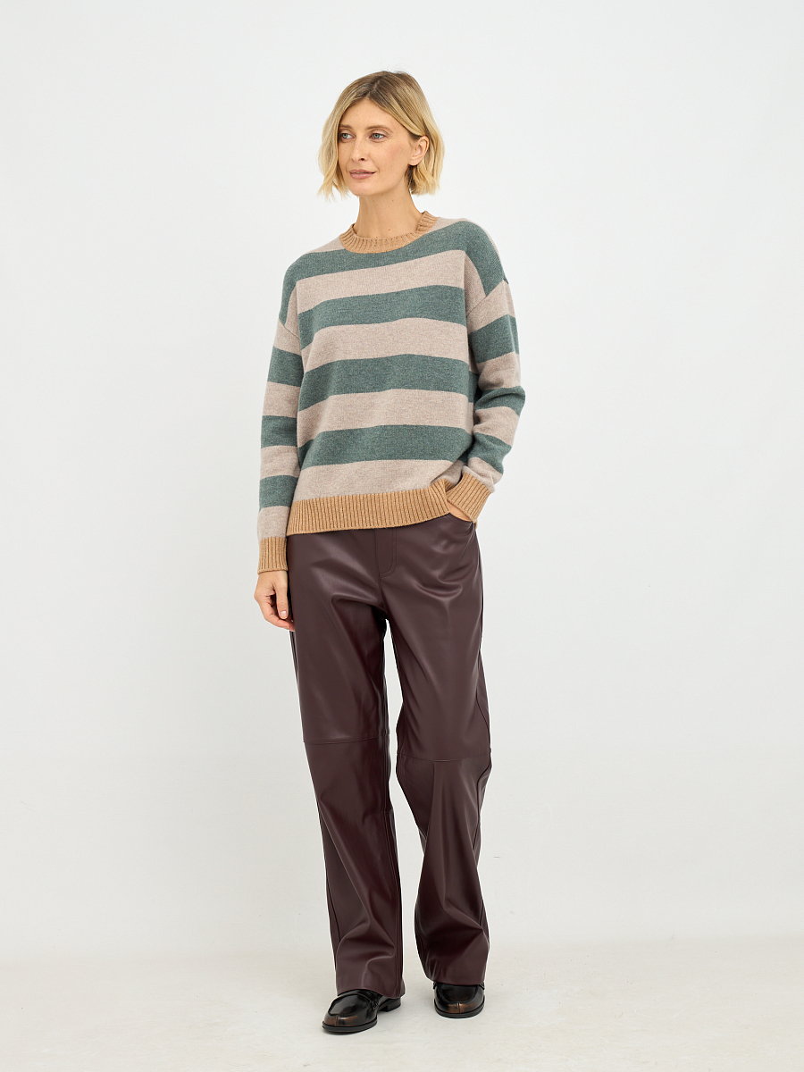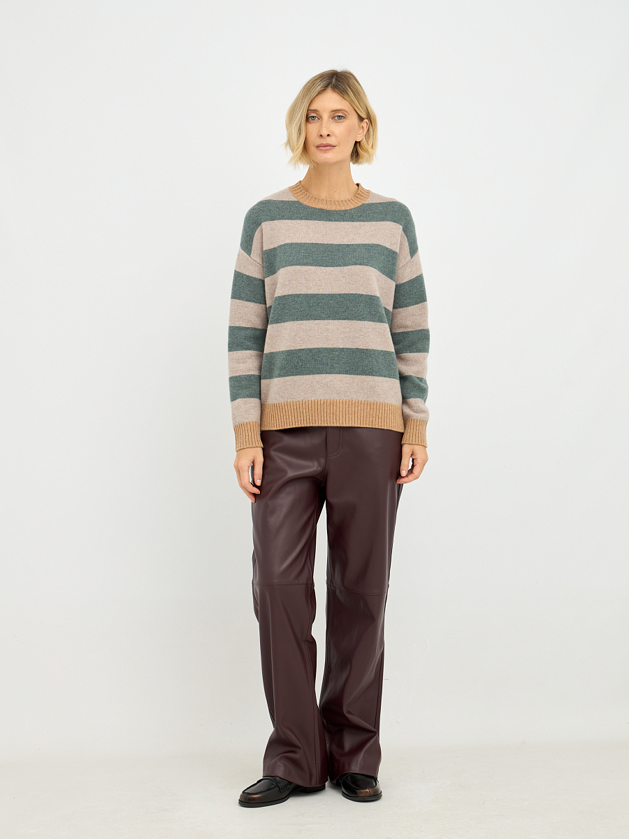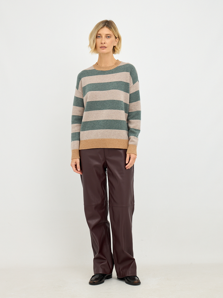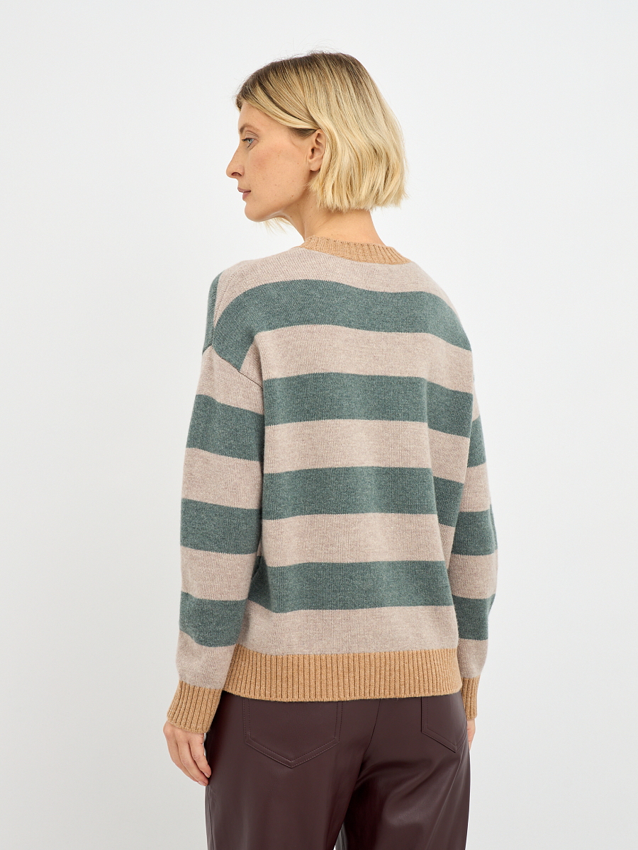 Свободный крой обеспечивает максимальный комфорт и свободу движений. Классический полосатый дизайн добавляет образу свежести и непринужденности. Цветовая гамма в нейтральных тонах легко сочетается с любым гардеробом. Его можно носить с джинсами, брюками или юбками, создавая разные стили.
