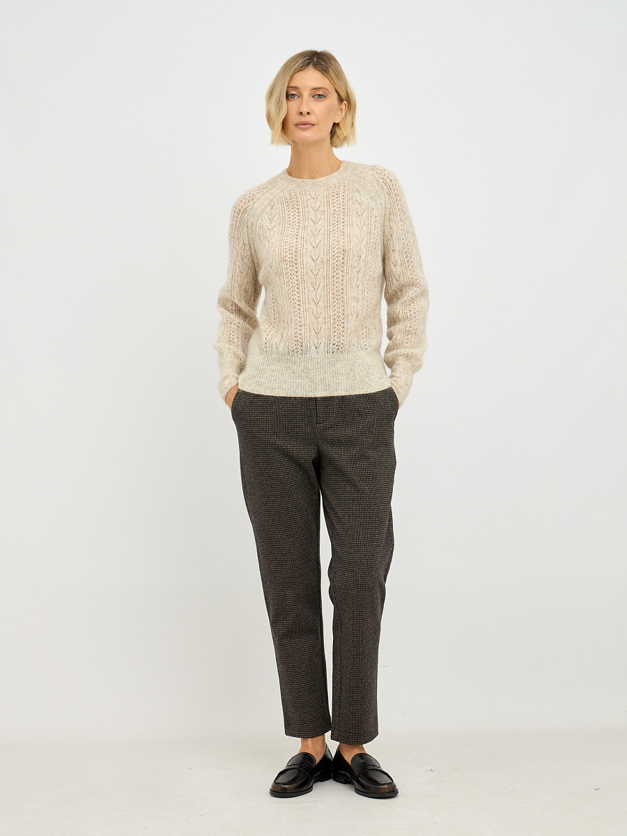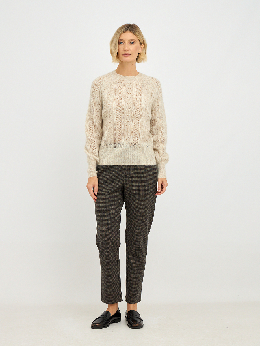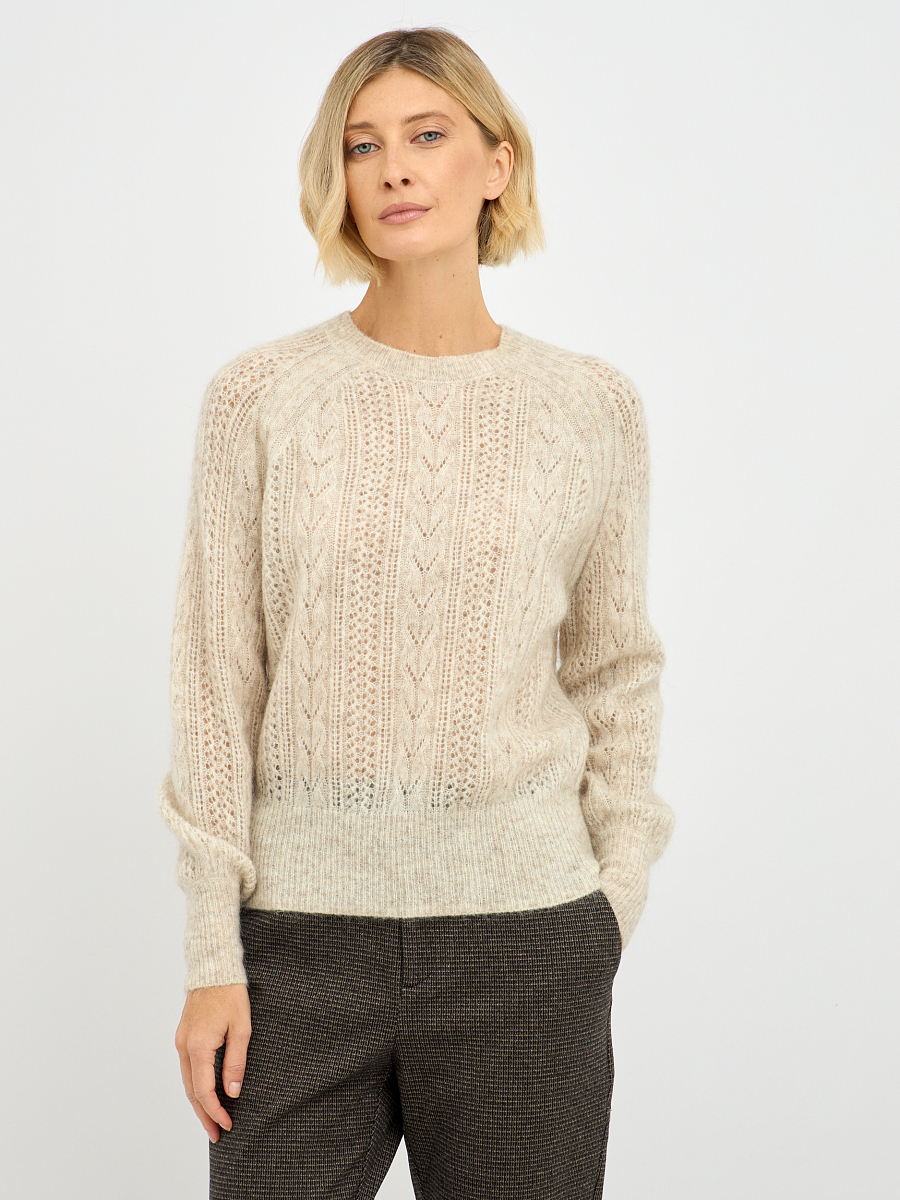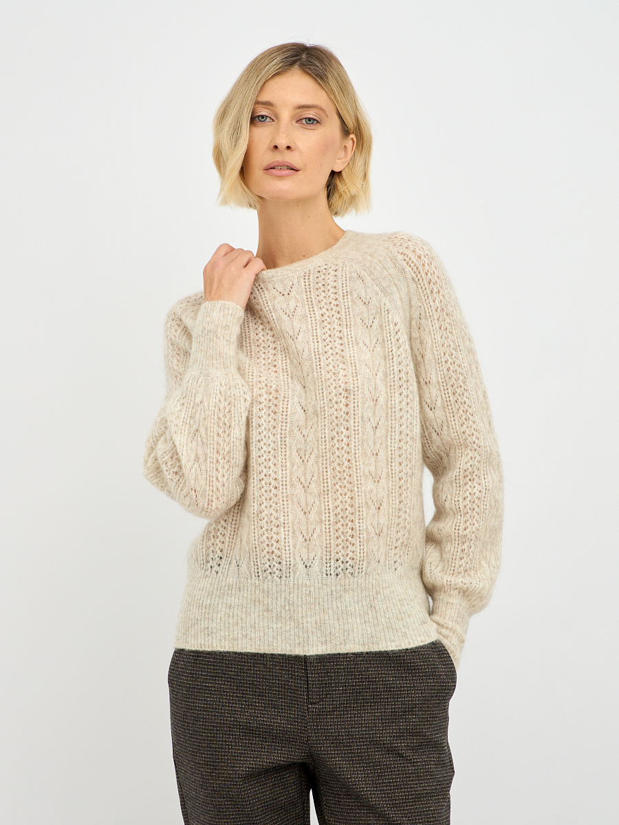 Бежевый цвет джемпера легко комбинируется с различными элементами вашего гардероба, будь то классические брюки, юбки или джинсы. Простота и элегантность дизайна делают его универсальным выбором как для повседневной носки, так и для более формальных мероприятий.