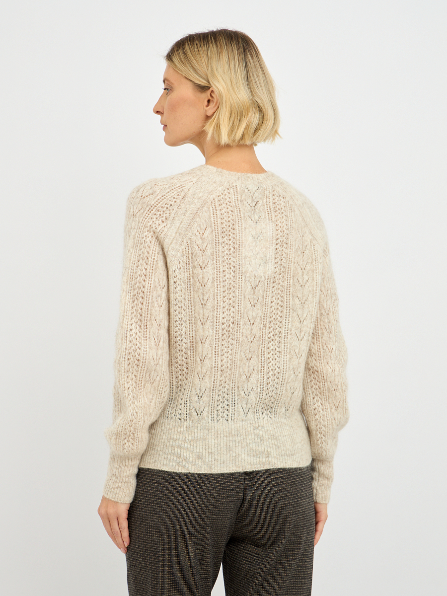 Этот джемпер выполнен из высококачественных материалов: мохера, шерсти, нейлона и спандекса. Мохер придаёт изделию невероятную лёгкость и воздушность, а шерсть обеспечивает тепло и уют в холодные дни. Нейлон добавляет прочности и износостойкости, а спандекс обеспечивает отличную эластичность, позволяя джемперу идеально облегать фигуру и не сковывать движения. Шерсть и мохер создают превосходную терморегуляцию, что позволяет вам чувствовать себя комфортно в любых условиях.