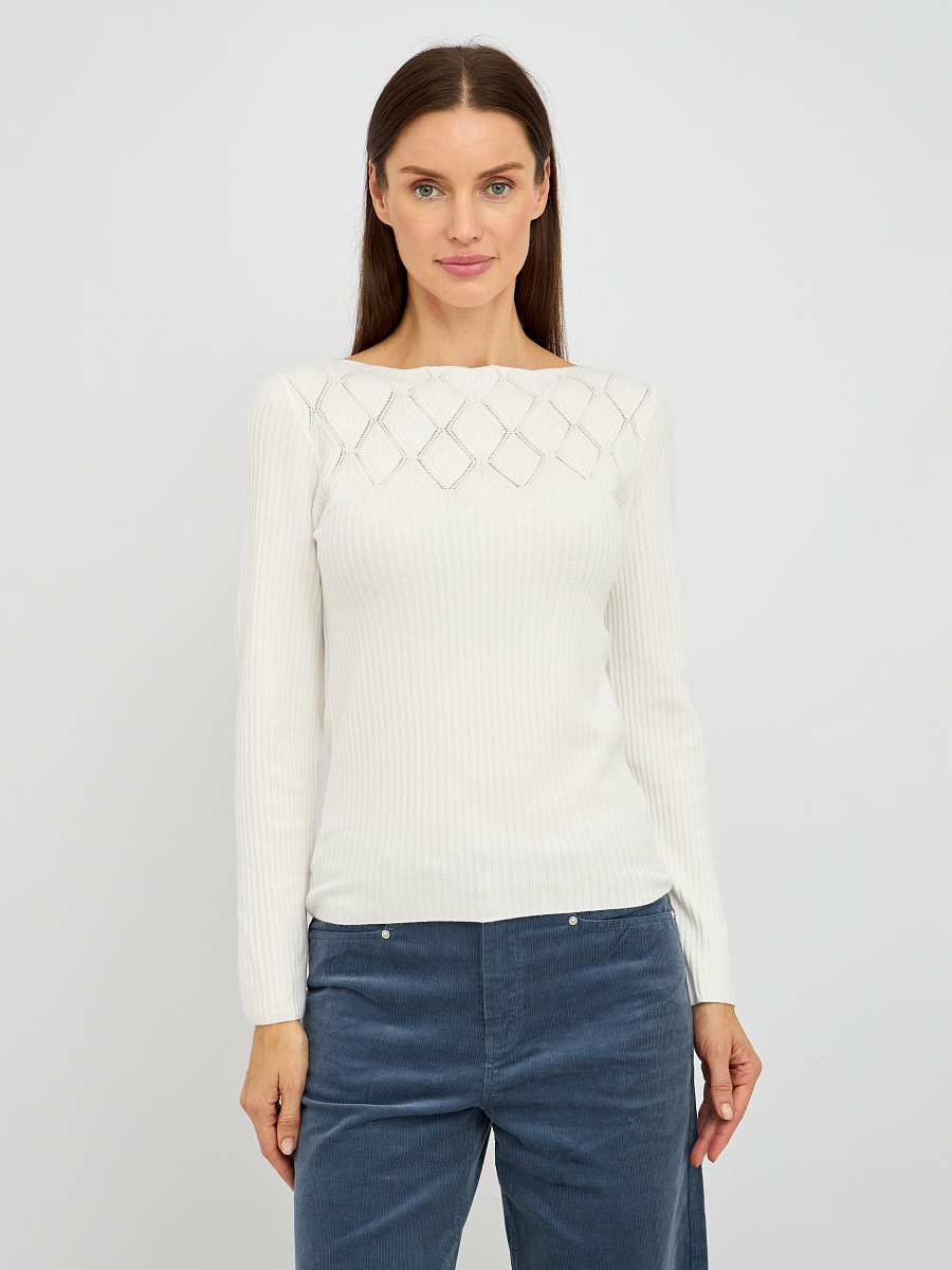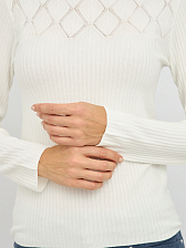 Этот джемпер приталенного силуэта подчеркнет изящество вашей фигуры, добавляя образу женственности и элегантности. Изысканная перфорация в области декольте придает модели утонченность и делает её запоминающейся. Белый цвет придает образу свежесть и легкость, позволяя создавать разнообразные стильные образы.