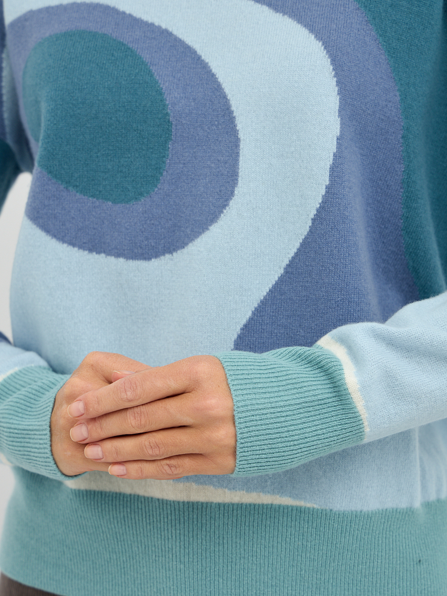Этот джемпер воплощает в себе спокойствие. Его глубокий, насыщенный оттенок придает образу утонченность и элегантность, легко сочетаясь с любыми другими цветами и фактурами. Голубой – это цвет вдохновения, спокойствия и гармонии, который будет поднимать вам настроение в любое время года.