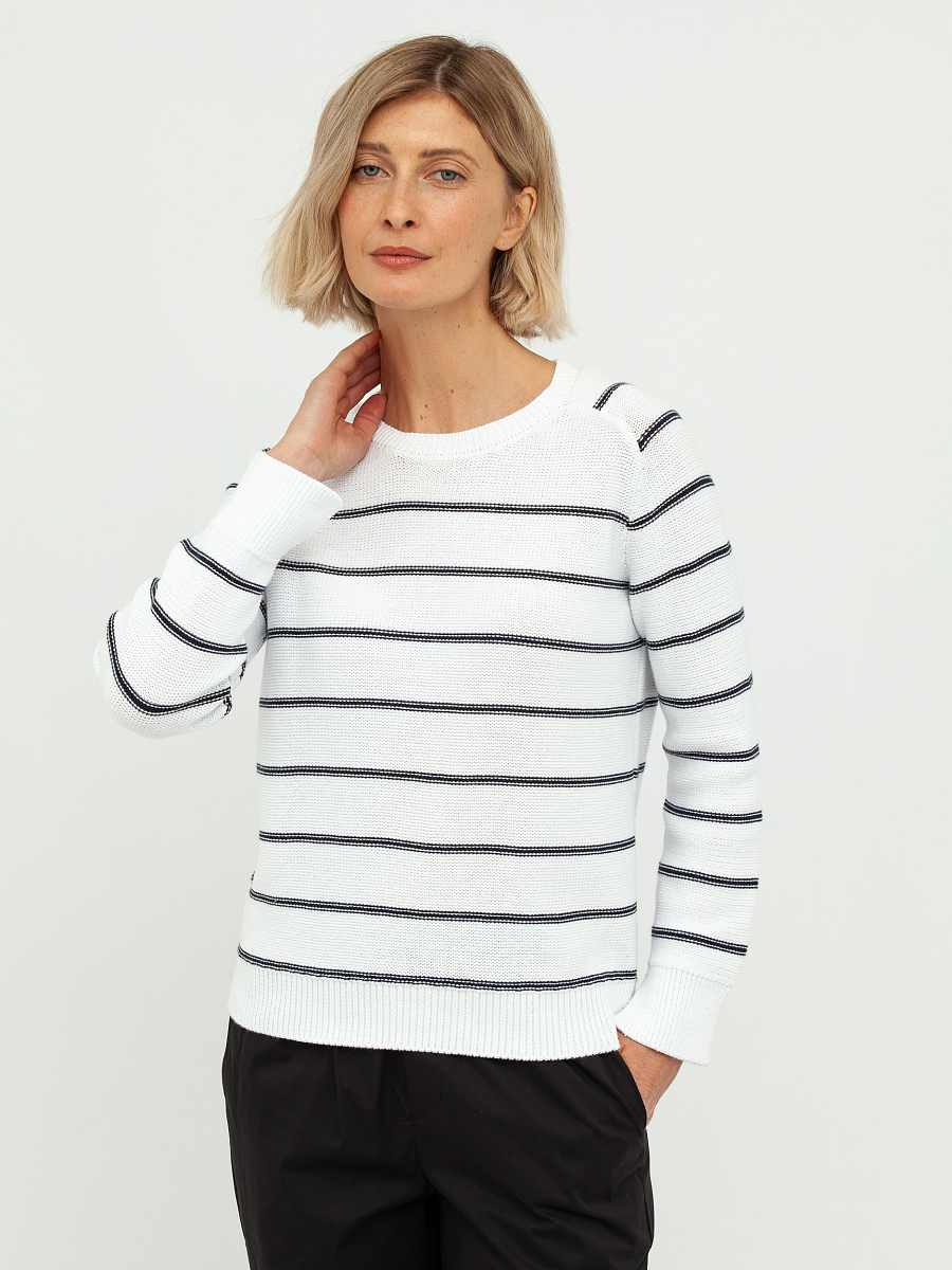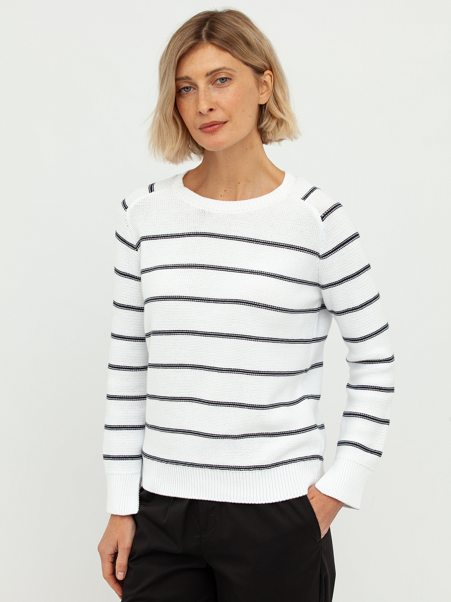 джемпер женский в белом цвете из хлопка в полоску