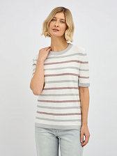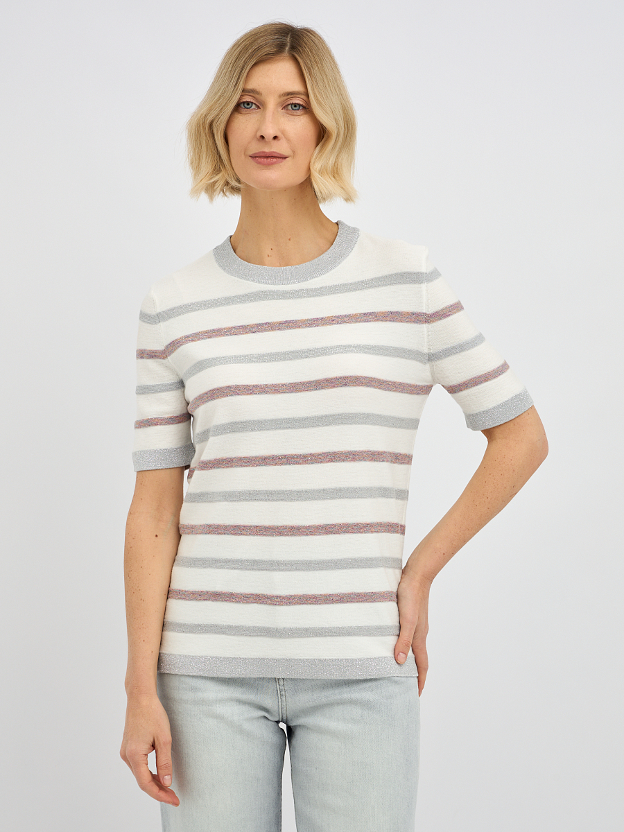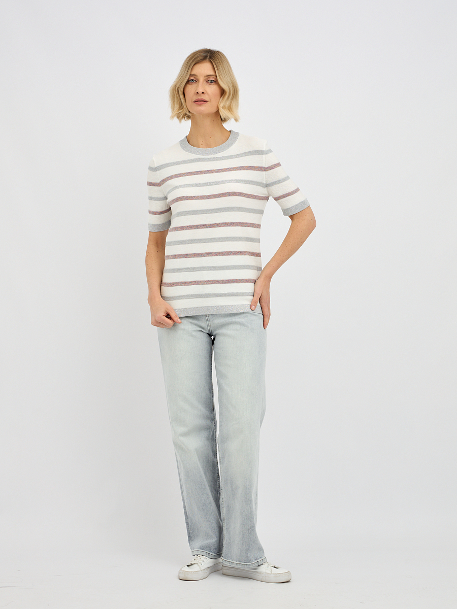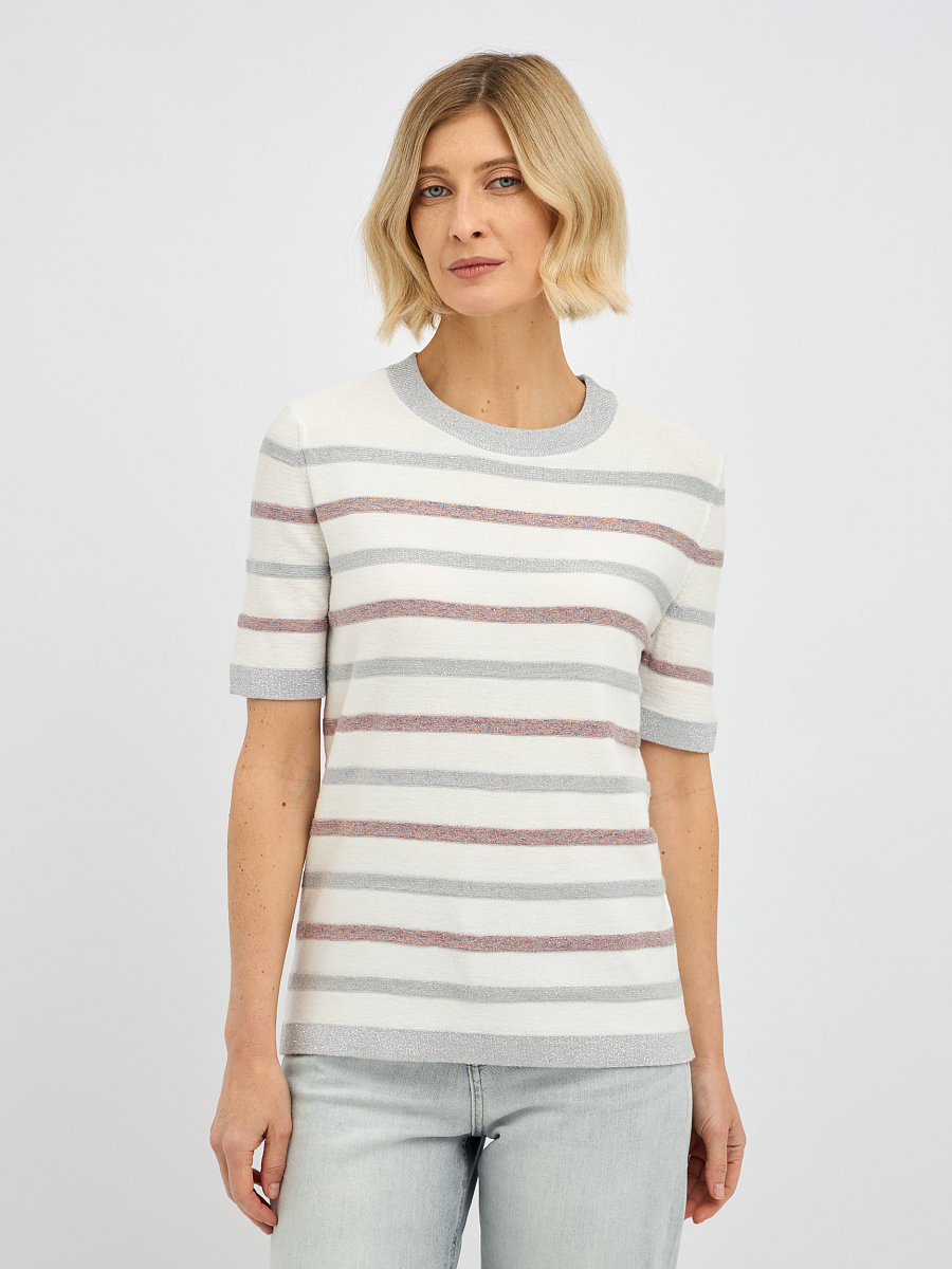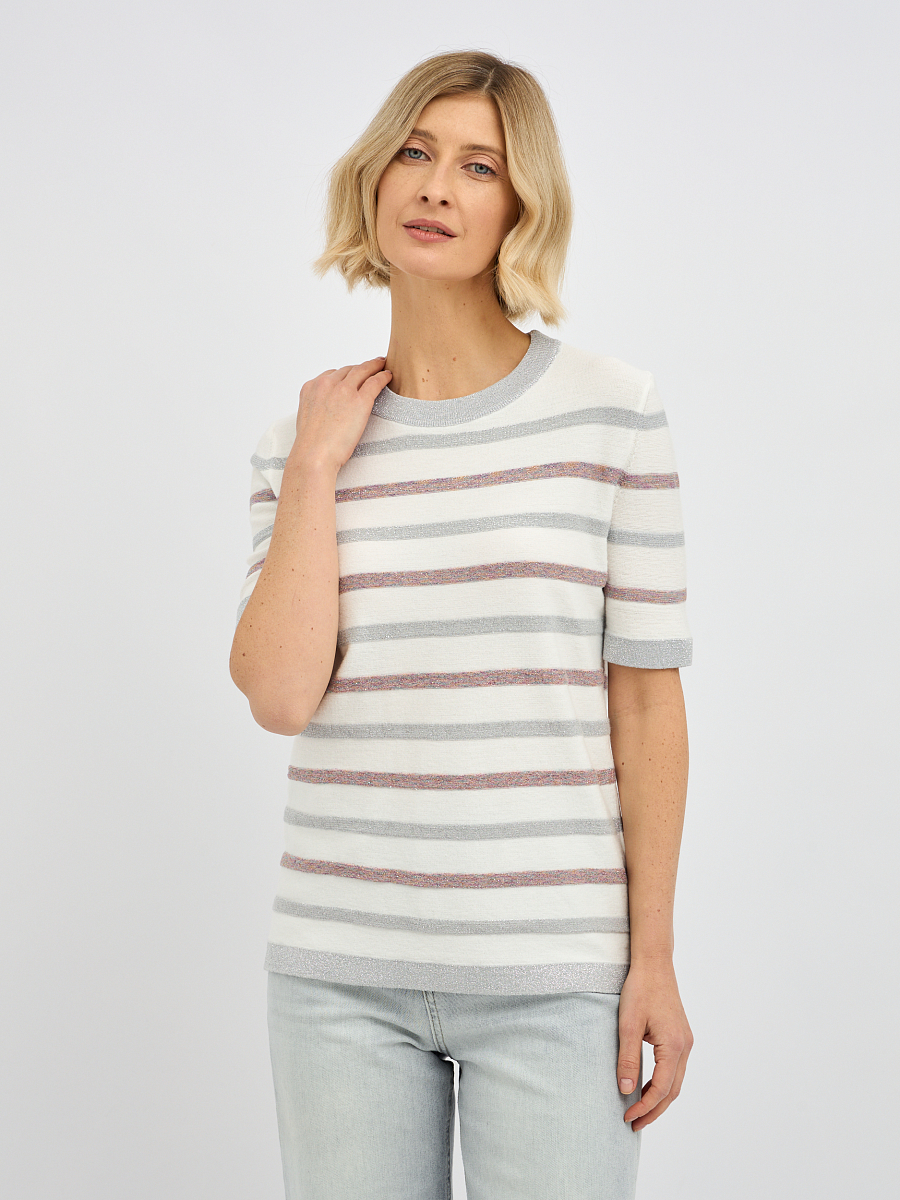 джемпер женский в молочном цвете в полоску с добавлением люрекса