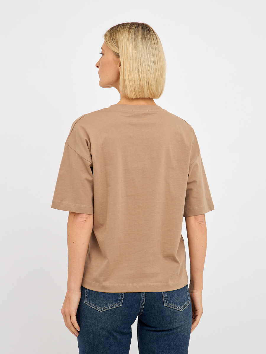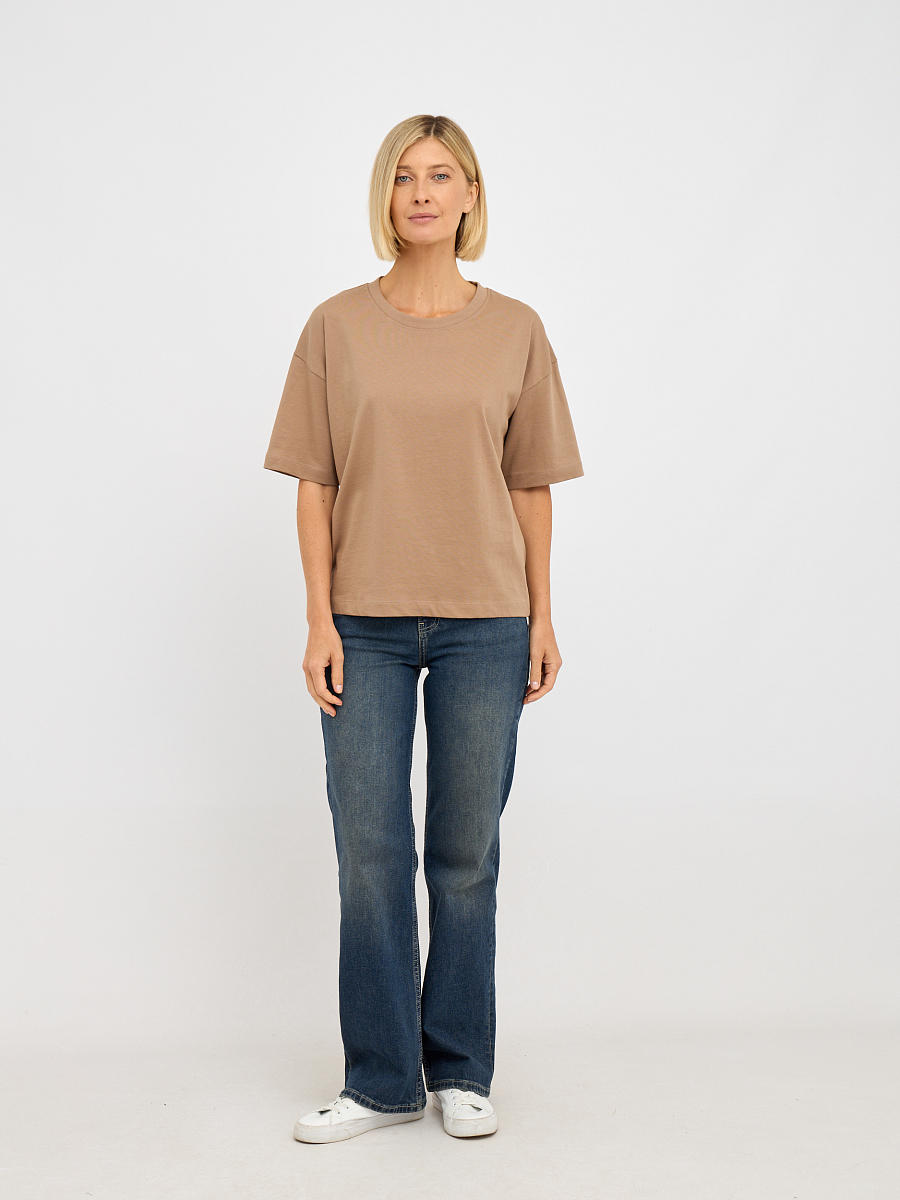 Свободный крой футболки обеспечивает неограниченную свободу движений, позволяя вам чувствовать себя уверенно и непринужденно в любой ситуации. Этот фасон прекрасно подходит для любого типа фигуры, скрывая возможные недостатки и подчеркивая достоинства. Уникальность дизайна заключается в его лаконичности и универсальности. Футболка не перегружена деталями, что делает ее идеальной основой для создания множества образов.