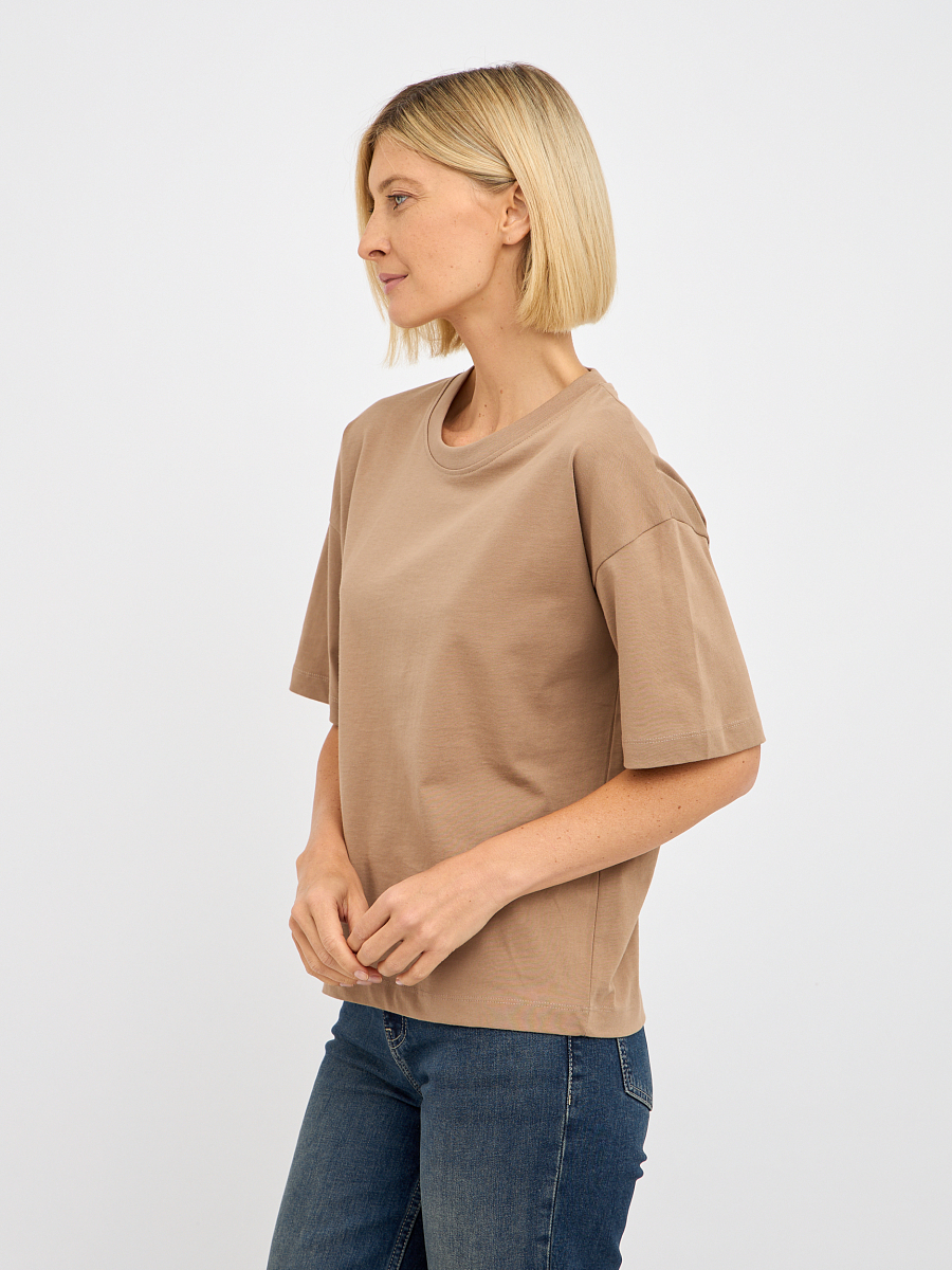 Эта базовая женская футболка свободного кроя – воплощение стиля и комфорта. Она выполнена из 100% хлопка, что обеспечивает максимальную воздухопроницаемость и делает ее идеальным выбором для жарких дней и активного образа жизни.