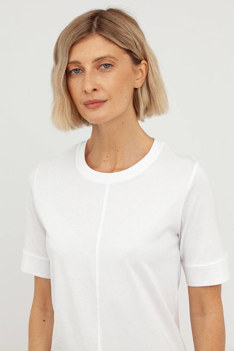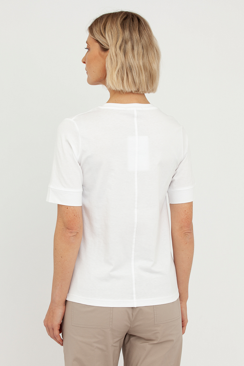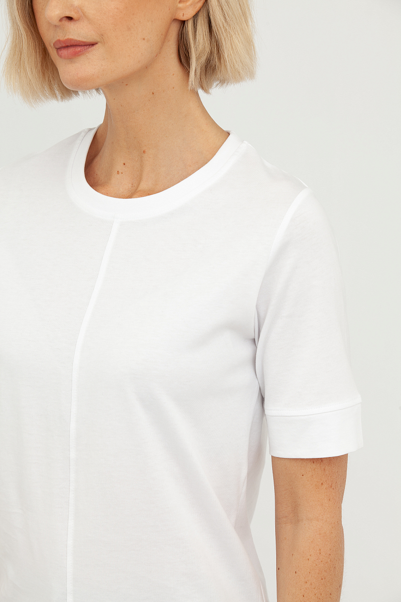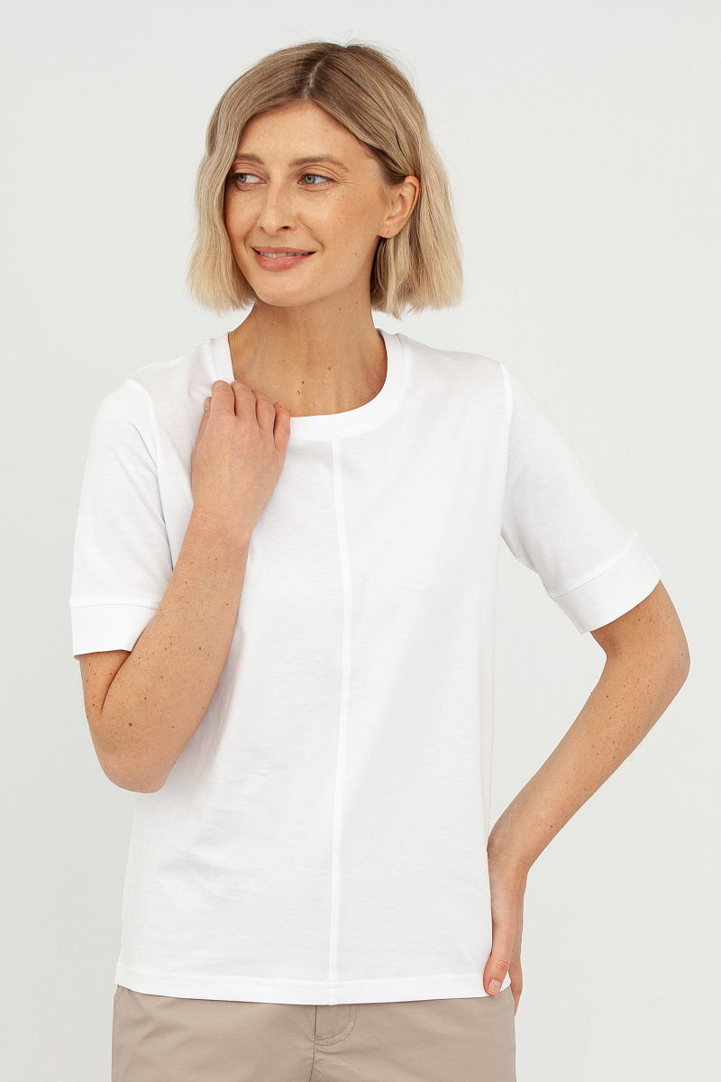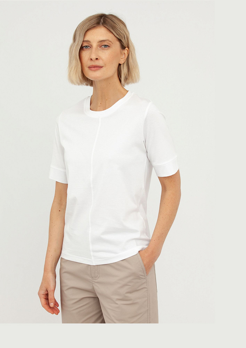 Эта футболка — воплощение минимализма и элегантности, идеальный выбор для создания как повседневных, так и более изысканных образов.