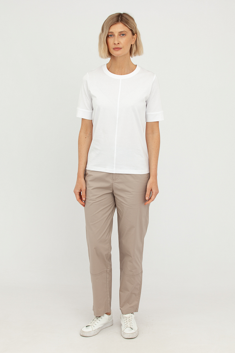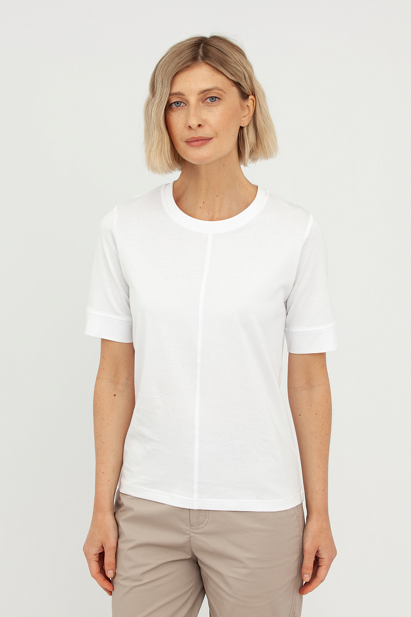 Эта женская базовая футболка из высококачественного хлопка станет основой вашего гардероба. Мягкий и дышащий материал обеспечивает непревзойденный комфорт в течение всего дня, позволяя вашей коже дышать. Натуральный хлопок гипоаллергенен и приятен к телу, что делает эту футболку отличным выбором для чувствительной кожи.