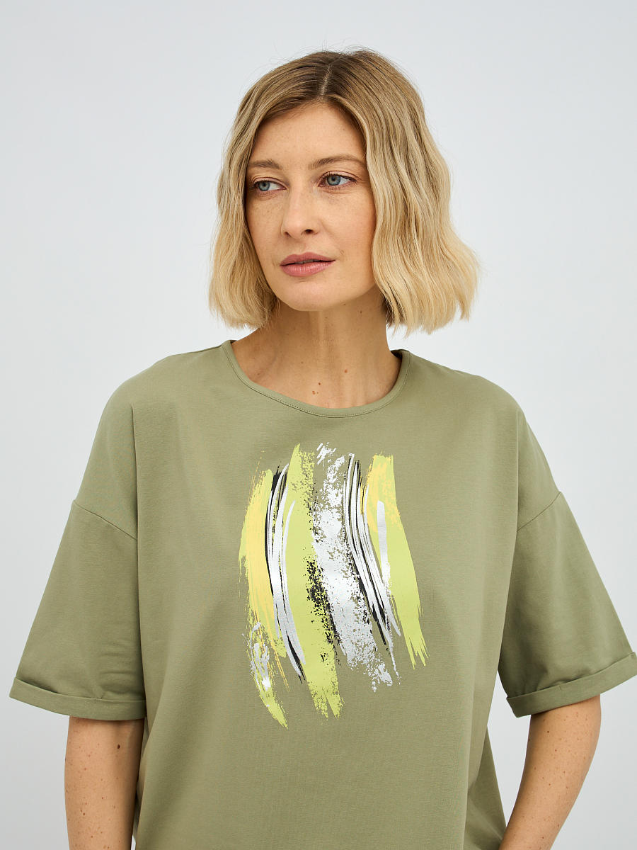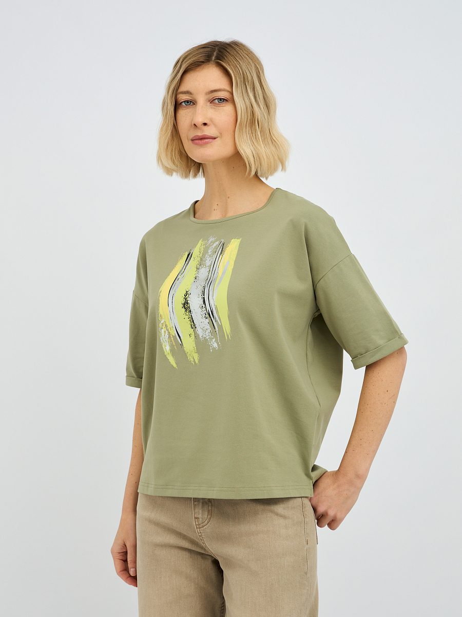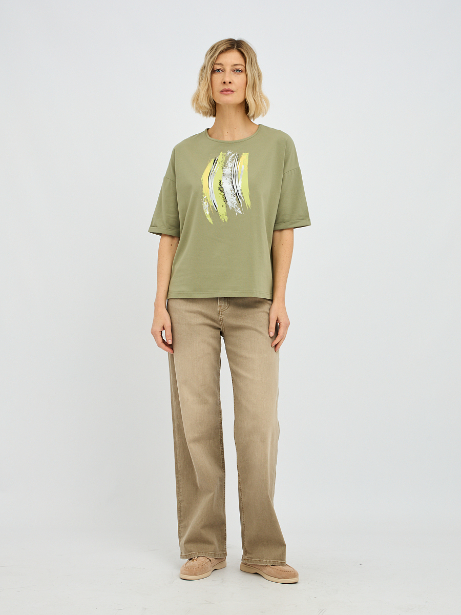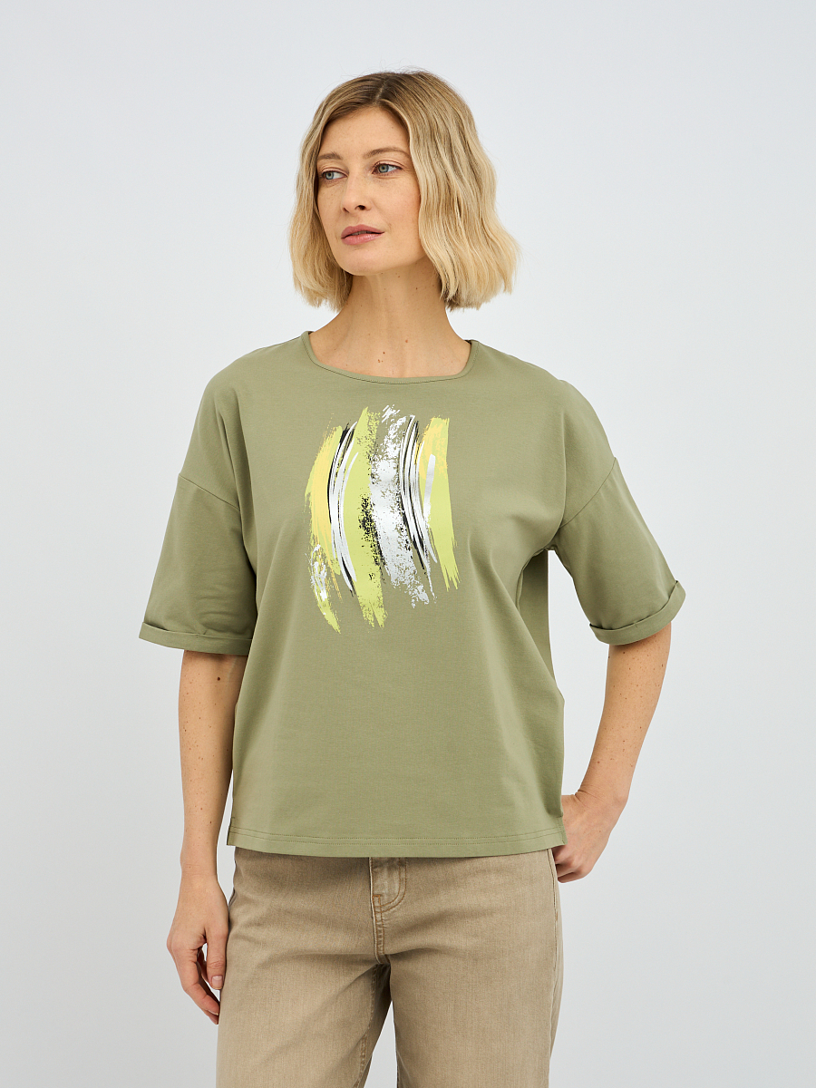 футболка женская в зелёном цвете с принтом
