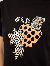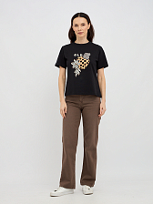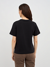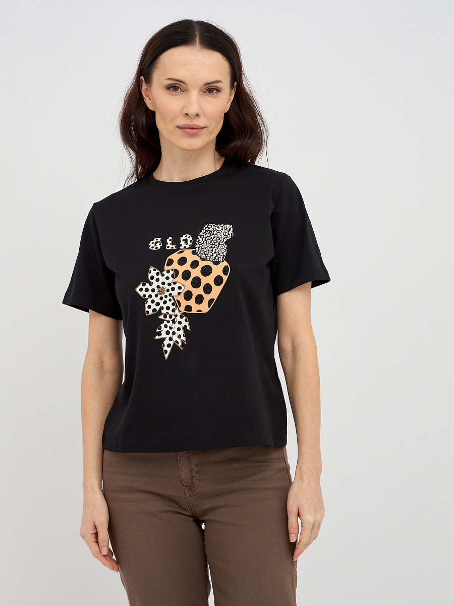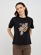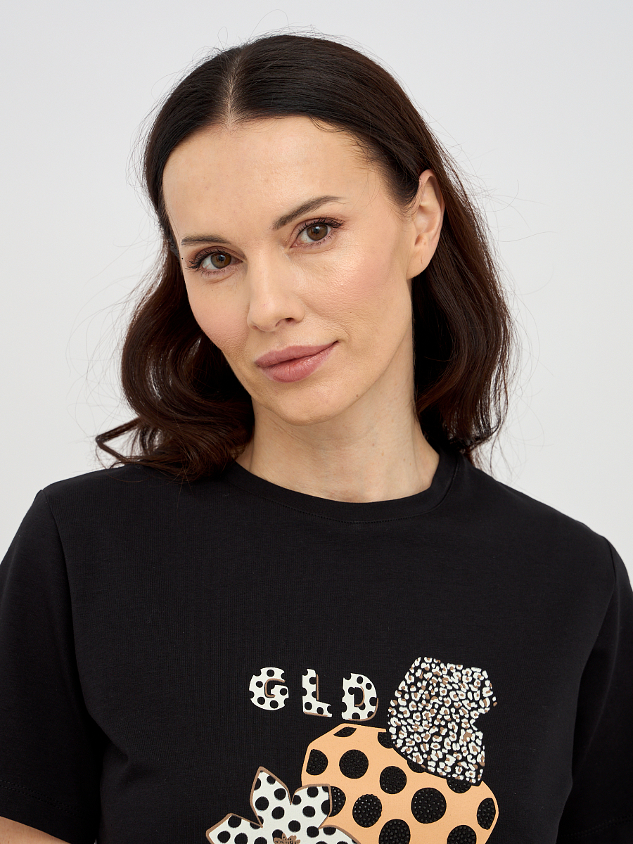 футболка женская в чёрном цвете с принтом и добавлением страз