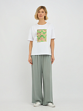 брюки женские широкого силуэта из вискозы с поясом на резинке