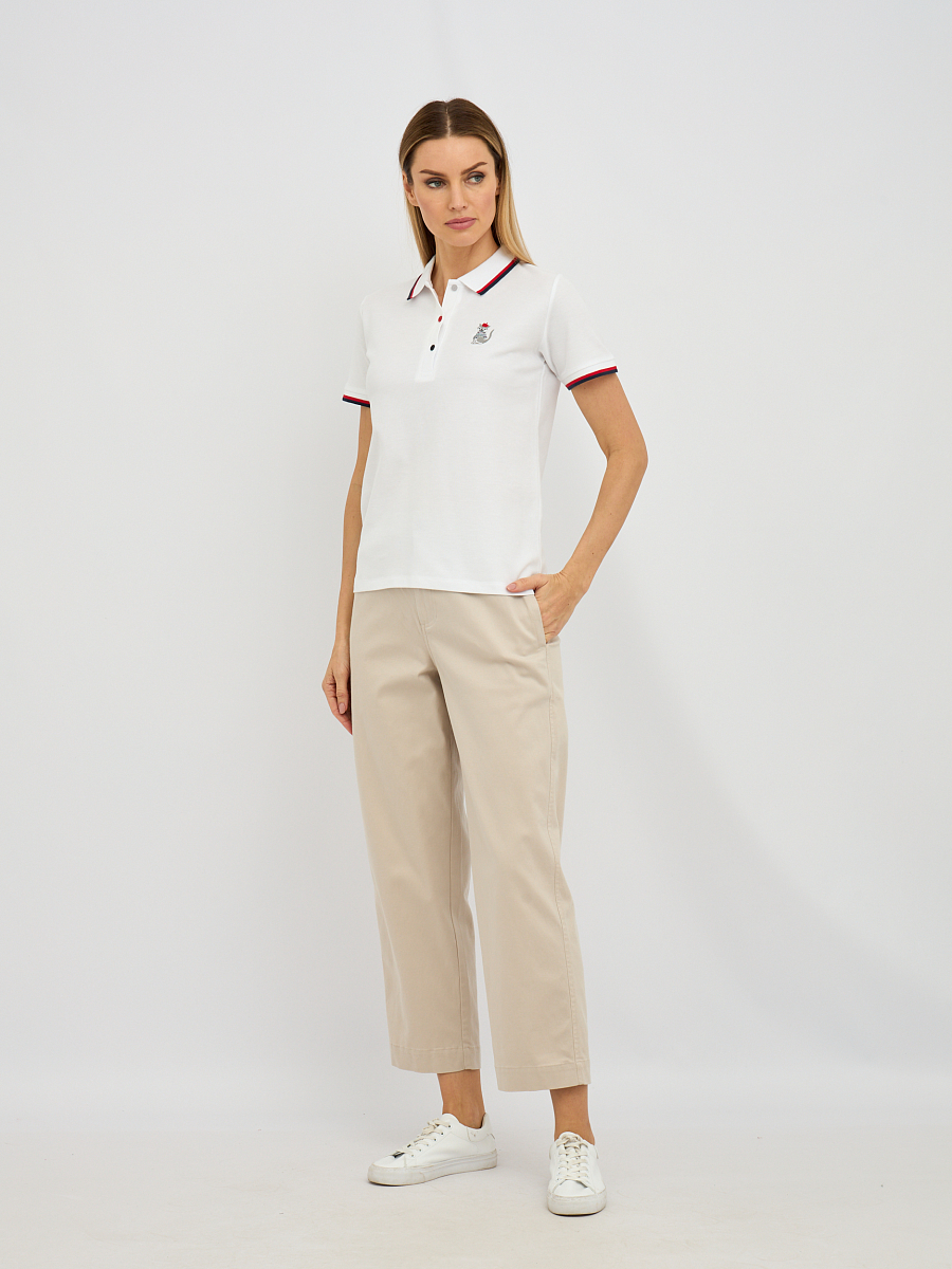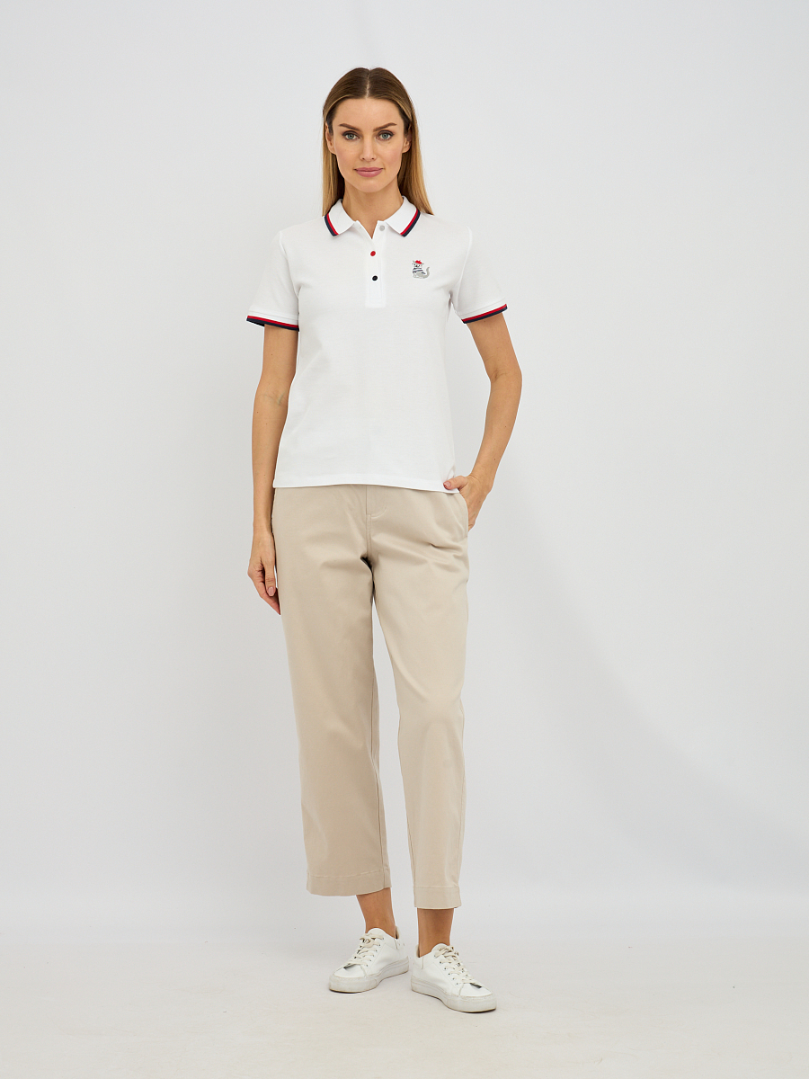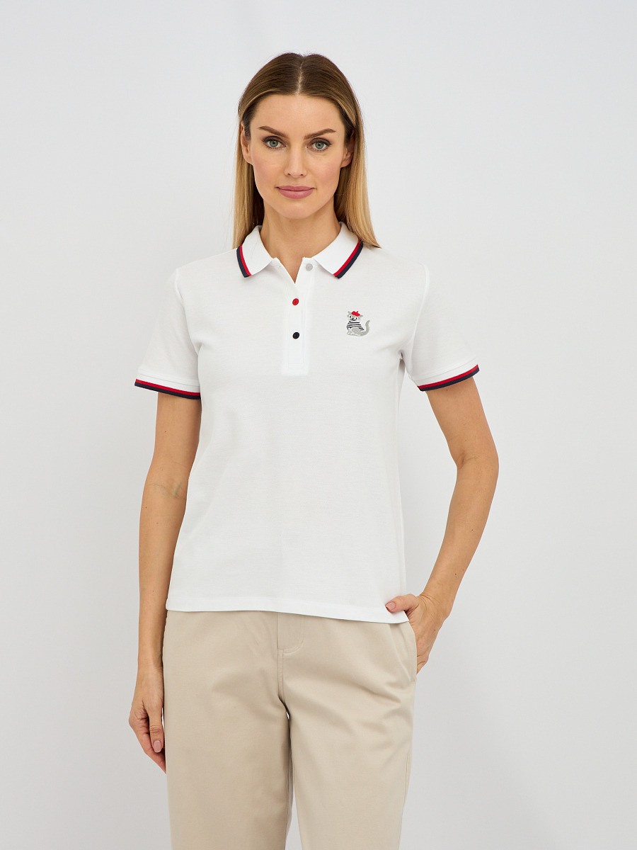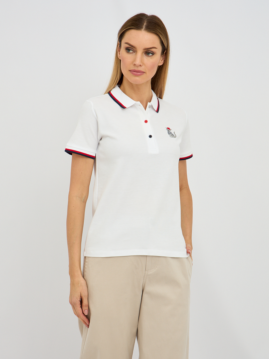 Это стильное женское поло белого цвета станет отличным дополнением вашего гардероба.