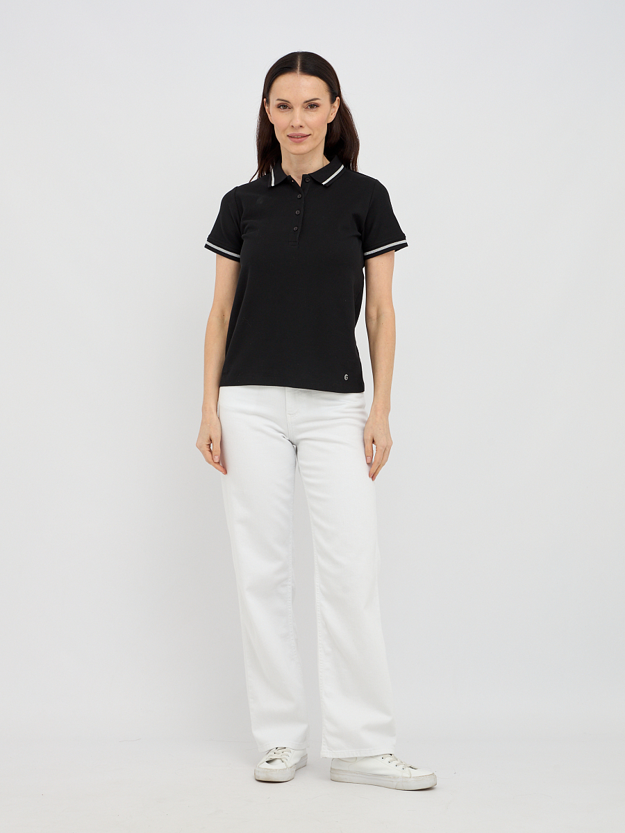 Дизайн поло отличается классическим, но в то же время изысканным видом, который никогда не выходит из моды. Контрастная окантовка по воротнику и манжетам придает изделию стильный акцент и визуально подчеркивает утонченность линий. Этот элемент дизайна добавляет нотку спортивной элегантности, делая поло универсальной вещью в вашем гардеробе. Прямой крой выгодно подчеркнет достоинства фигуры, создавая женственный и аккуратный силуэт. Пуговицы на планке аккуратно вписываются в общий дизайн, добавляя практичности и завершенности образу.