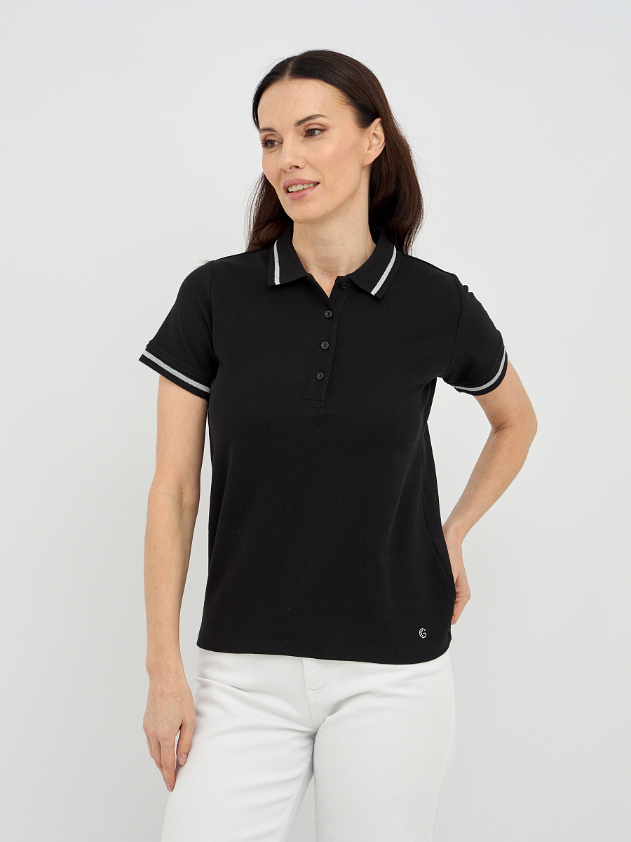 поло женское из хлопка с контрастной окантовкой