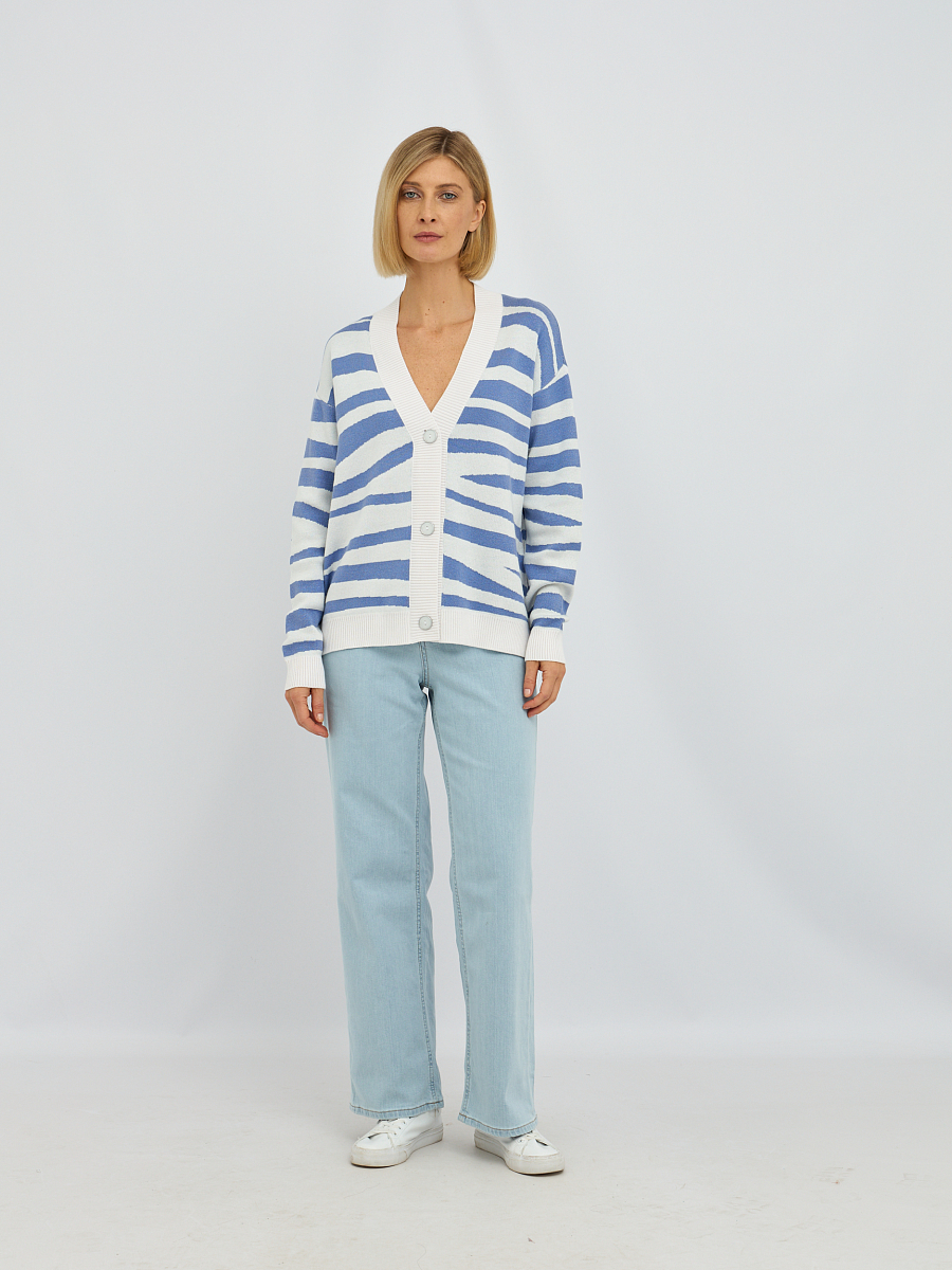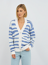 Этот кардиган в молочном цвете с выразительными полосками сиреневого оттенка станет настоящим украшением вашего гардероба.