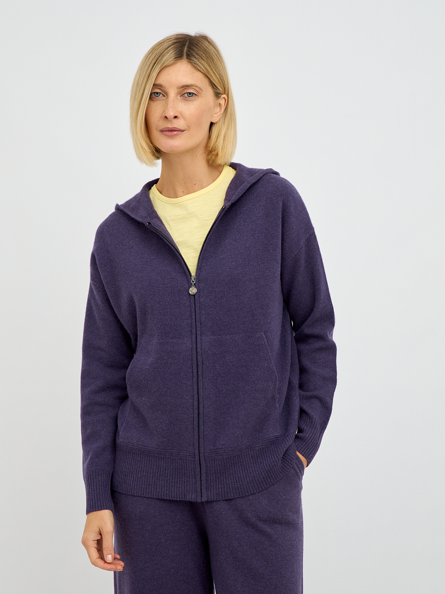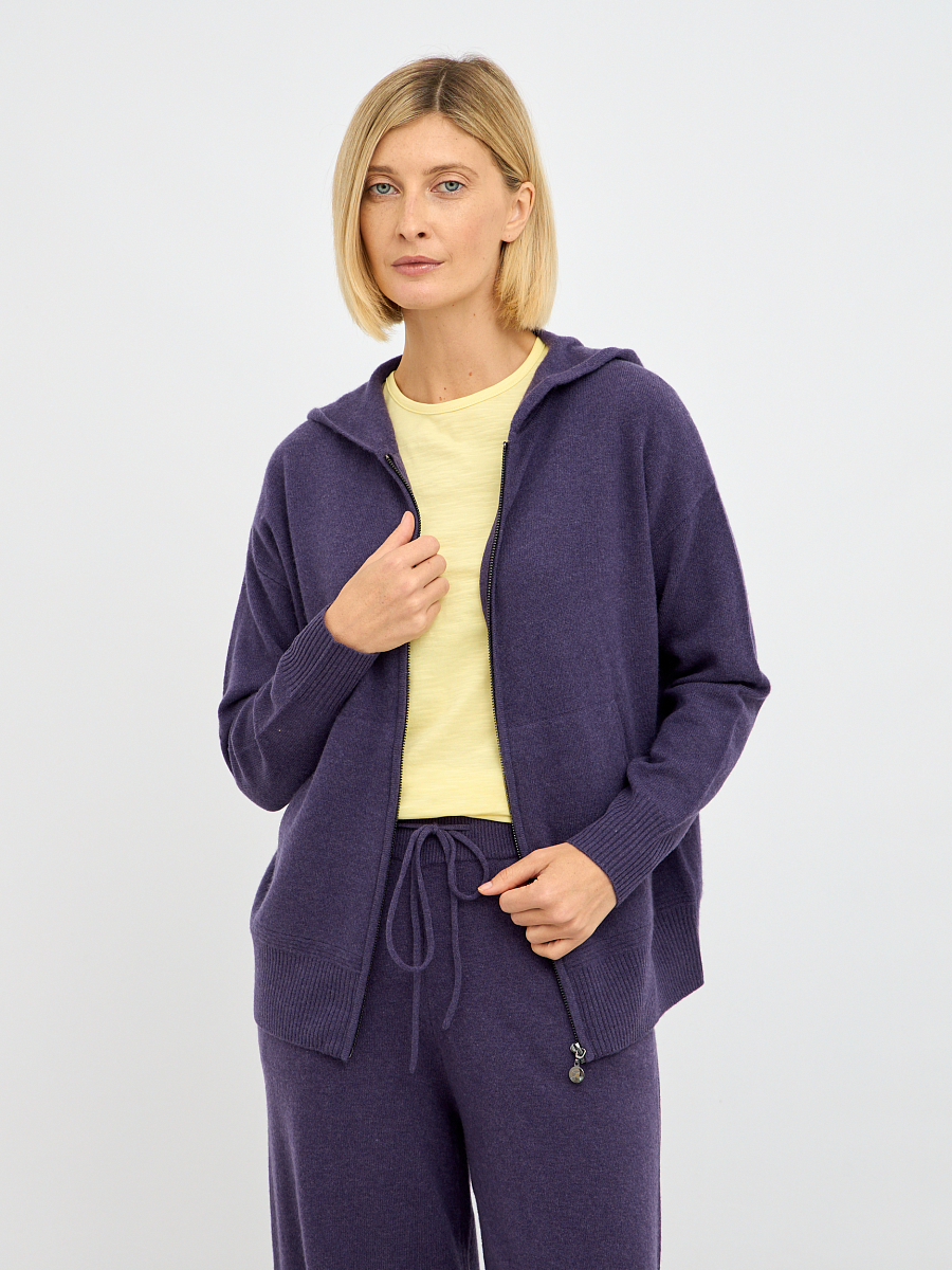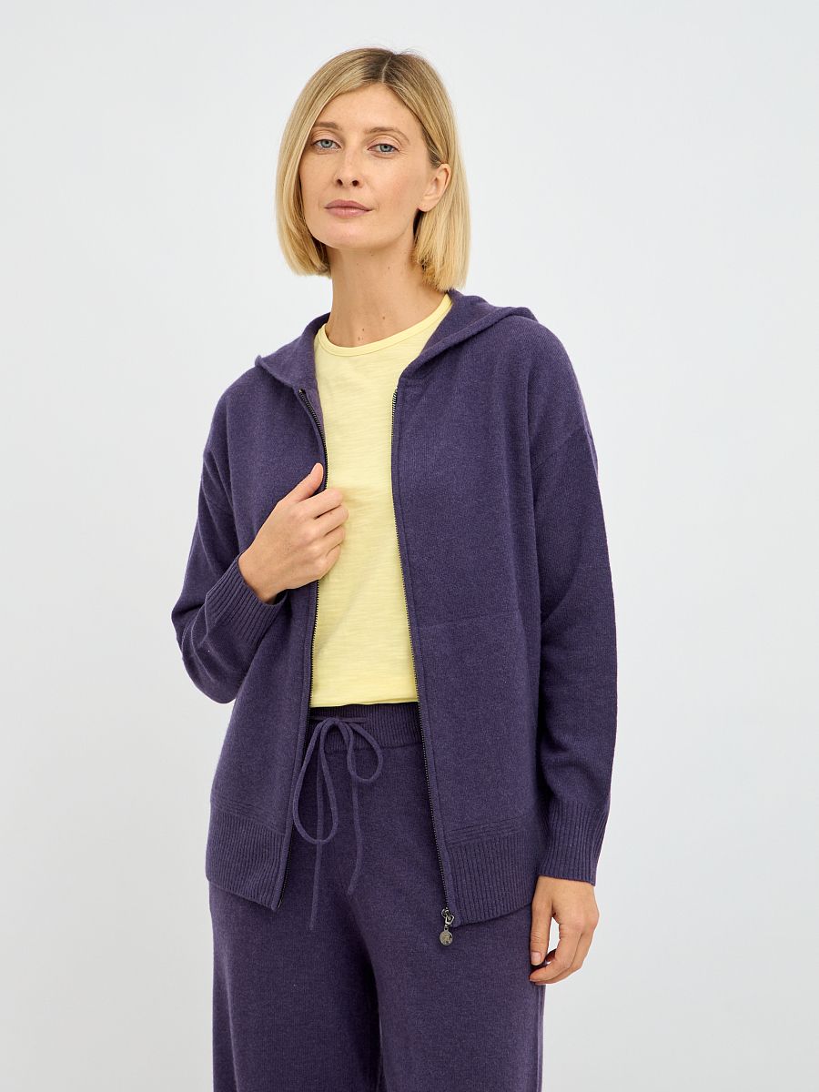 Наличие молнии обеспечивает легкость в надевании и снятии, а также позволяет регулировать степень тепла. Капюшон добавляет образу нотку спортивной непринужденности и обеспечивает дополнительную защиту от ветра и непогоды. Лаконичный крой кардигана подчеркивает достоинства фигуры, не сковывая движений.