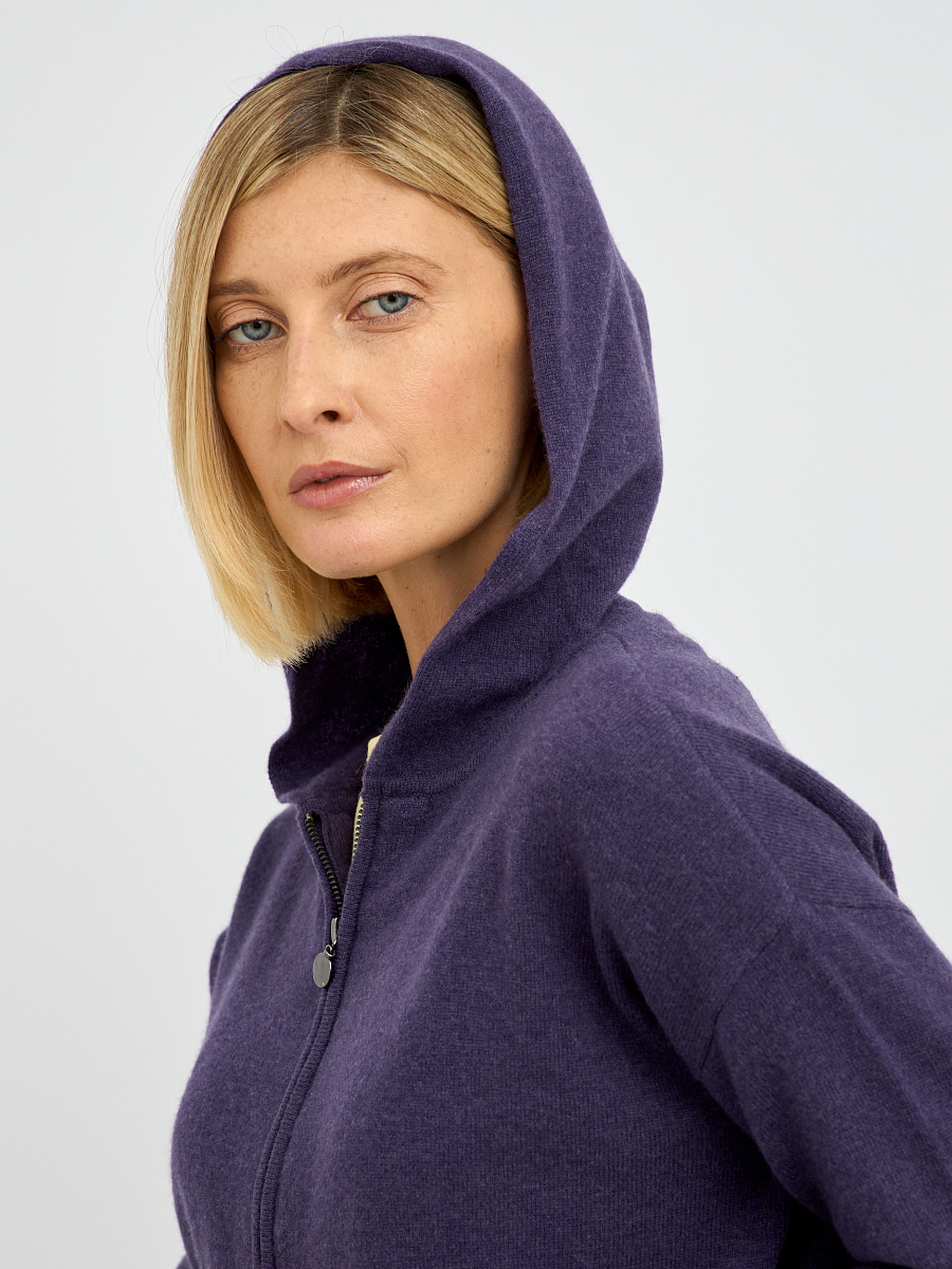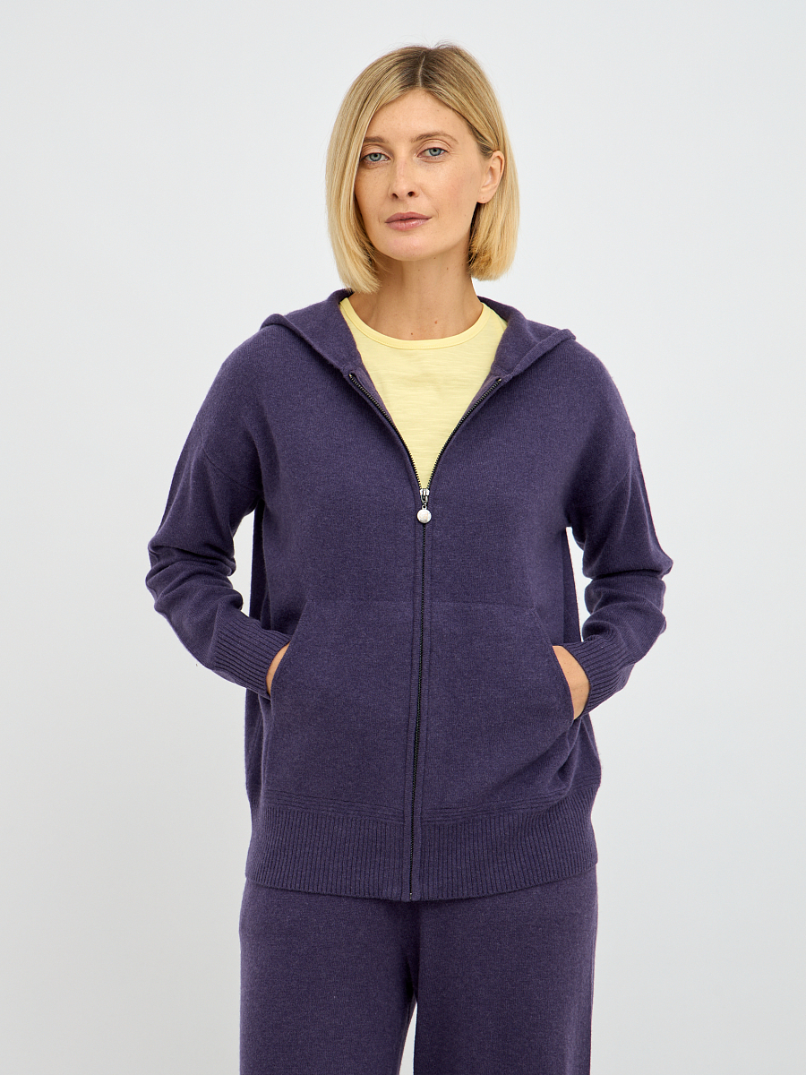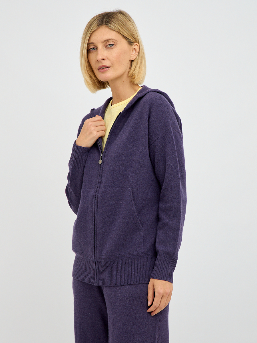 Наличие молнии обеспечивает легкость в надевании и снятии, а также позволяет регулировать степень тепла. Капюшон добавляет образу нотку спортивной непринужденности и обеспечивает дополнительную защиту от ветра и непогоды. Лаконичный крой кардигана подчеркивает достоинства фигуры, не сковывая движений.