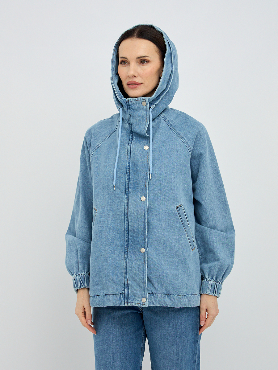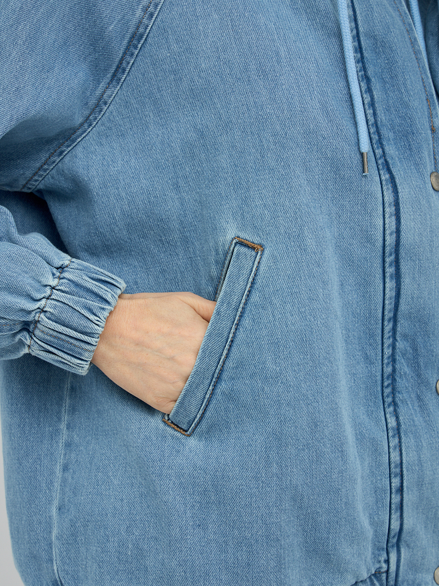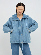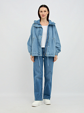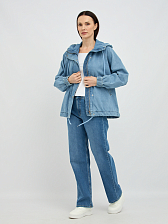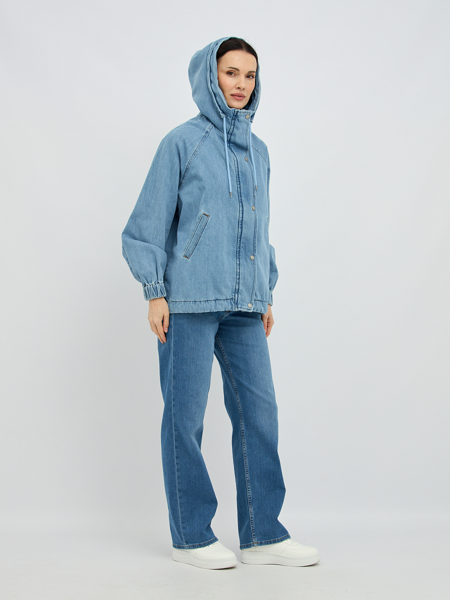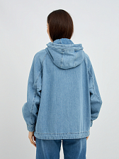 куртка женская джинсовая в голубом цвете свободного силуэта с капюшоном