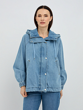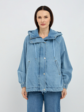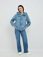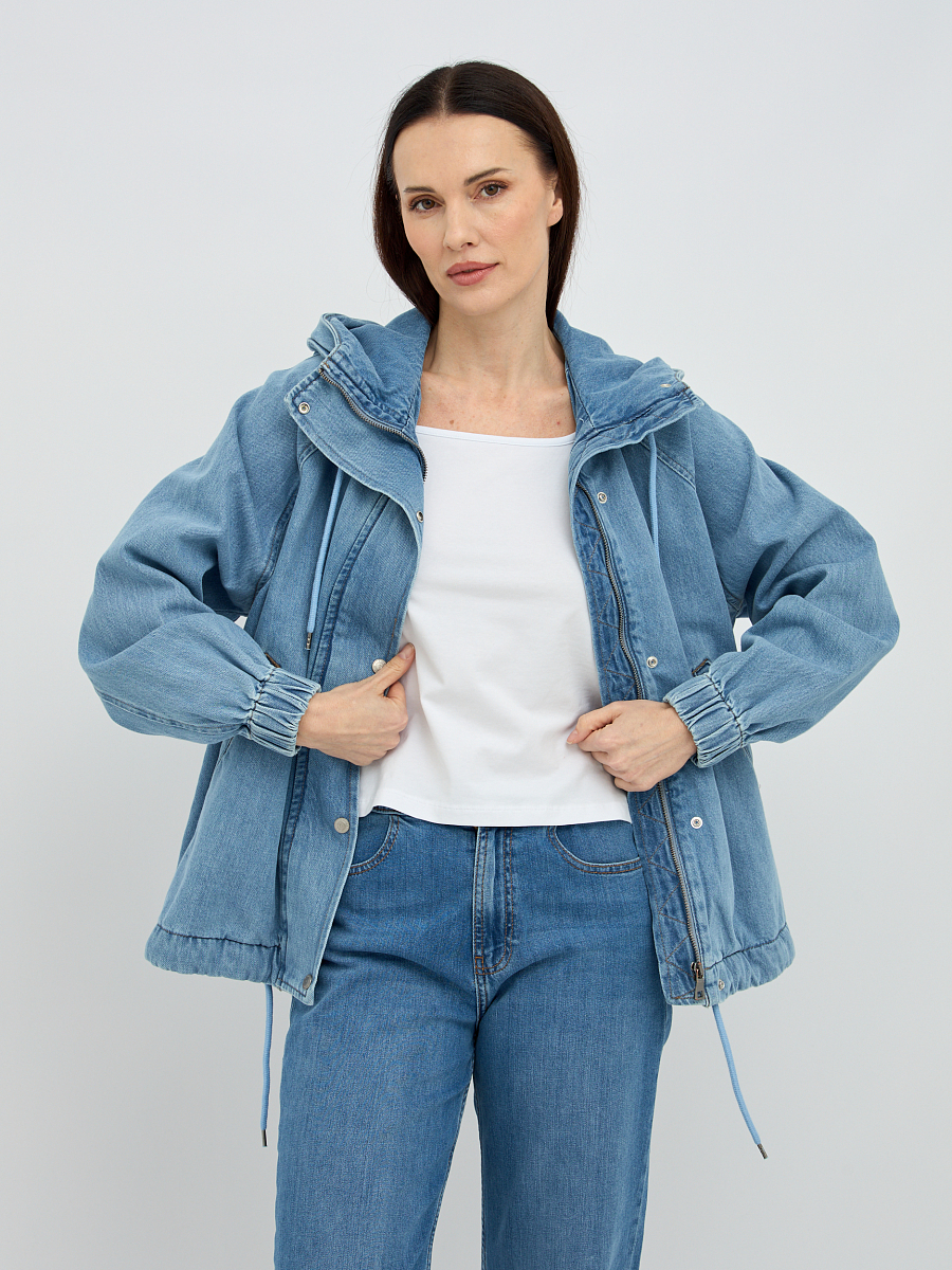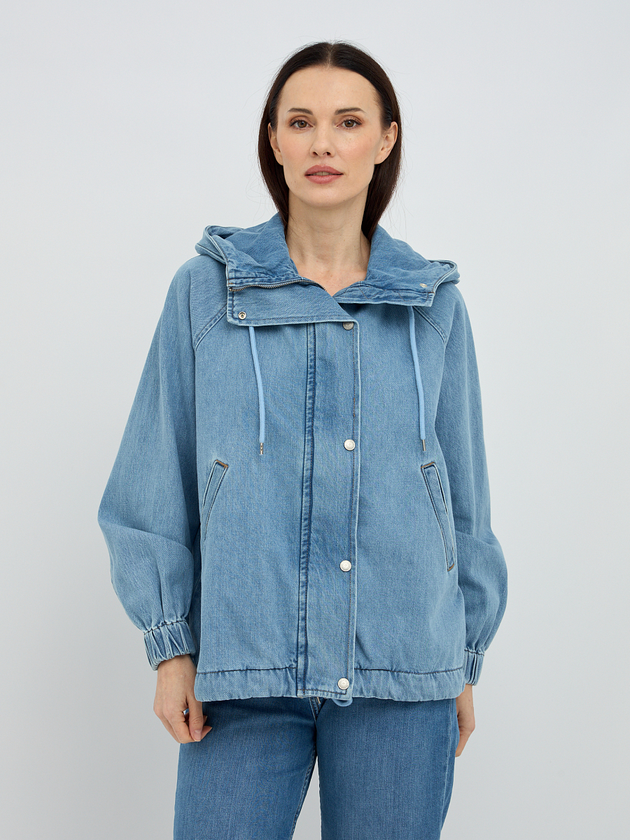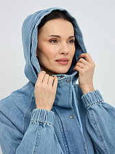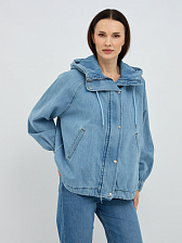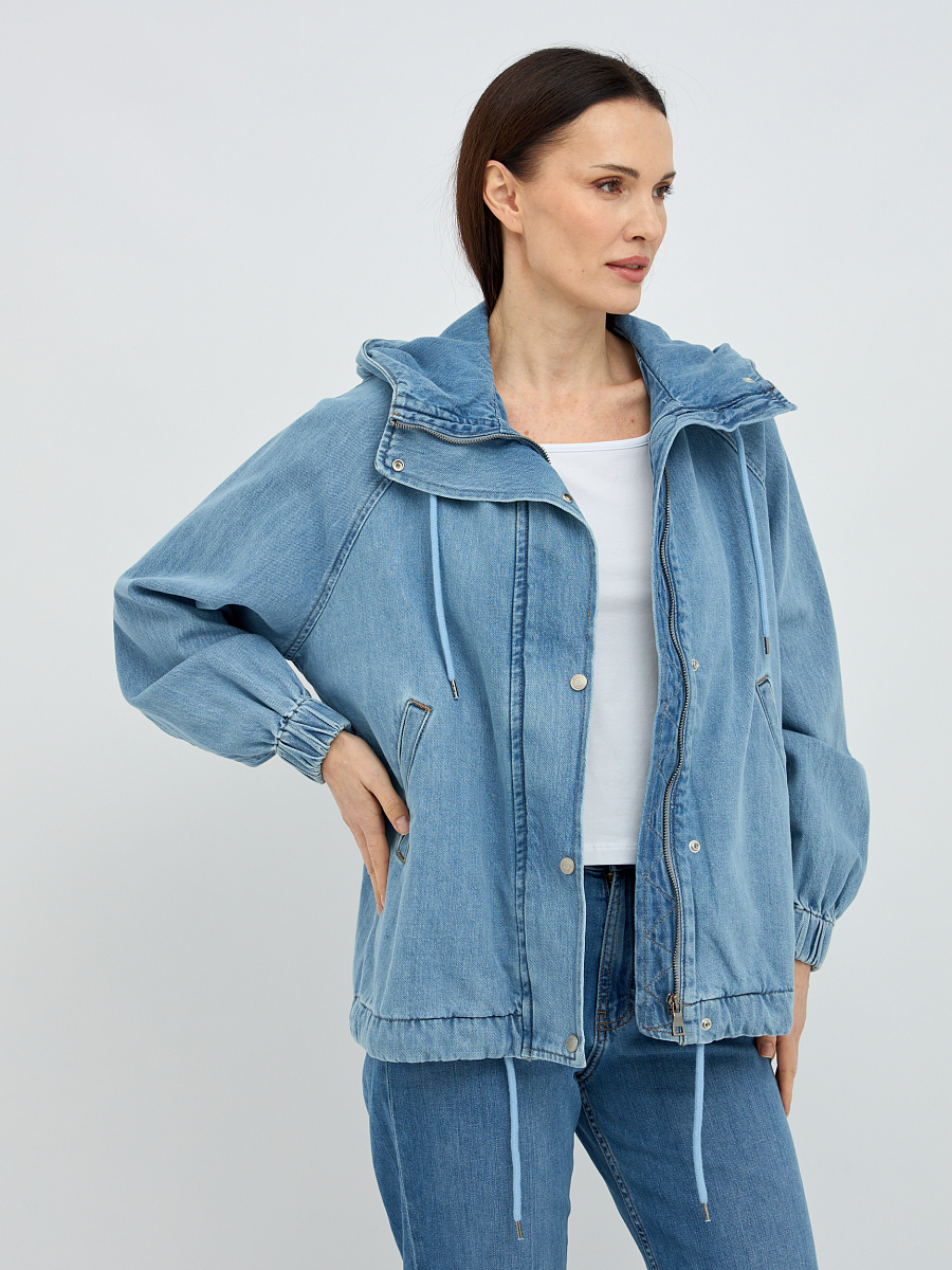 куртка женская джинсовая в голубом цвете свободного силуэта с капюшоном