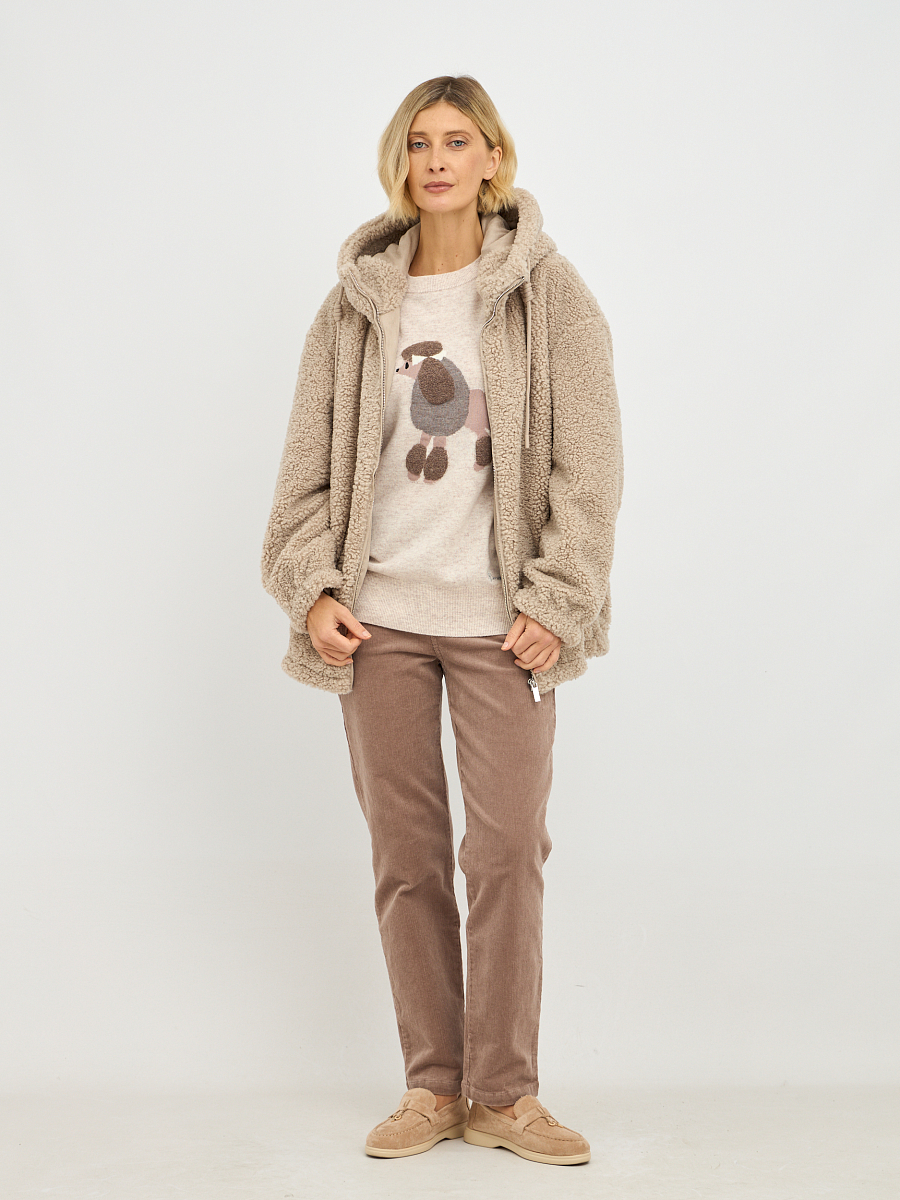 Бежевый цвет — это универсальный цвет, который легко сочетается с различными элементами гардероба. Капюшон добавляет куртке Тэдди дополнительную защиту от ветра и холода, а также стильный акцент.