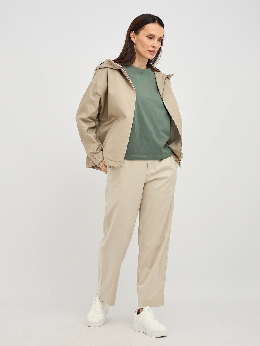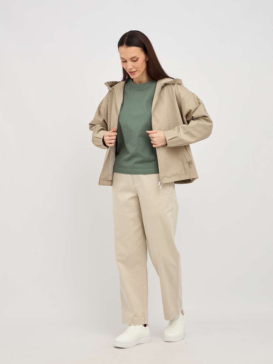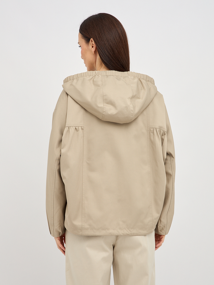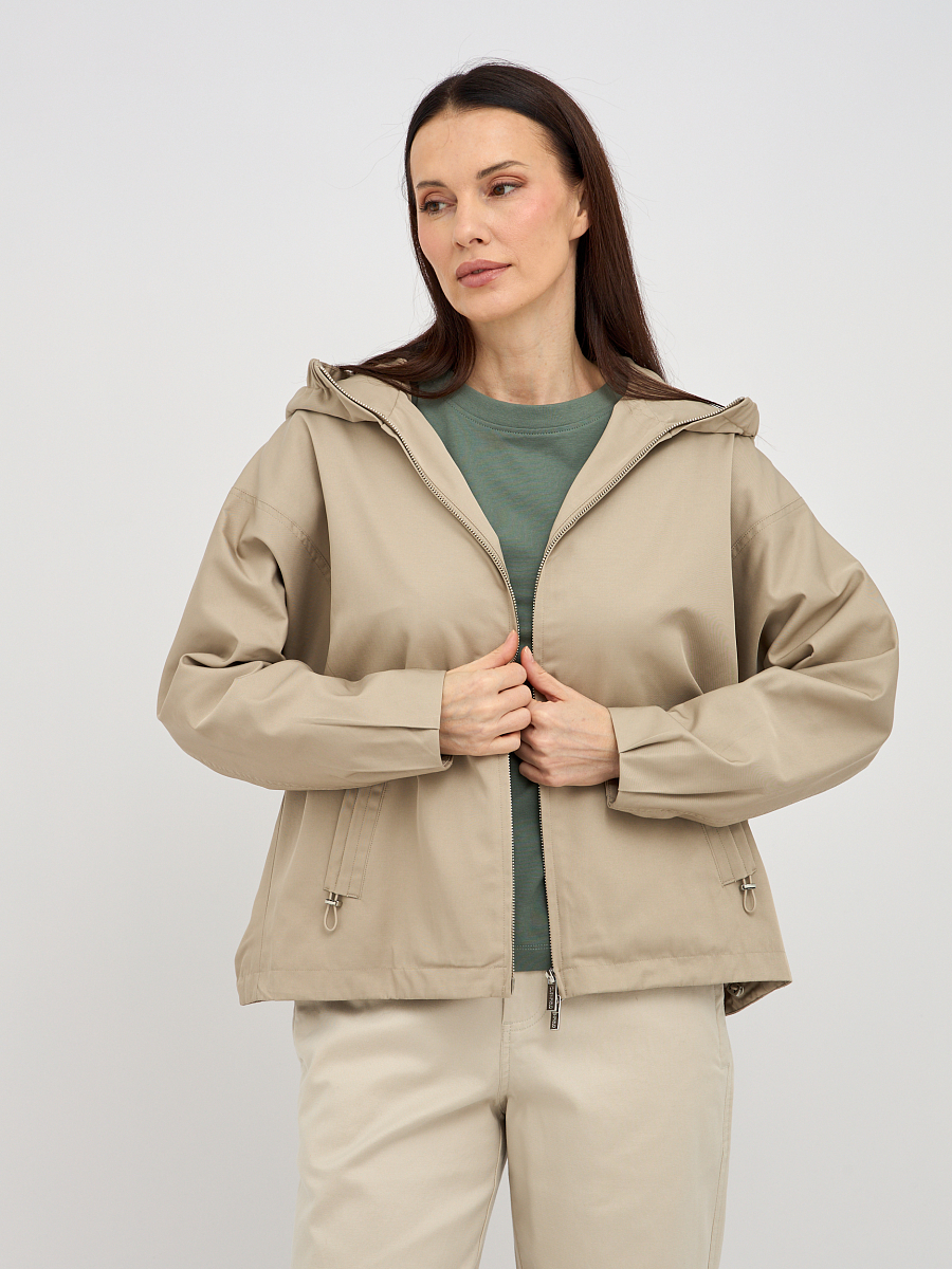 Свободный крой обеспечивает свободу движений, делая куртку идеальной для активного образа жизни и повседневной носки. Глубокий и функциональный капюшон надежно защитит вас от ветра и внезапного дождя, добавляя практичности и стиля. Зауженные рукава с защипами не только предотвращают попадание холодного воздуха, но и создают актуальный силуэт. Благодаря продуманному дизайну, куртка прекрасно сидит на фигуре любого типа, подчеркивая достоинства и скрывая возможные недостатки. Застежка-молния по центру обеспечивает удобство при надевании и снятии, а также позволяет регулировать степень прилегания.