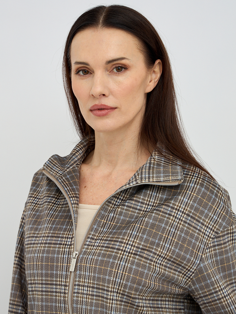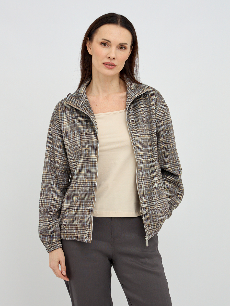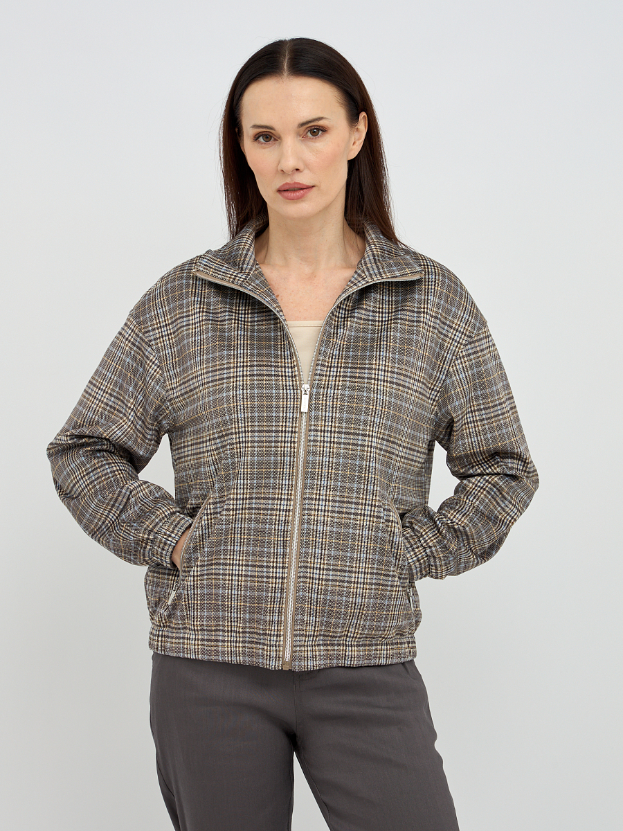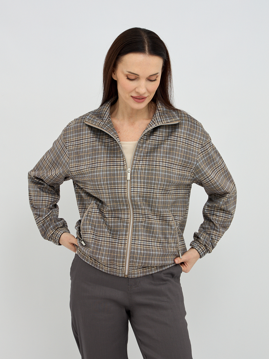 Эта женская куртка в благородном бежевом цвете с элегантным клетчатым принтом станет вашим стильным спутником. Дизайн в клетку добавляет образу классическую изысканность, которая никогда не выходит из моды, делая куртку универсальной для различных комбинаций.