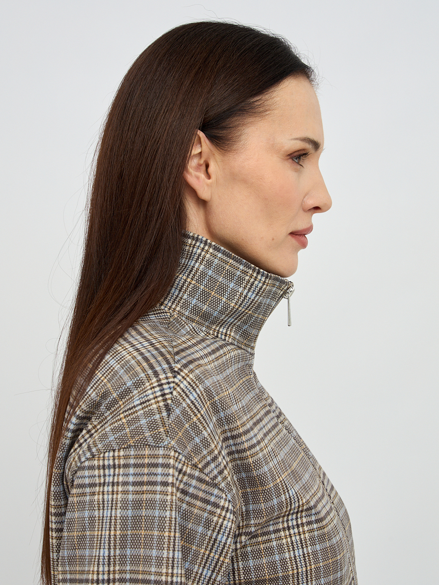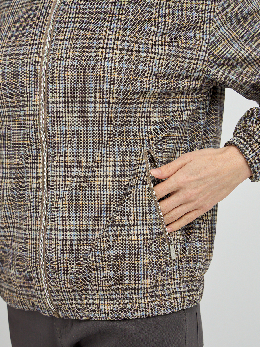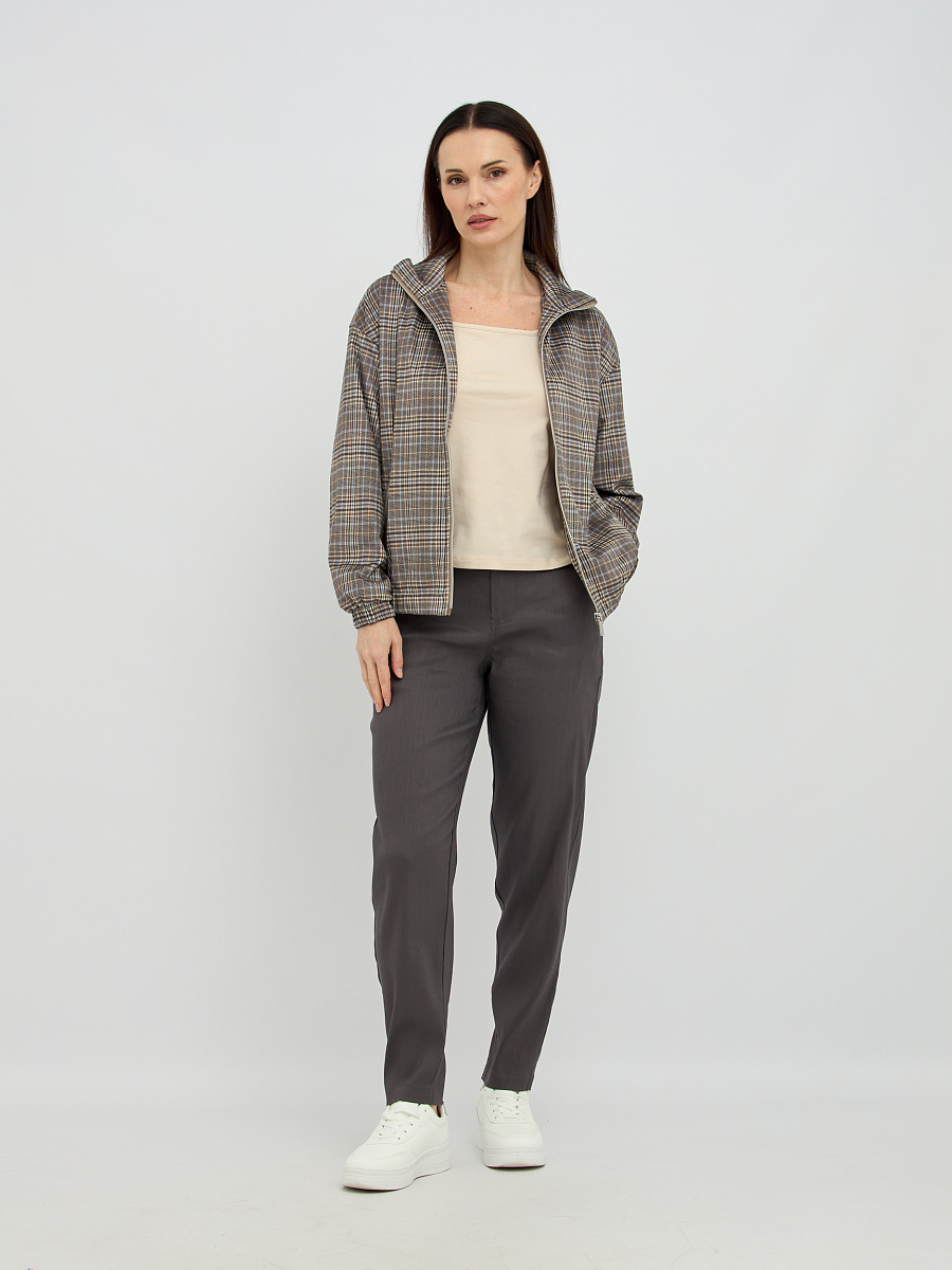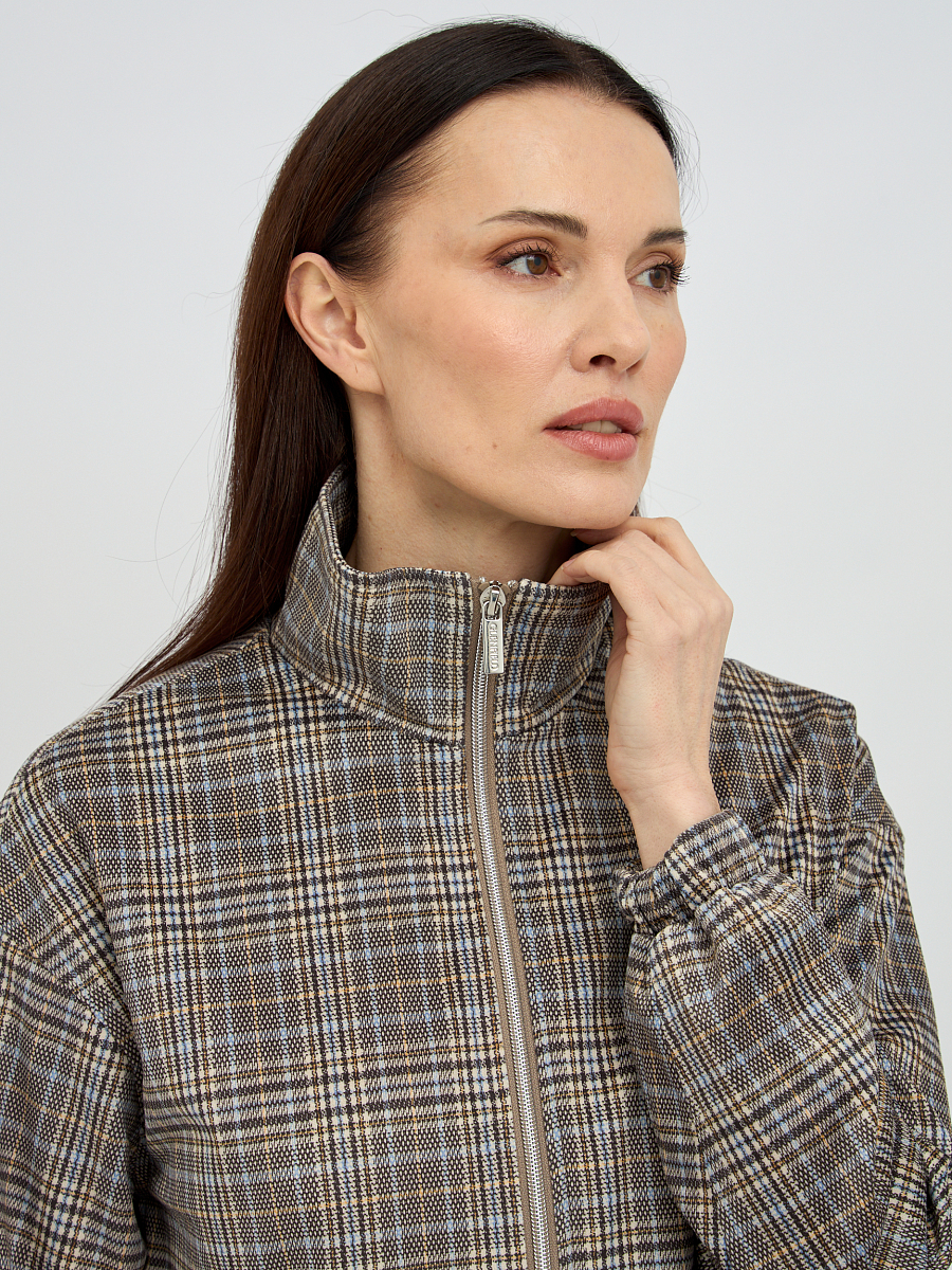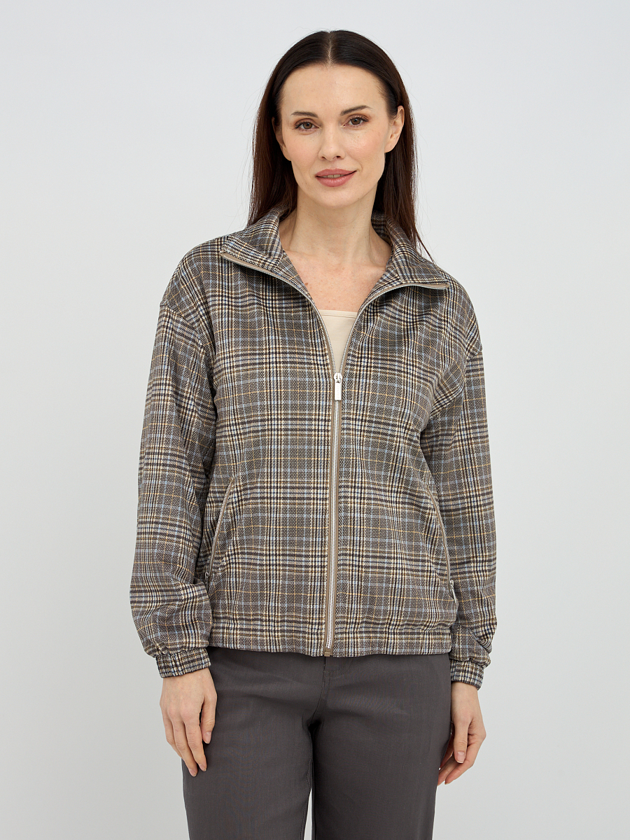 Эта женская куртка в благородном бежевом цвете с элегантным клетчатым принтом станет вашим стильным спутником. Дизайн в клетку добавляет образу классическую изысканность, которая никогда не выходит из моды, делая куртку универсальной для различных комбинаций.