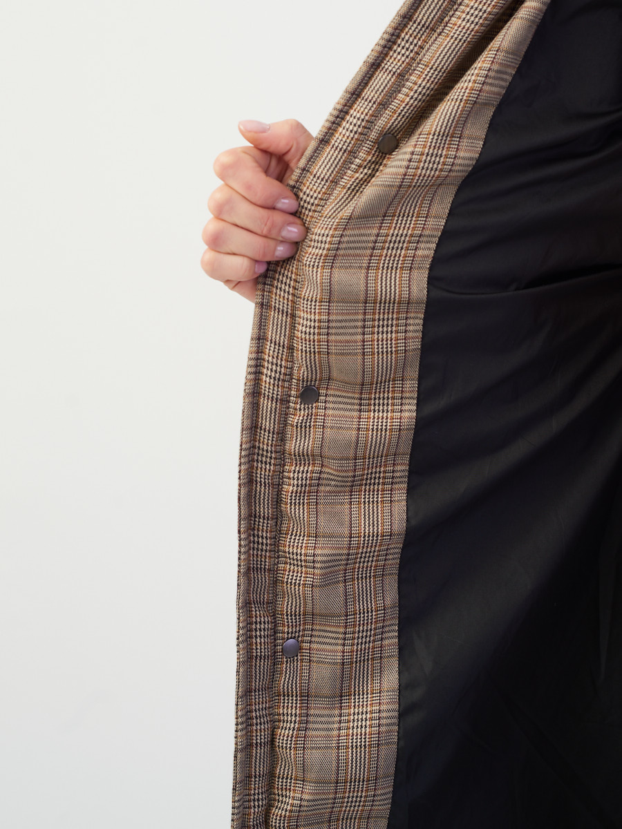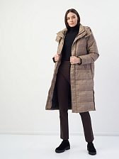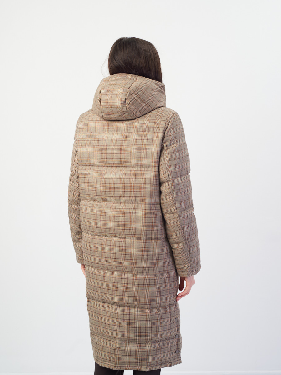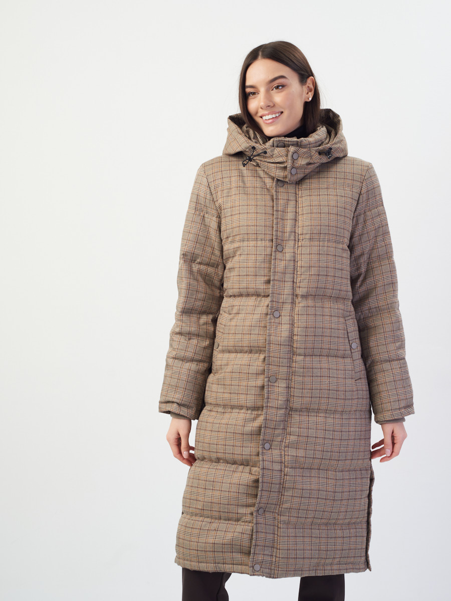 Благодаря клетчатому принту пуховика образ уже может получиться нескучным. Если не хочется больше добавлять принтов, надевайте монохромный чёрный костюм из брюк и джемпера.