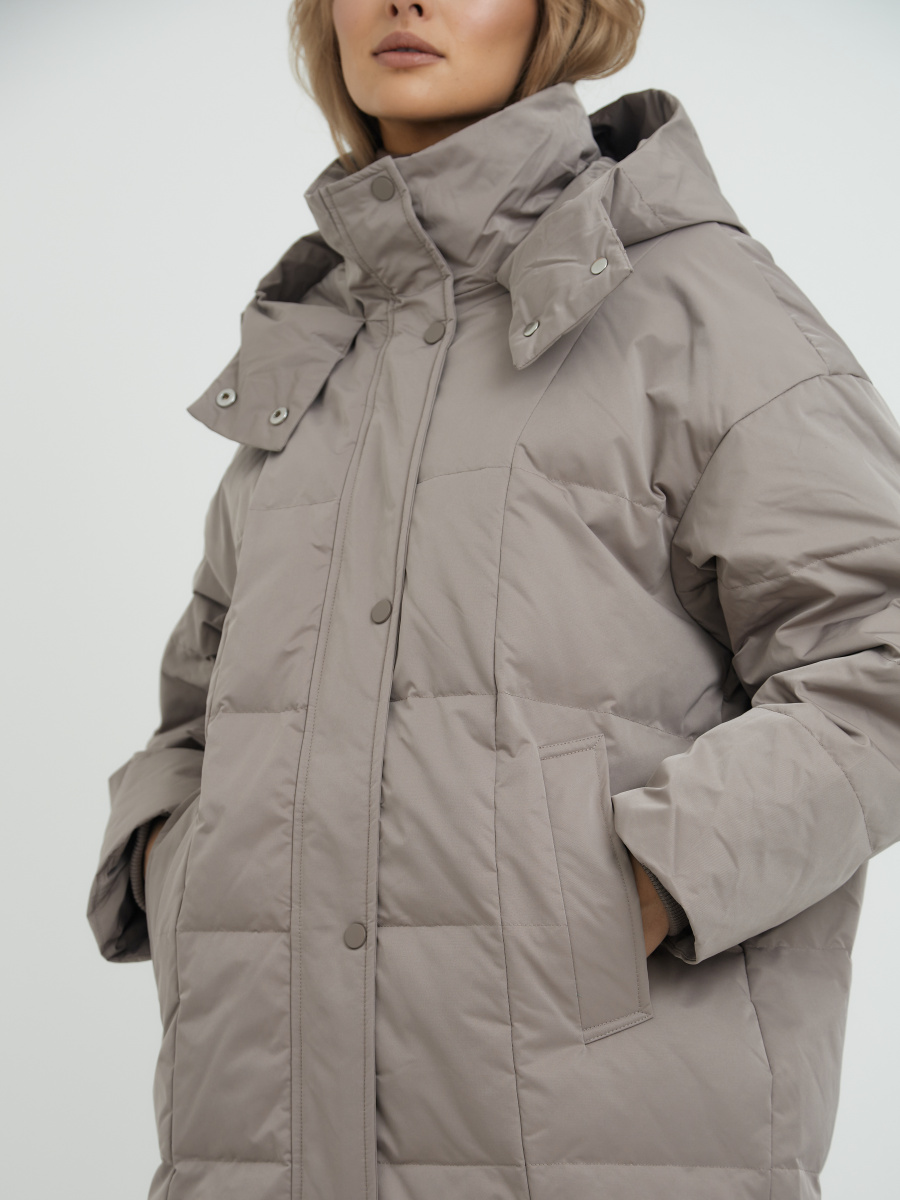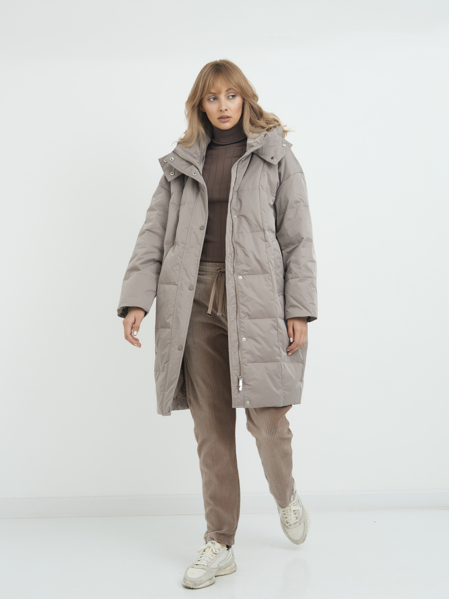 В таком пуховике отлично ходить в демисезон: от перехода зимы к весне либо от осени к зиме. Сочетайте его с одеждой в таких же спокойных пастельных оттенках: коричневой, бежевой, кремовой. Идеально будет создать монохромный образ – например, коричневые брюки и водолазку, а сверху (на контрасте!) накинуть пуховик другого цвета.