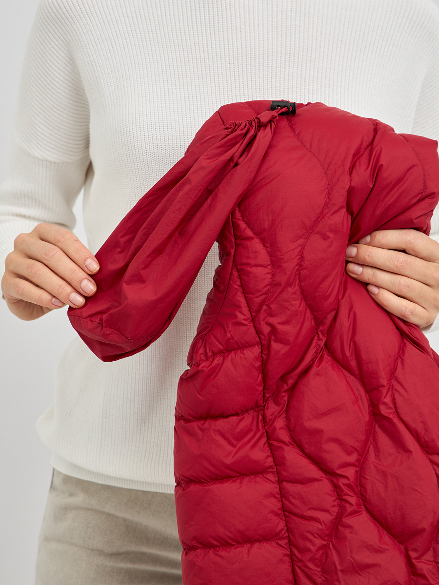 Особенность этого пуховика — наполнитель из пуха и пера, который обладает рядом преимуществ: он отлично удерживает тепло, обладает высокой воздухопроницаемостью и легкостью, что делает изделие невероятно комфортным для носки. Пух и перо создают эффект «теплого облака», позволяя коже дышать и предотвращая перегрев. Стеганая конструкция равномерно распределяет наполнитель, исключая холодные зоны и обеспечивая равномерное тепло.