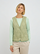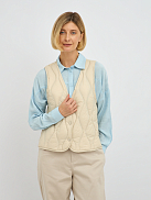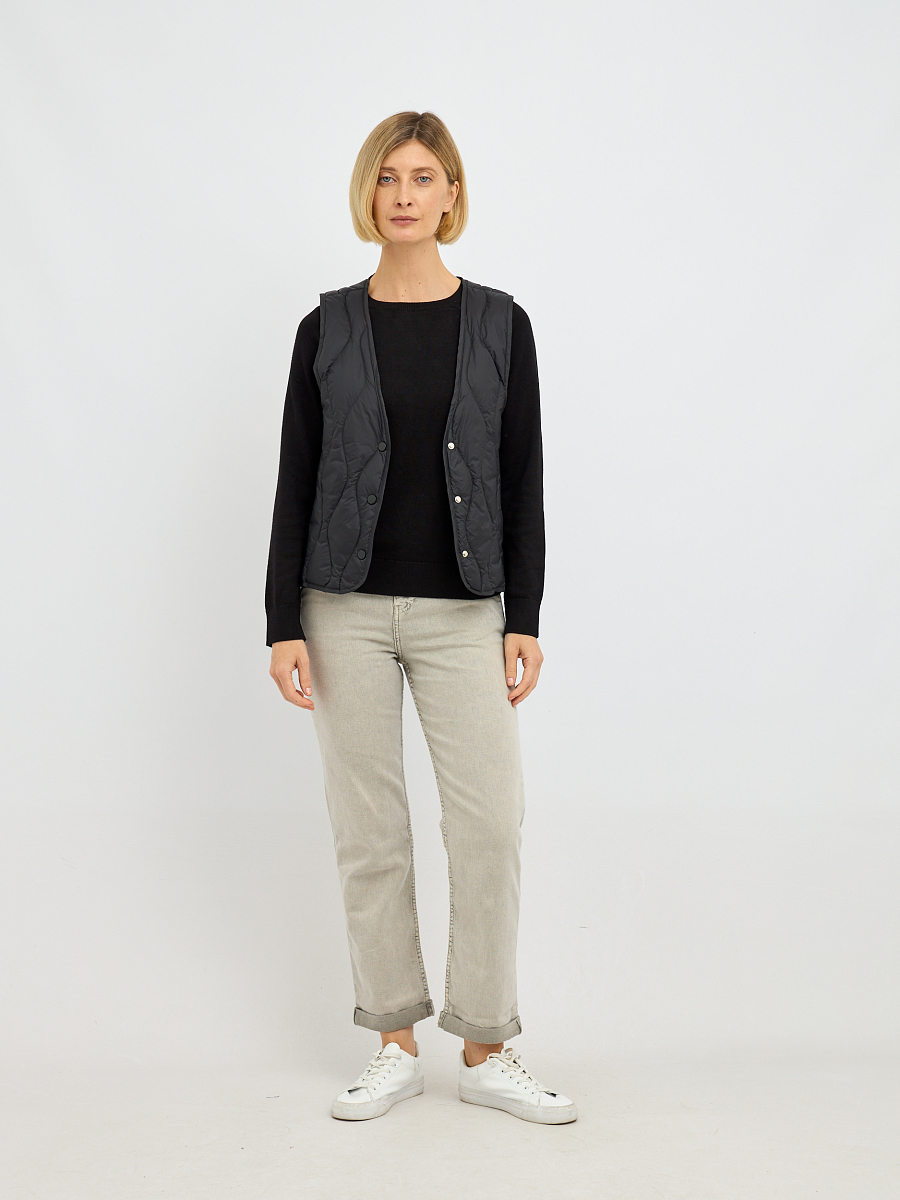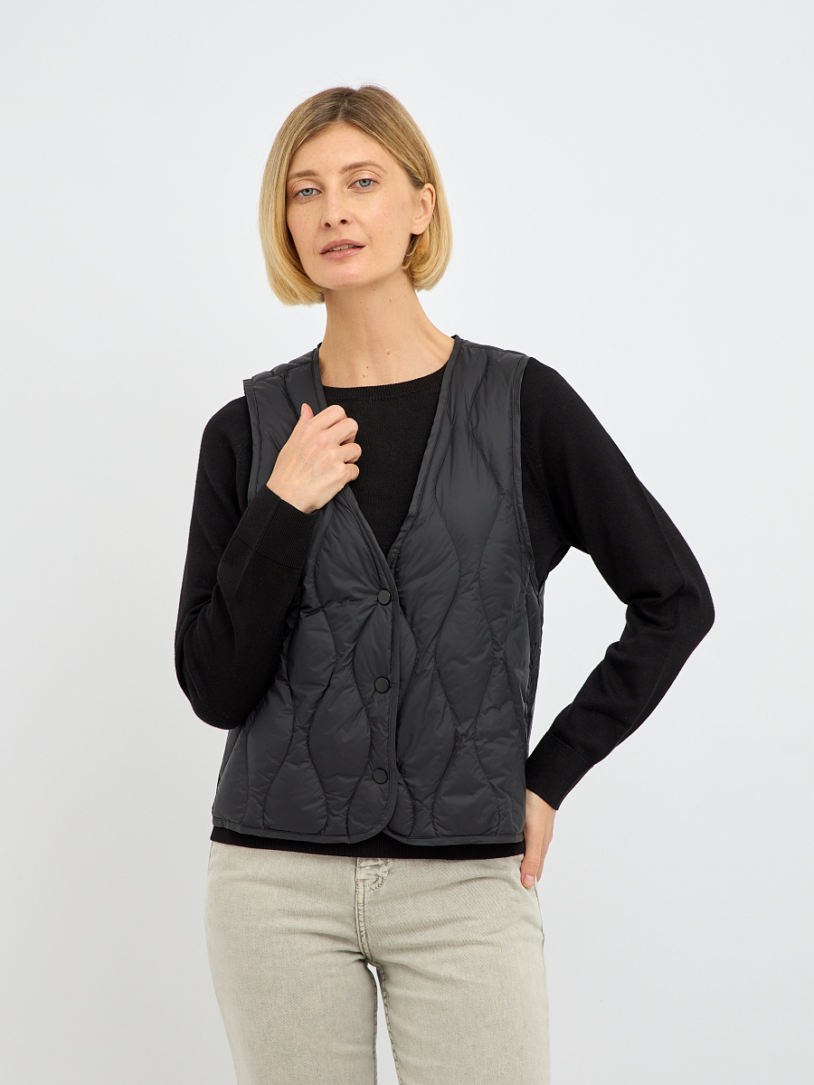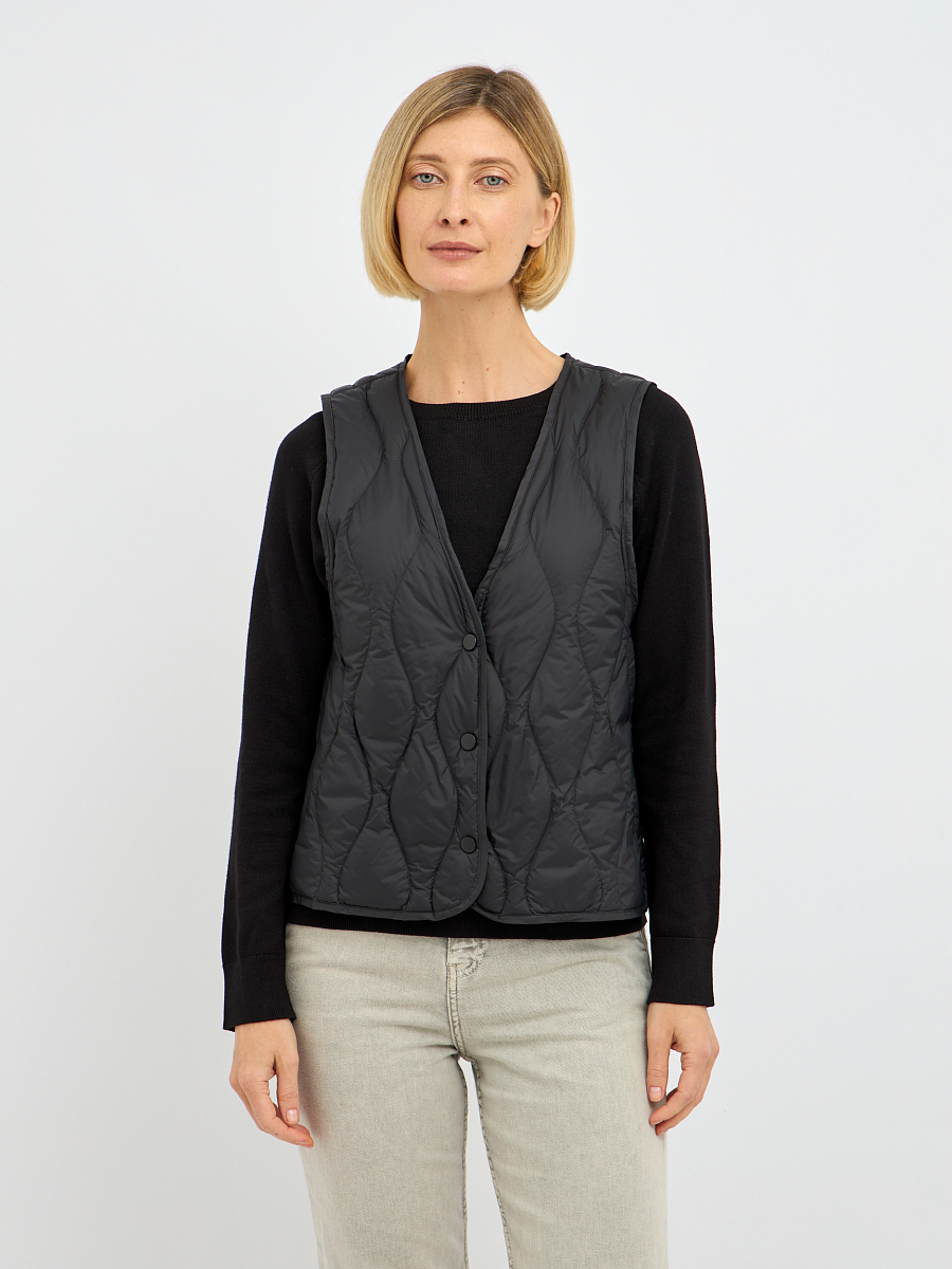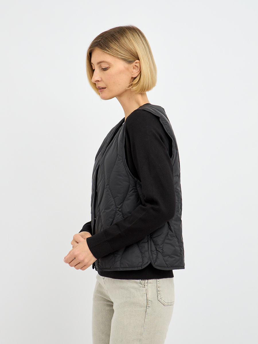 Особое преимущество этого жилета — наполнитель из пуха и пера. Такой наполнитель обладает уникальными свойствами: он превосходно удерживает тепло, создавая ощущение легкости и уюта, при этом обладает высокой воздухопроницаемостью, что предотвращает перегрев и обеспечивает комфорт даже при активных движениях. Стеганая конструкция равномерно распределяет наполнитель, исключая холодные зоны и гарантируя равномерное тепло по всему изделию.
