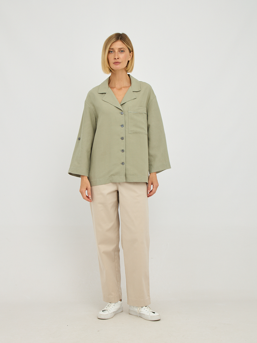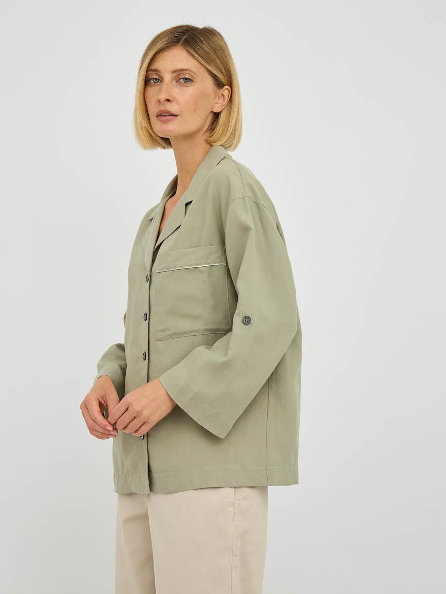 Жакет оснащен накладным карманом, который не только добавляет функциональности, но и подчеркивает современный стиль. Уникальная особенность этого жакета — возможность носки рукавов в двух вариантах: вы можете оставить их длинными для классического образа или подвернуть и зафиксировать на пуговицу для более расслабленного и непринужденного стиля.
