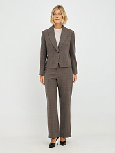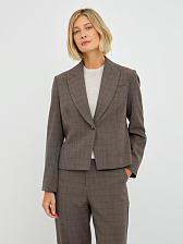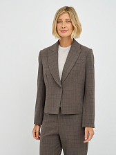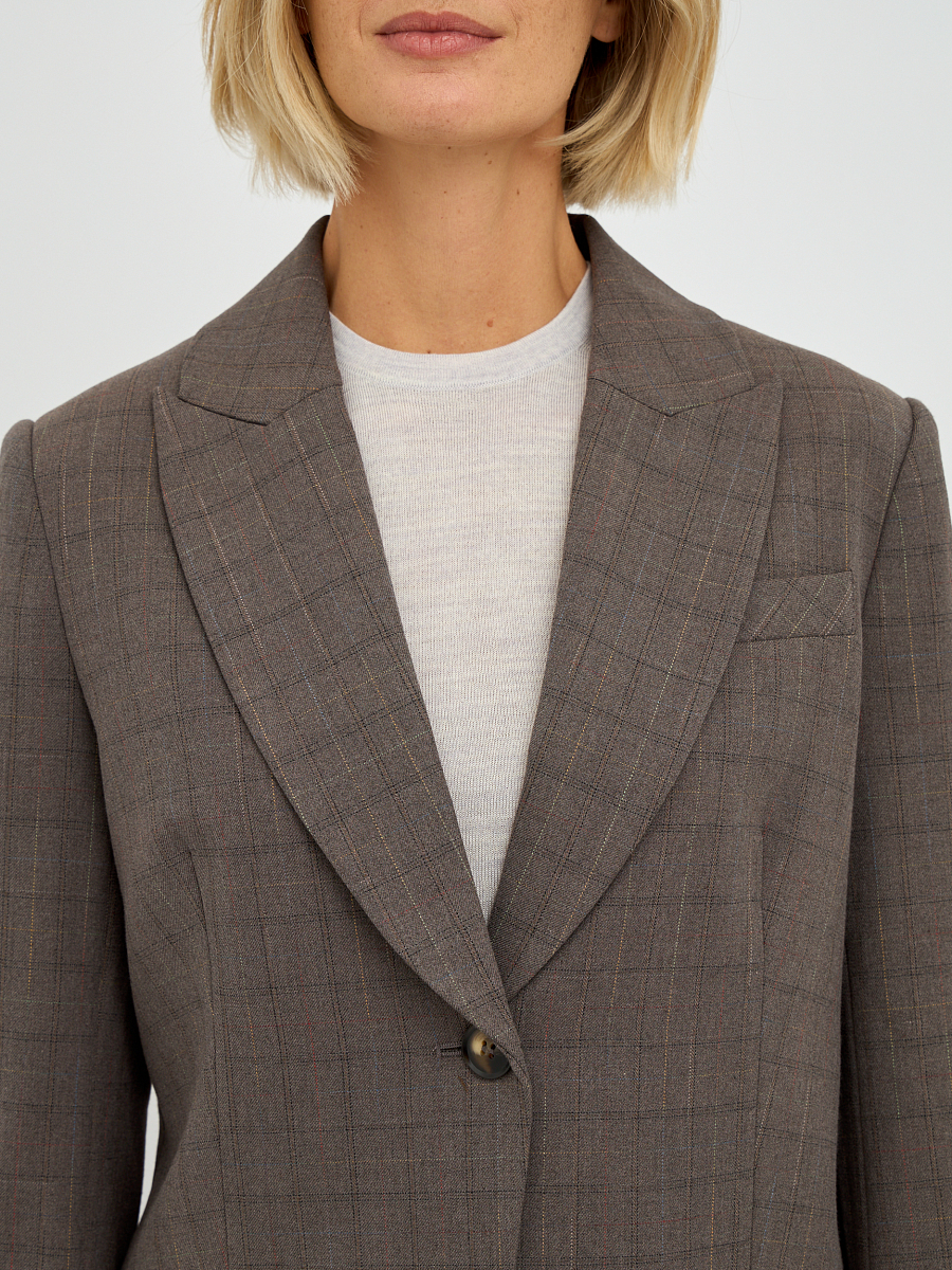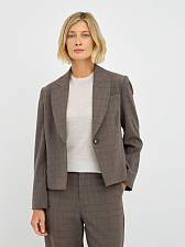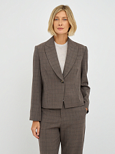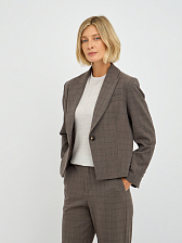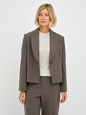 Однобортный силуэт жакета подчеркивает женственность и обеспечивает комфортную посадку. Клетчатый принт придает жакету утонченный и стильный вид, делая его уместным как в офисной обстановке, так и на неформальных мероприятиях. Лаконичный дизайн с минимальным количеством деталей позволяет акцентировать внимание на фактуре ткани и цвете. Отложной воротник добавляет жакету строгости и элегантности.