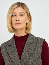 Жилет имеет принт в мелкую клетку. Это классический принт, который никогда не выходит из моды. Он добавляет изысканности и утонченности вашему образу, а удлиненный силуэт визуально стройнит фигуру и подчеркивает достоинства.