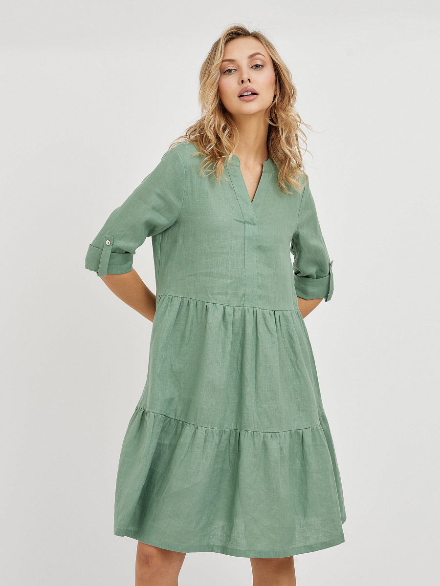 Легкое льняное платье станет незаменимой вещью весной и летом. Лен позволяет коже дышать и смотрится очень стильно - сочетайте льняное платье с любимыми туфлями или босоножками и сумкой на руку черного или бежевого цвета.