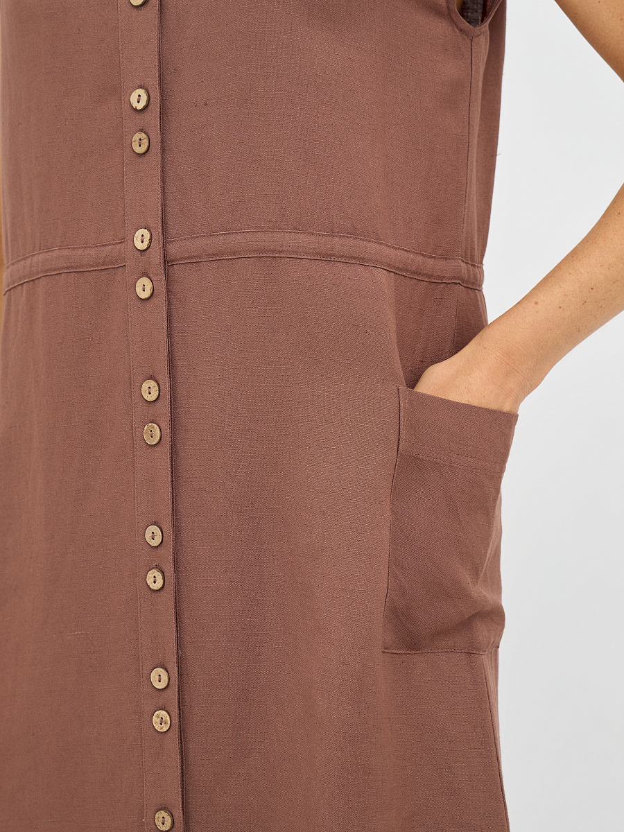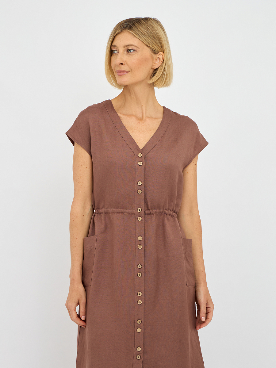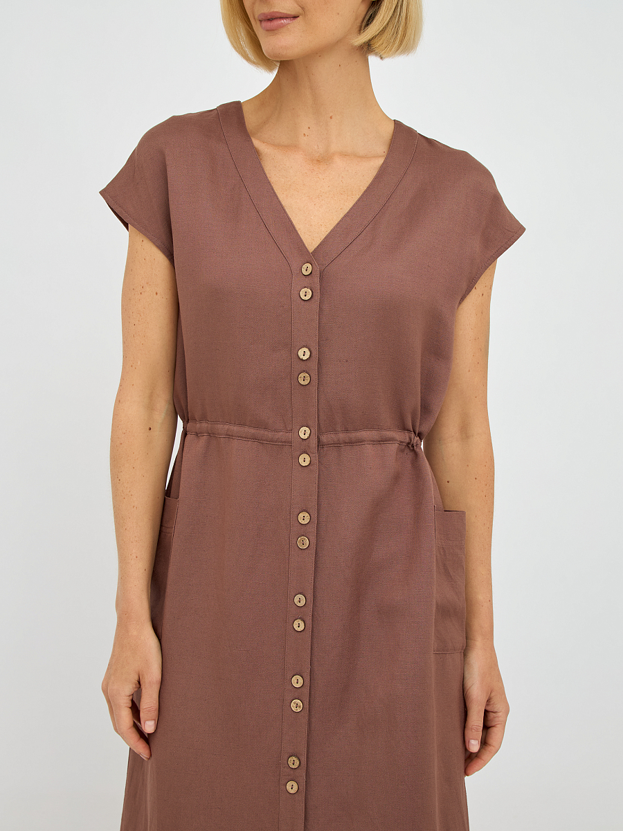 Платье выполнено из высококачественного льна и района, оно не только выглядит великолепно, но и обладает множеством преимуществ. Льняной состав обеспечивает отличную воздухопроницаемость и комфорт в жаркую погоду, а добавление района делает ткань более мягкой и приятной на ощупь. Такое сочетание материалов гарантирует, что вы будете чувствовать себя свежо и комфортно в течение всего дня.
