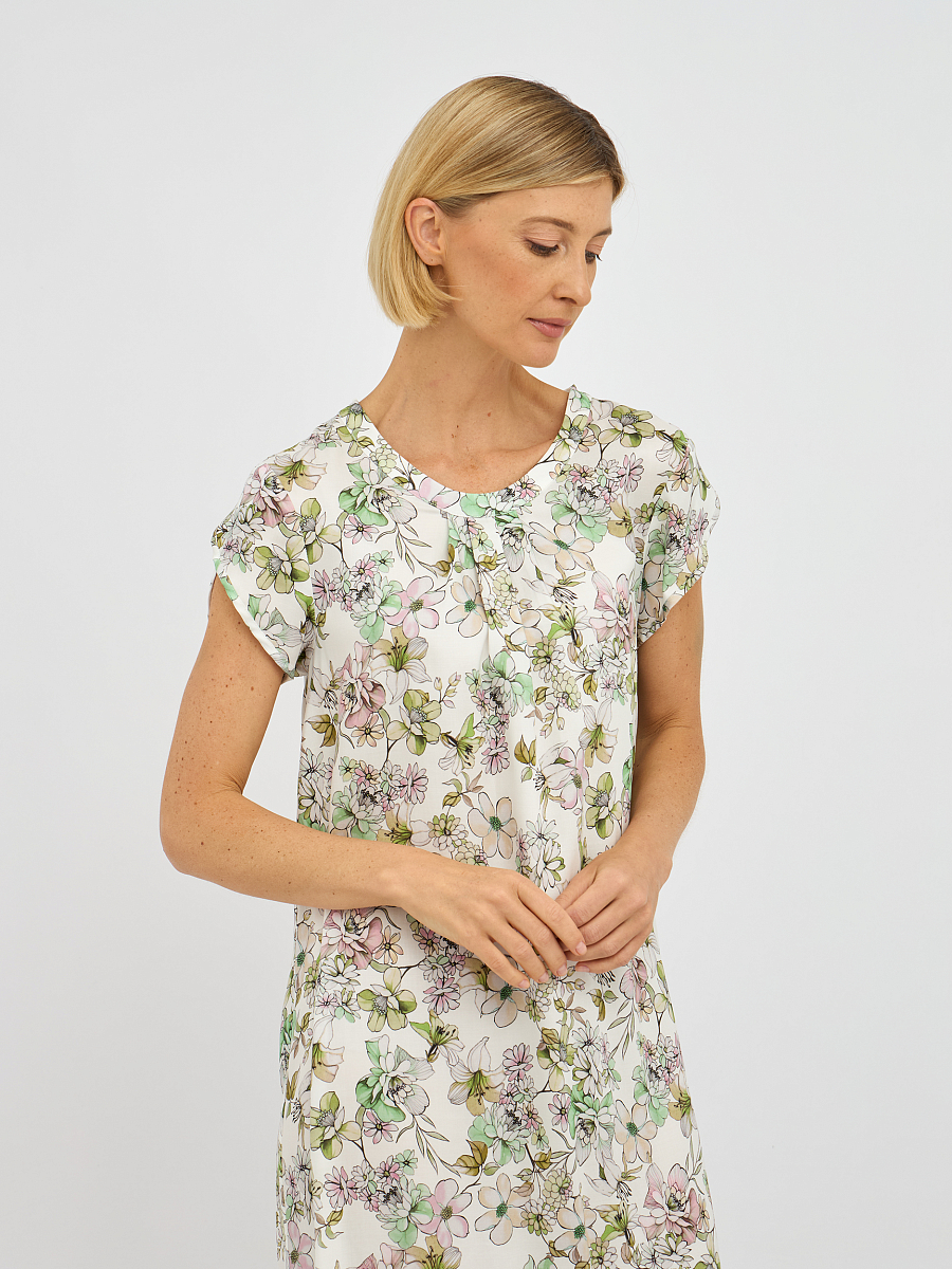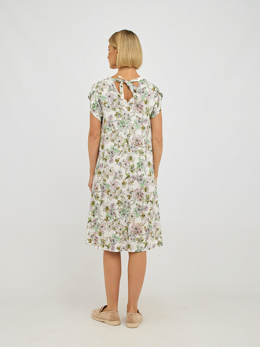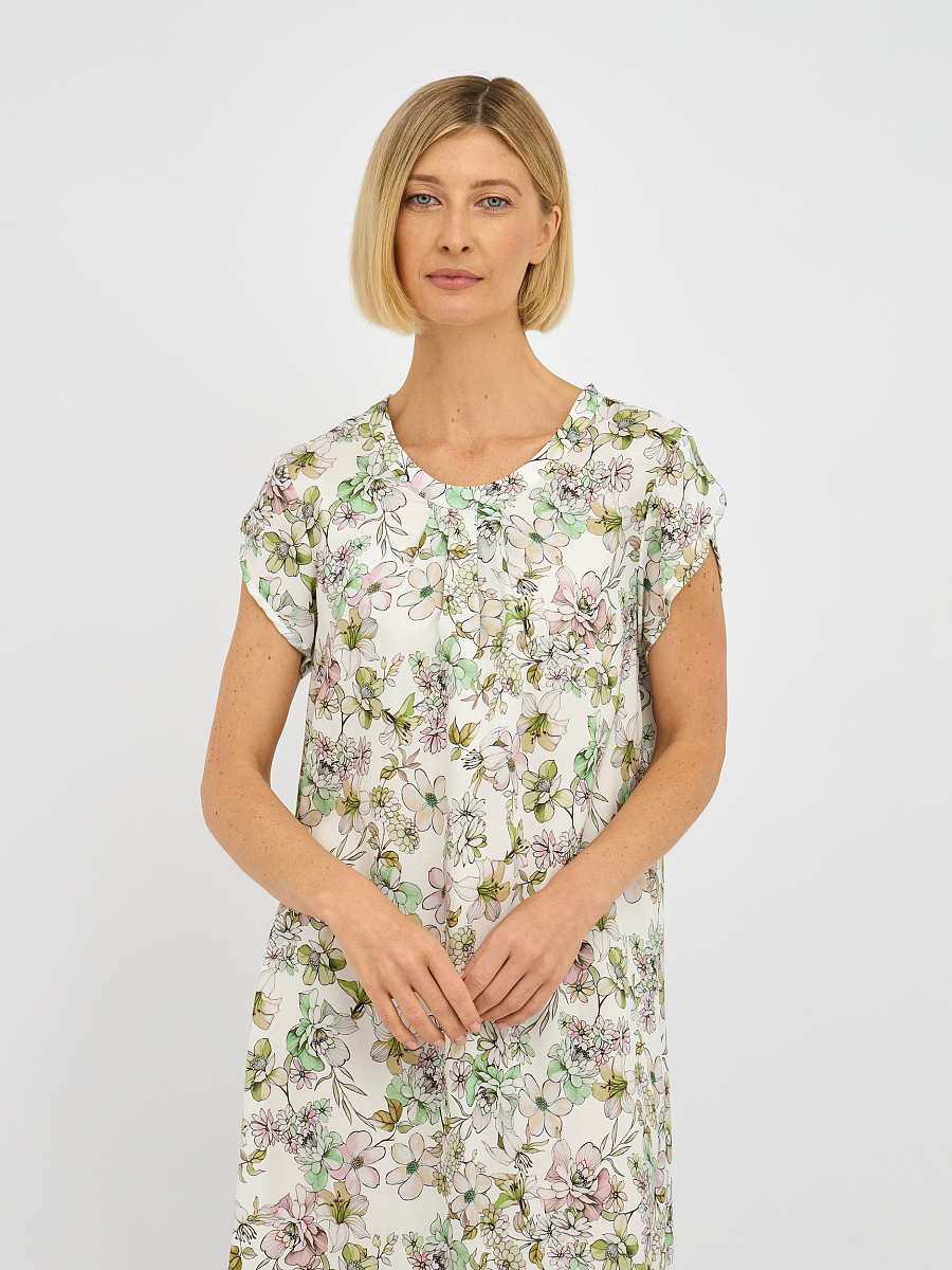 Это платье выполнено из 100% лиоцелла — материала, известного своей мягкостью и воздухопроницаемостью, что обеспечивает комфорт в течение всего дня.