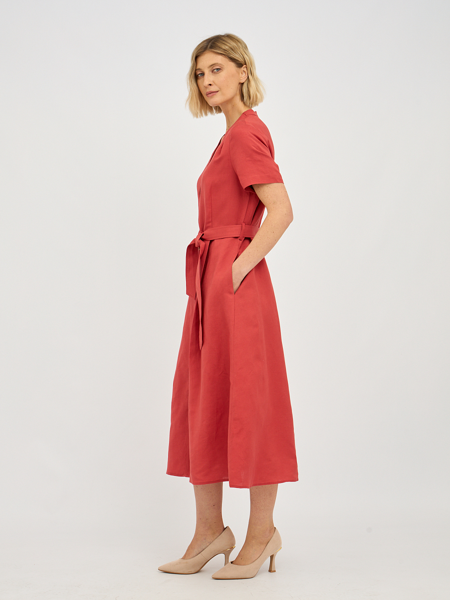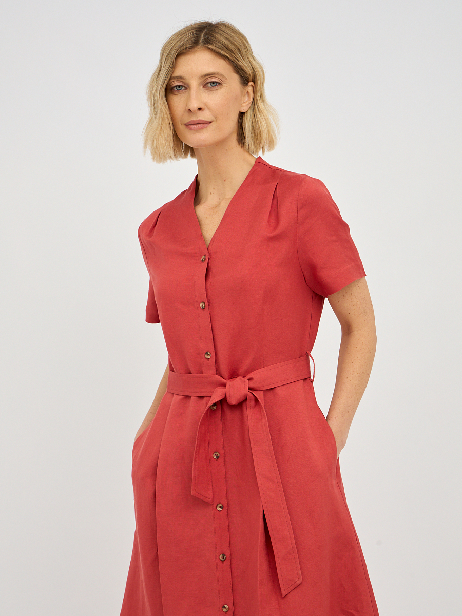 Платье представлено в двух оттенках: ярком и жизнерадостном коралловом, который добавит образу дерзости и летнего настроения, и утонченном, природном фанго, олицетворяющем спокойствие и естественность. Благодаря такому выбору цветов, вы легко сможете подобрать платье, соответствующее вашему настроению и стилю.